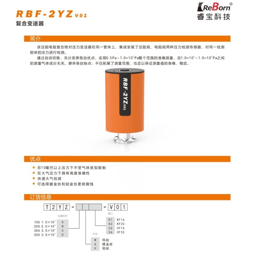 Чэнду Ruibao версия RBF-2YZ композитный преобразователь пьезосопротивление резистивный прецизионный вакуумный метр KF16 подлинный