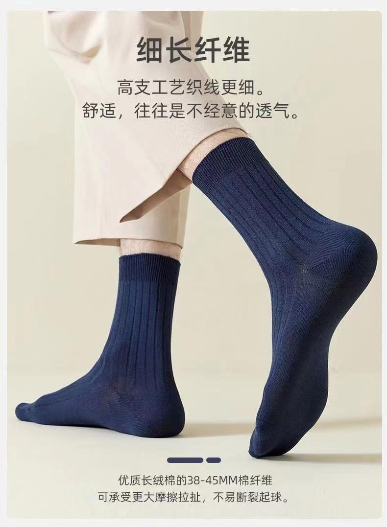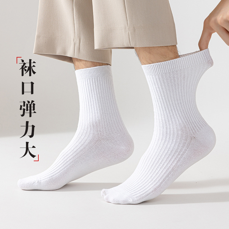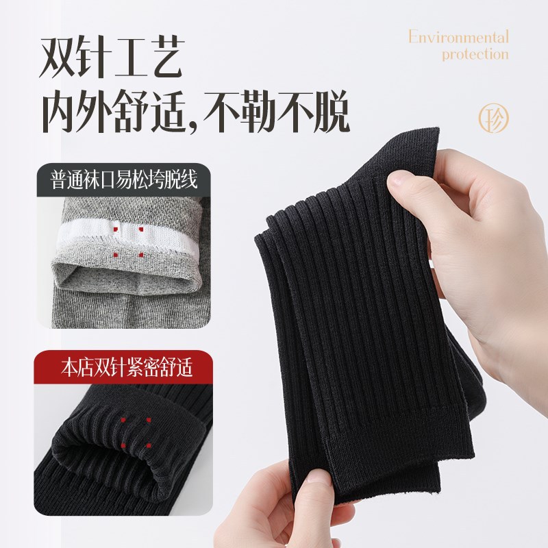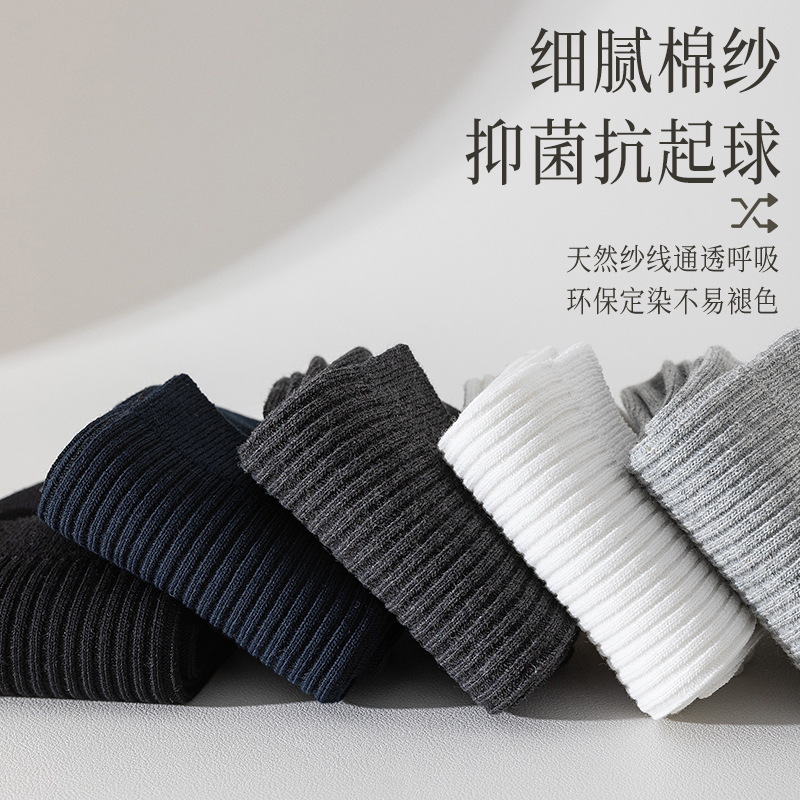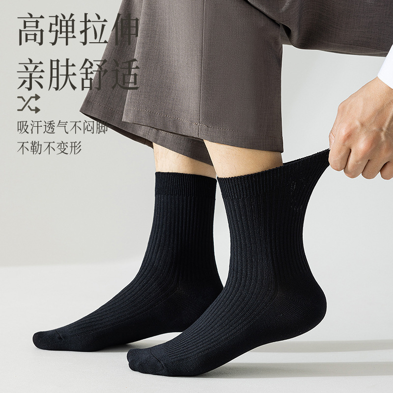 Носки Мужские носки средней длины из чистого хлопка, дышащие черные впитывающие пот деловые двухигольные антибактериальные Повседневные носки из чистого хлопка