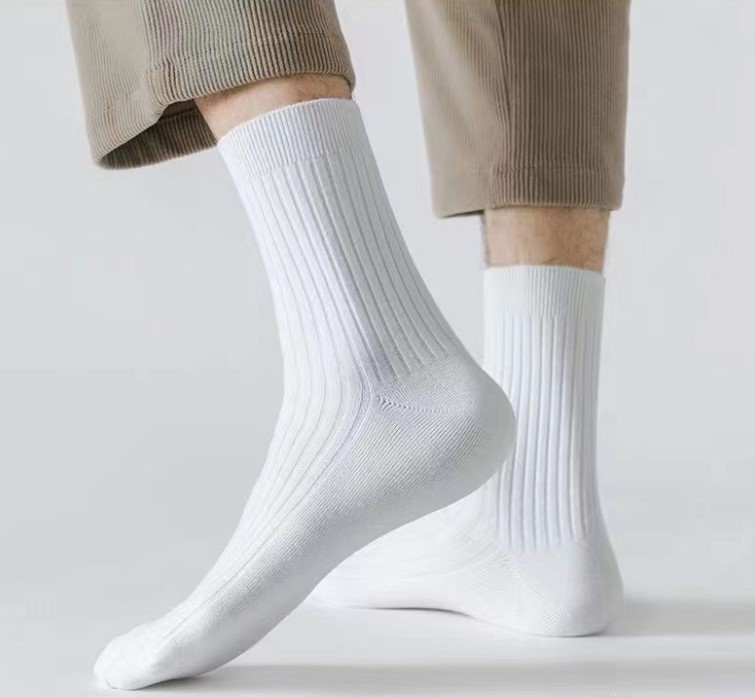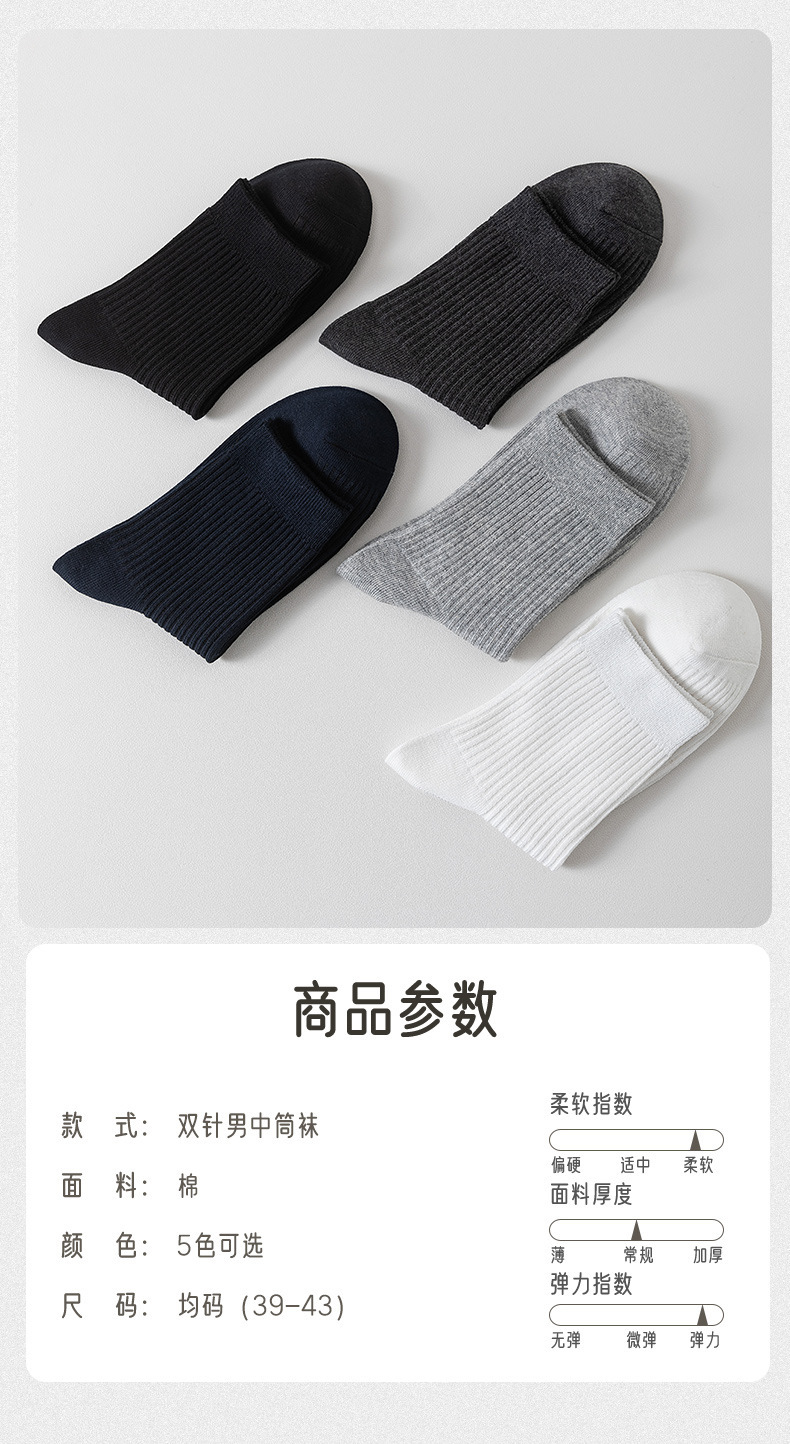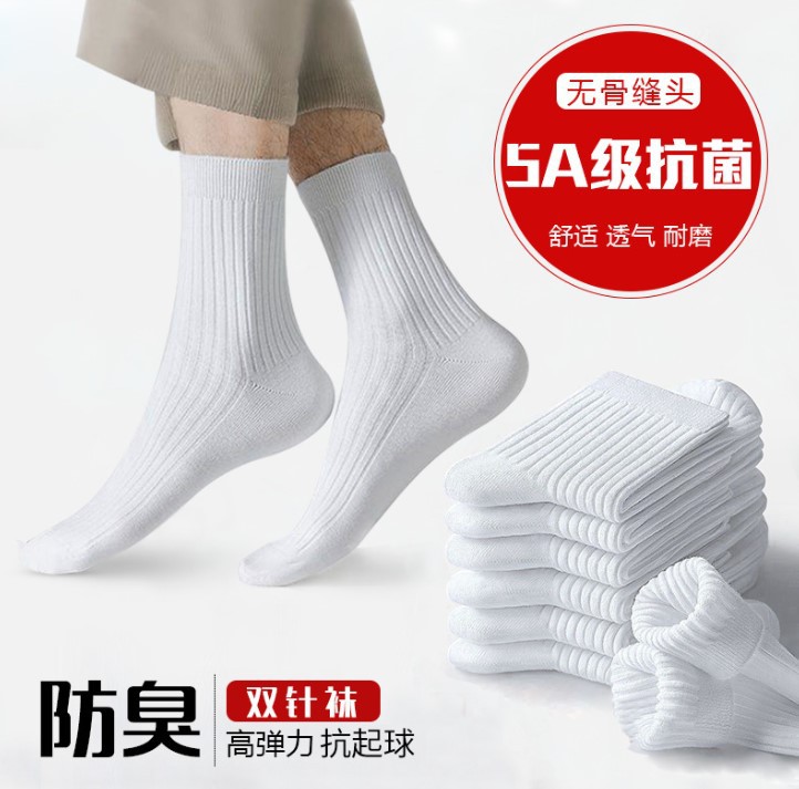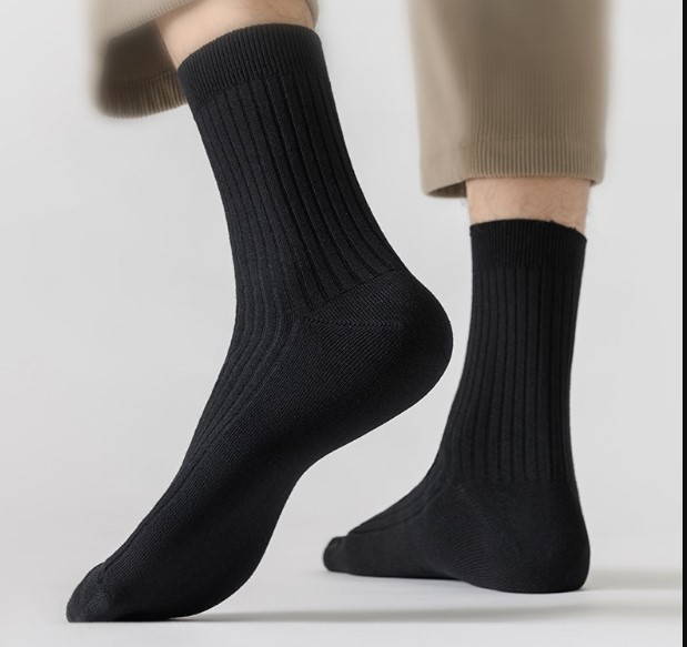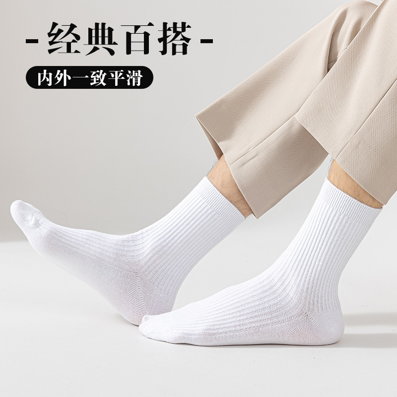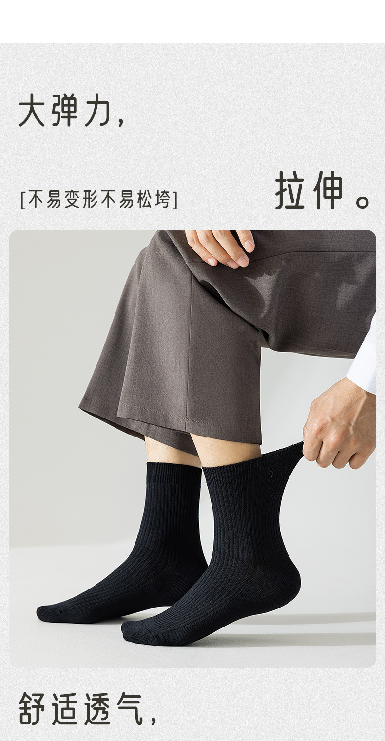 Носки Мужские носки средней длины из чистого хлопка, дышащие черные впитывающие пот деловые двухигольные антибактериальные Повседневные носки из чистого хлопка