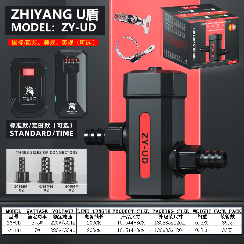 Zhiyang UShield-ZY-UD-3.5W-Обычный; Zhiyang UShield-ZY-UD-3.5W-Таймер; Zhiyang UShield-ZY-UD-7W-Обычный; Zhiyang UShield-ZY-UD-7W-Таймер; UD может непосредственно использовать непропускаемый свет в цилиндре-визуализация; UD может быть соединен напрямую-отображение эффекта насоса; UD может быть непосредственно последовательно-дисплей эффекта-фильтр вне цилиндра; UD может быть соединен последовательно-дисплей эффекта-наружный нагреватель цилиндра