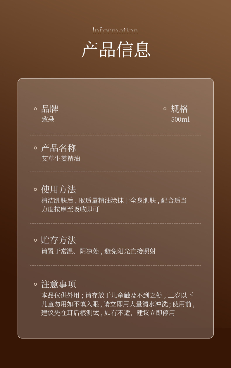 Массажное масло Zhiduo с полынью и имбирем, 500 мл