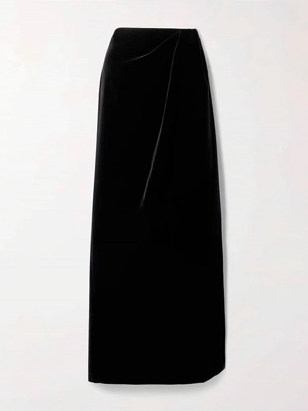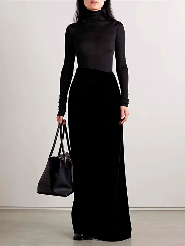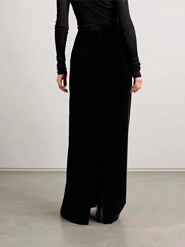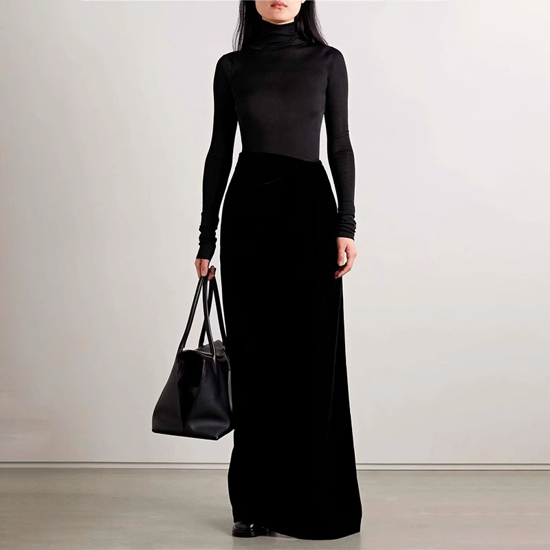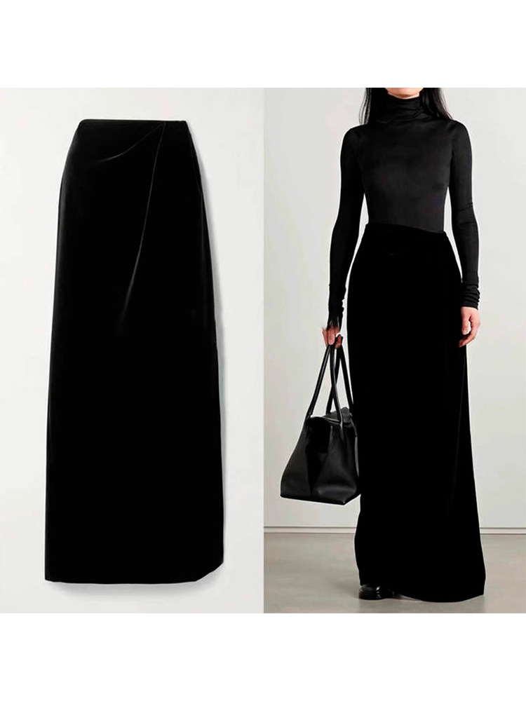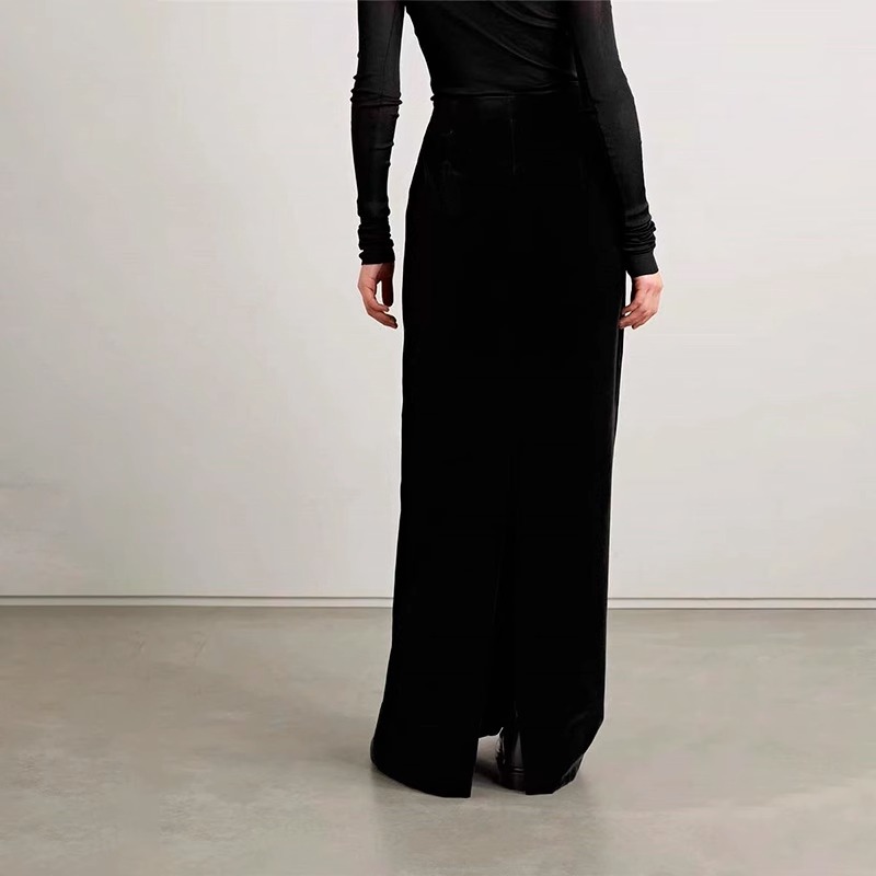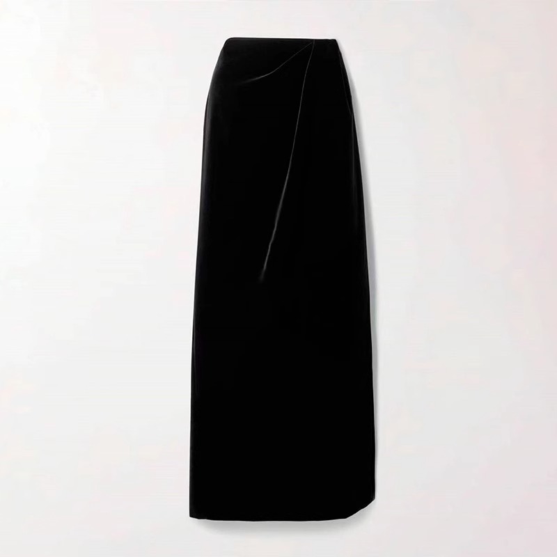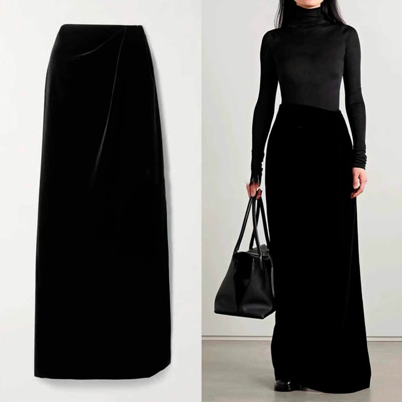 th ~ ряд, весна-осень 2023, новая бархатная юбка макси с высокой талией, черная тонкая нишевая дизайнерская юбка