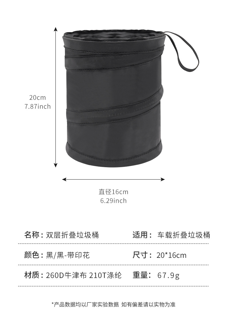 В наличии Двойная ткань Оксфорд Автомобильное мусорное ведро Amazon Портативный складной круглый маленький мусорное ведро