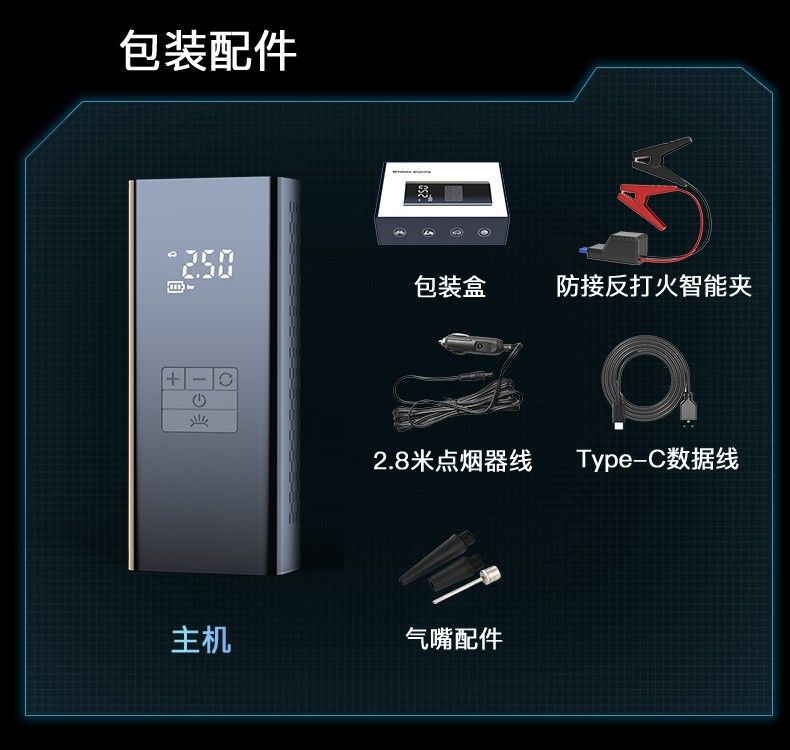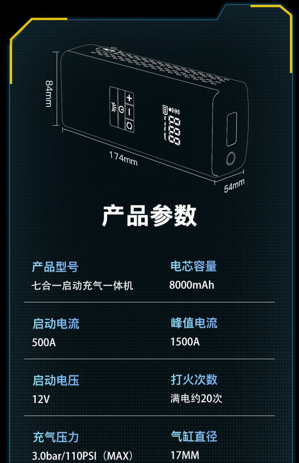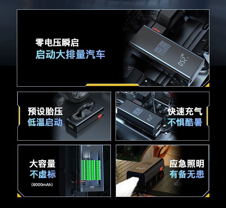 [Эксклюзивное предложение] Портативное пусковое устройство для автомобиля с функцией подкачки шин и резервного питания, большой емкости