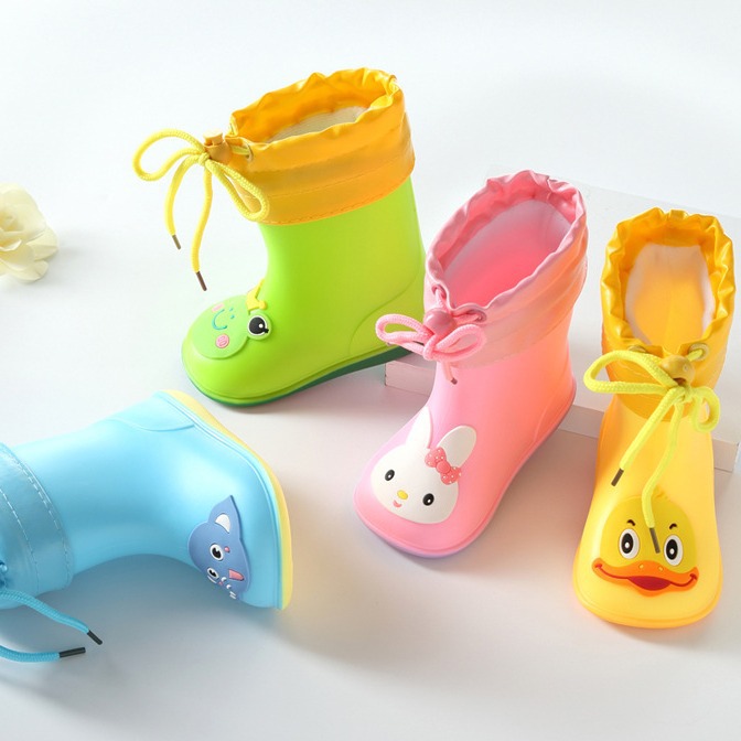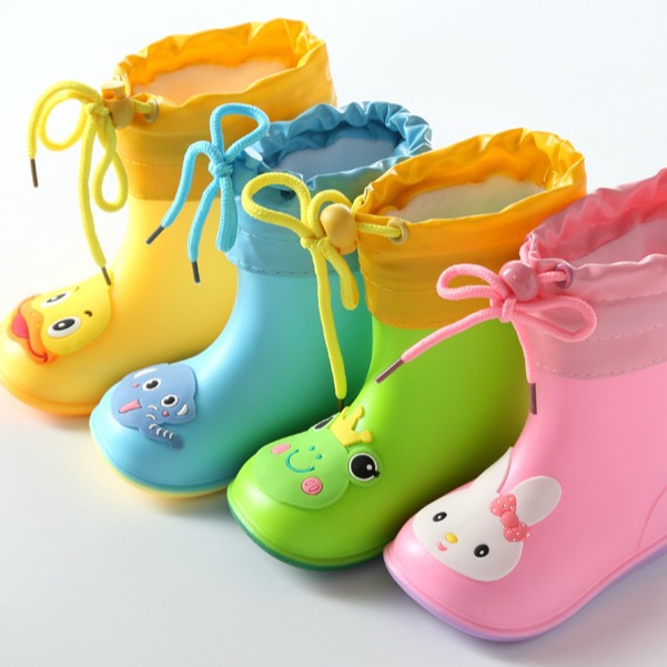 Осенне-зимние детские непромокаемые сапоги на флисовой подкладке для мальчиков, Нескользящие резиновые сапоги с мягким дном, легкая непромокаемая обувь для девочек в детском саду