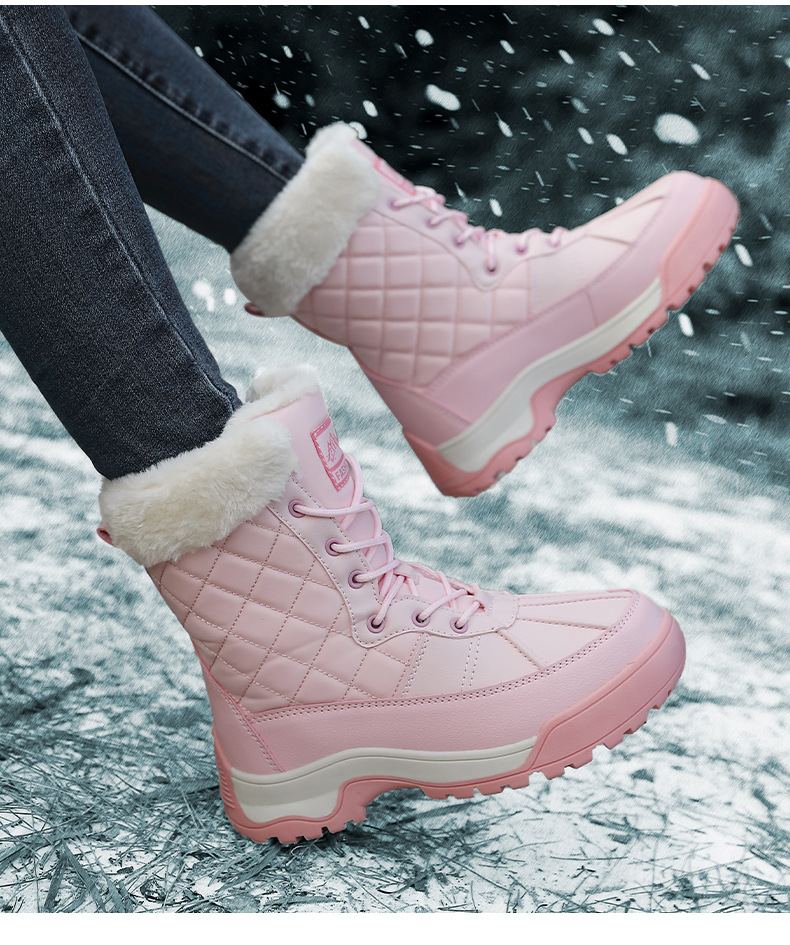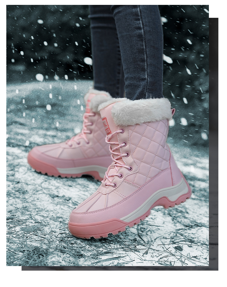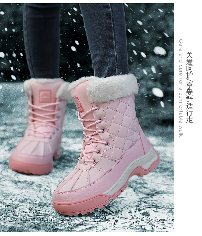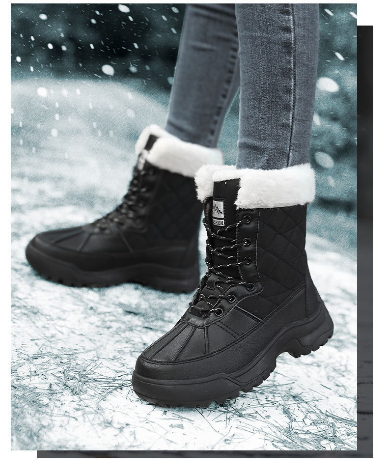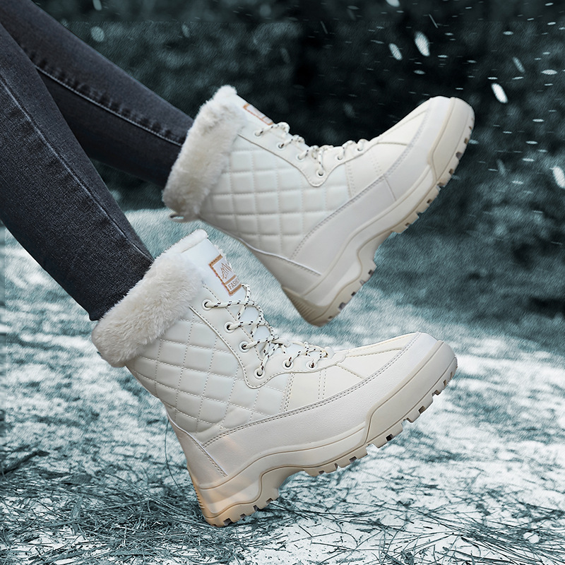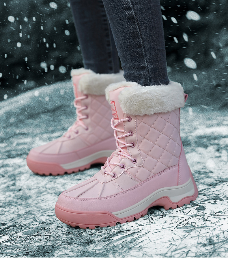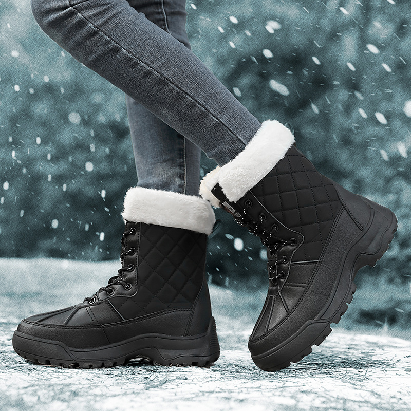 Женские зимние сапоги, плюшевая теплая хлопчатобумажная обувь, износостойкие удобные спортивные уличные высокие женские ботинки на шнуровке, большие размеры