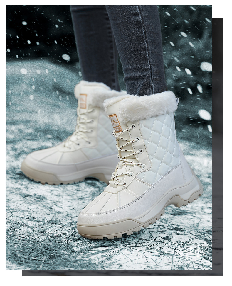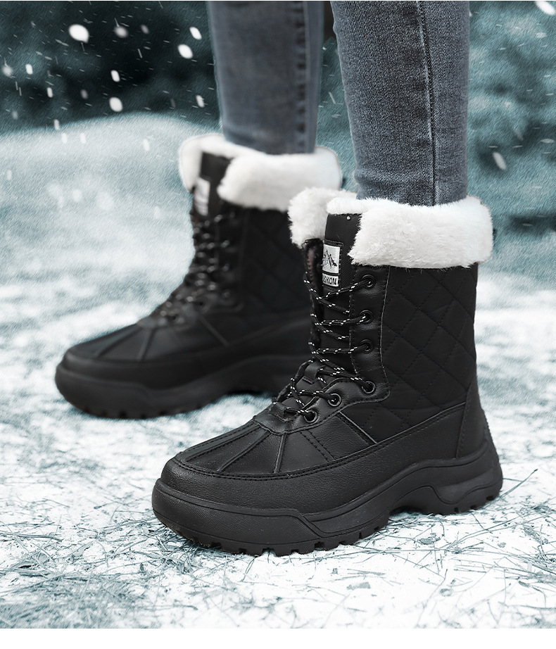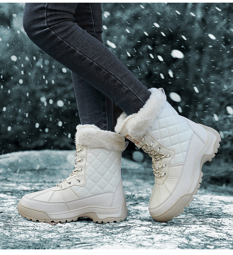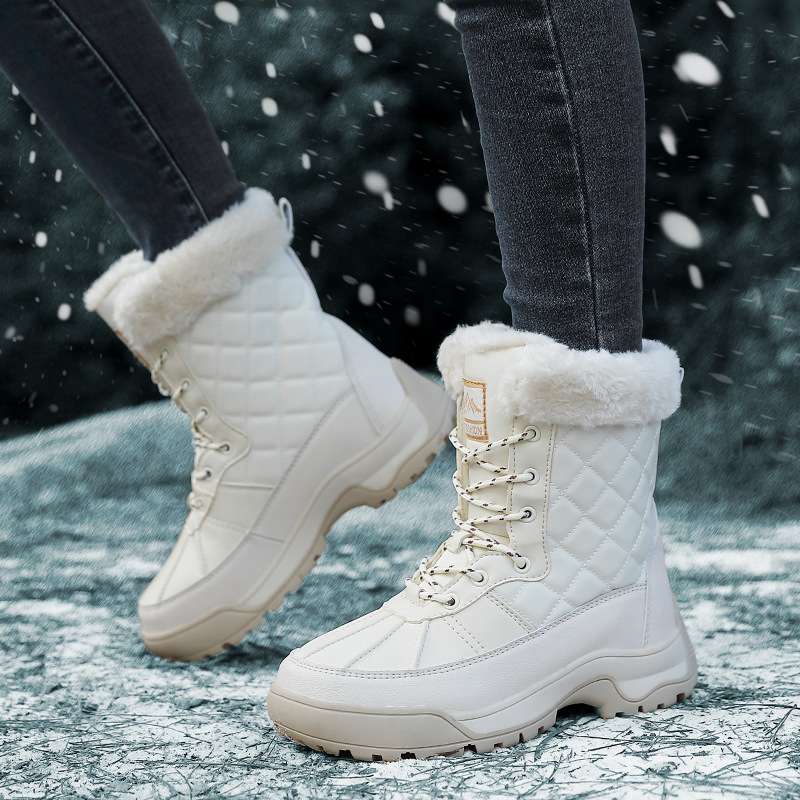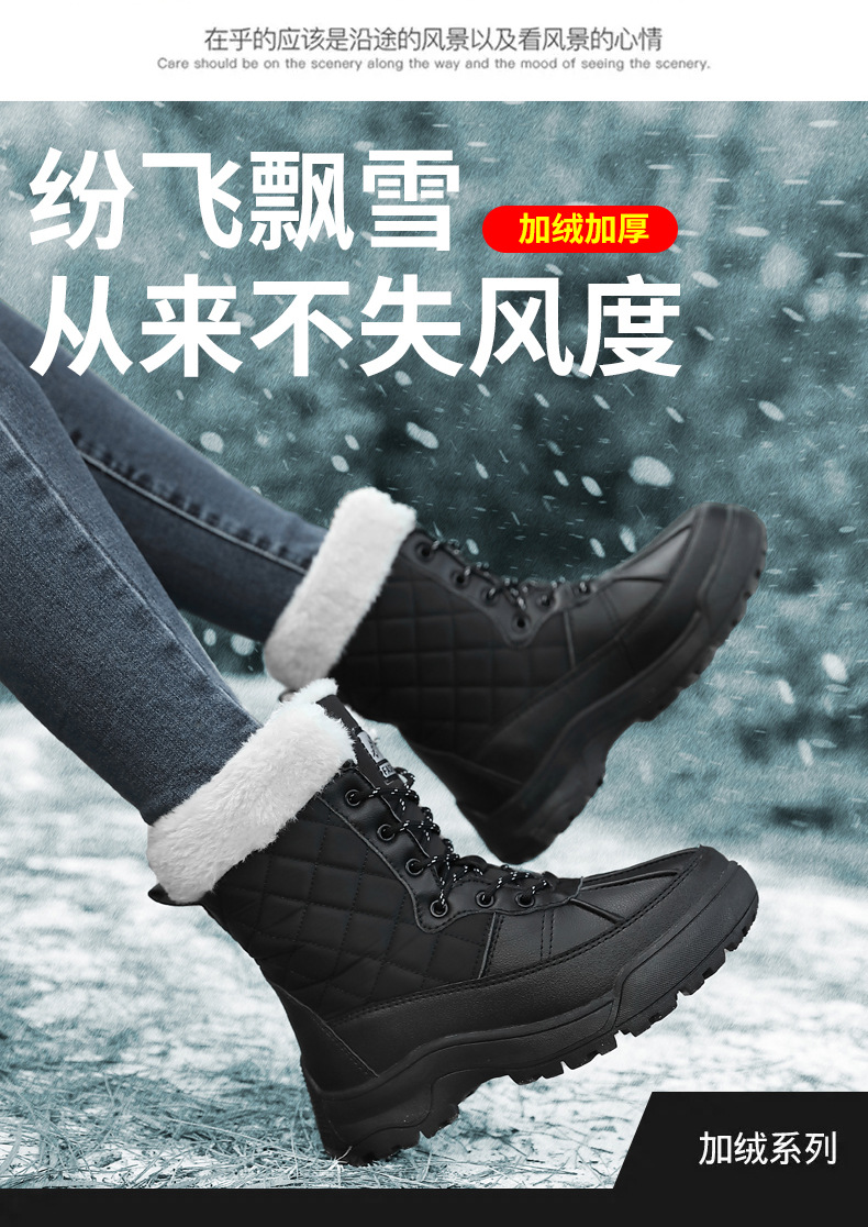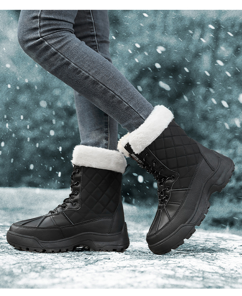 Женские зимние сапоги, плюшевая теплая хлопчатобумажная обувь, износостойкие удобные спортивные уличные высокие женские ботинки на шнуровке, большие размеры