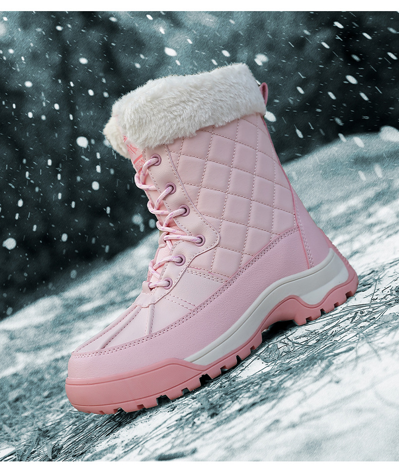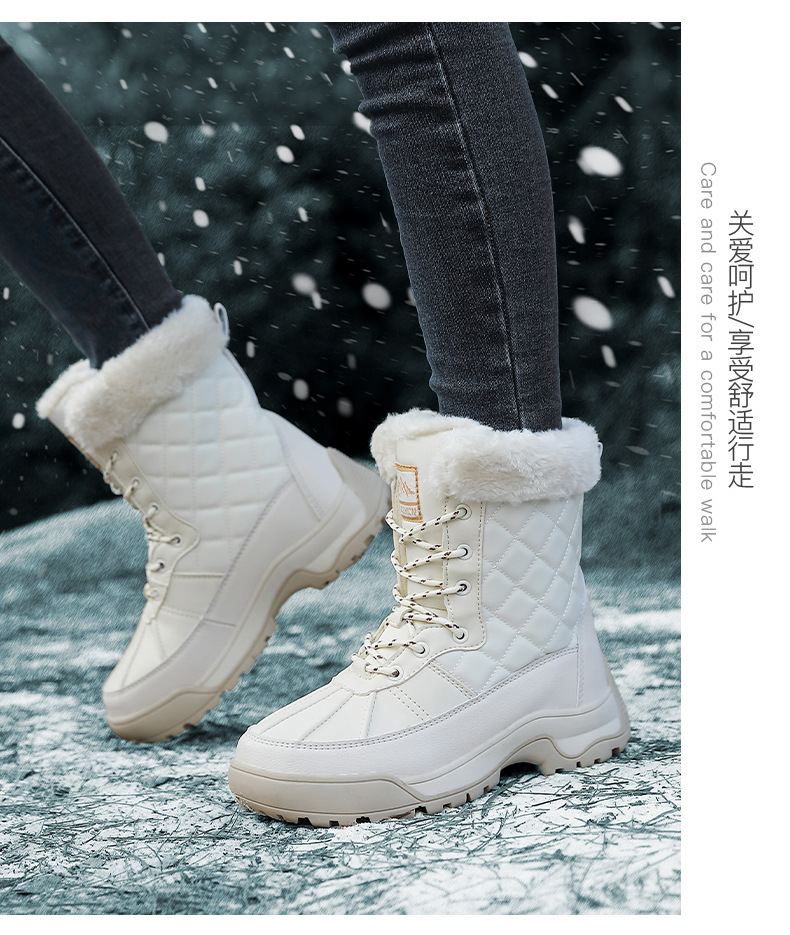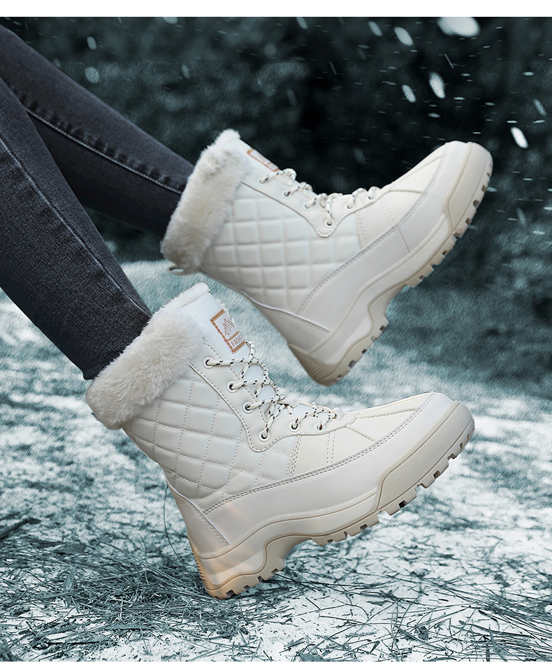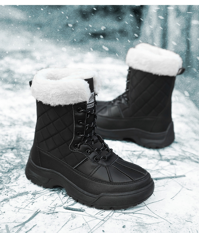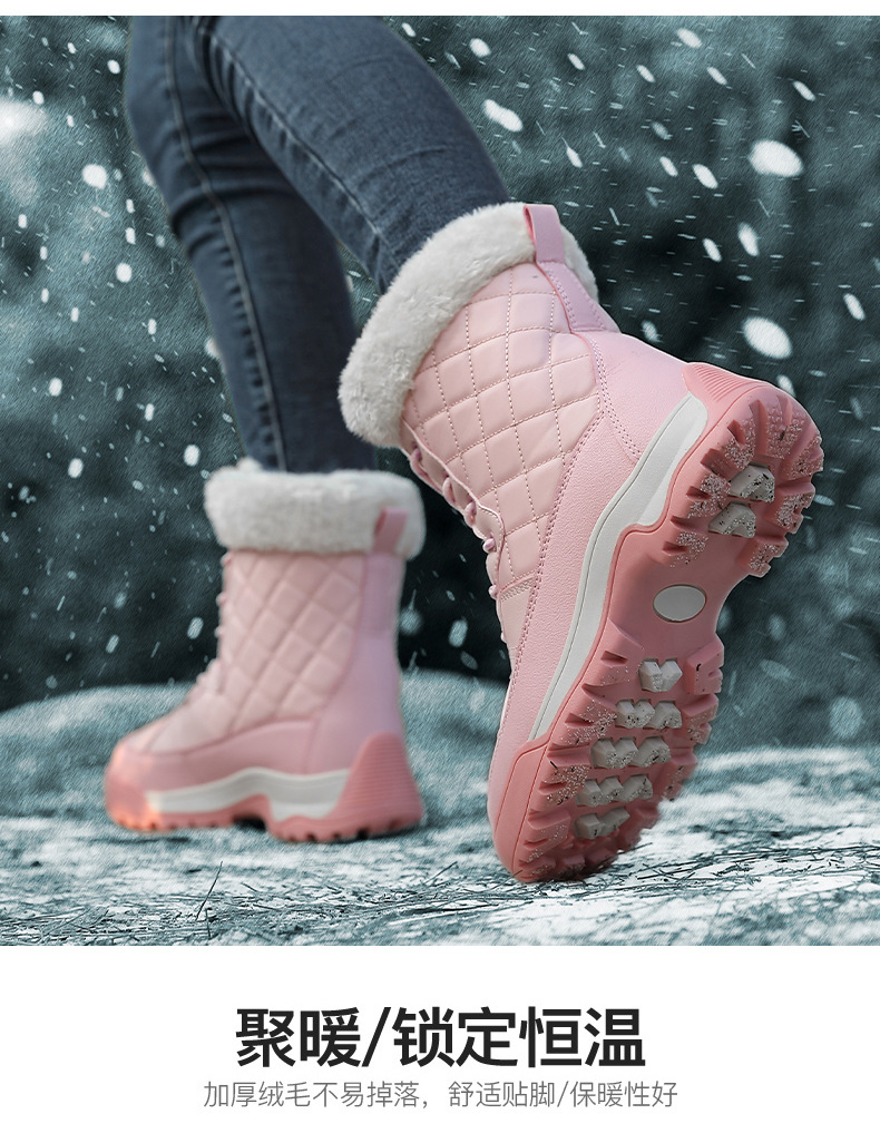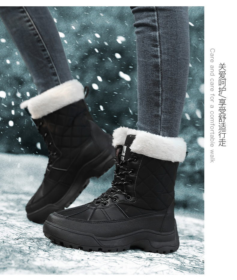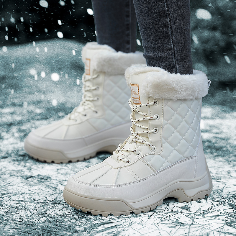 Женские зимние сапоги, плюшевая теплая хлопчатобумажная обувь, износостойкие удобные спортивные уличные высокие женские ботинки на шнуровке, большие размеры