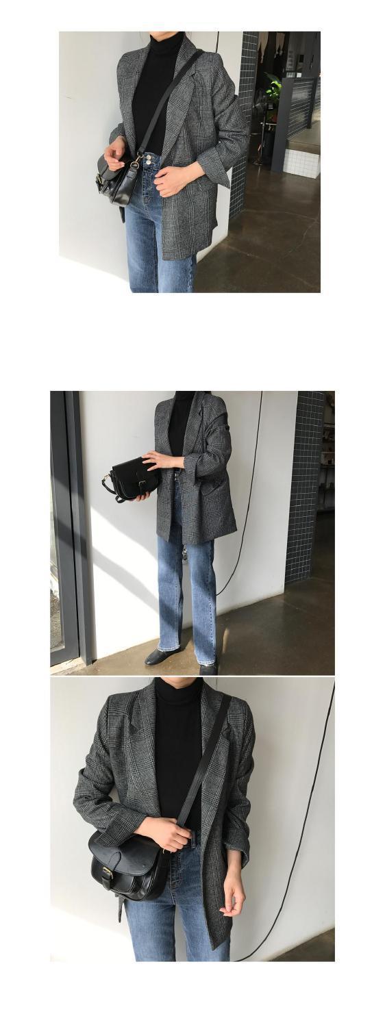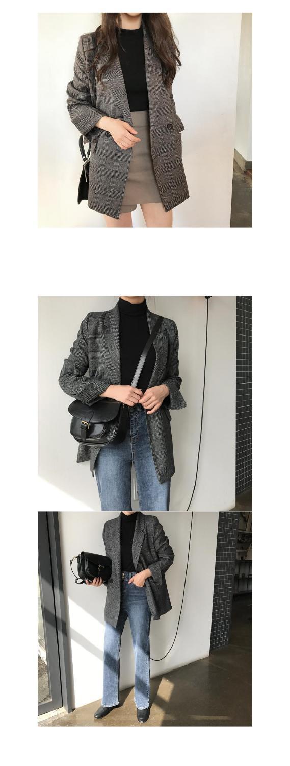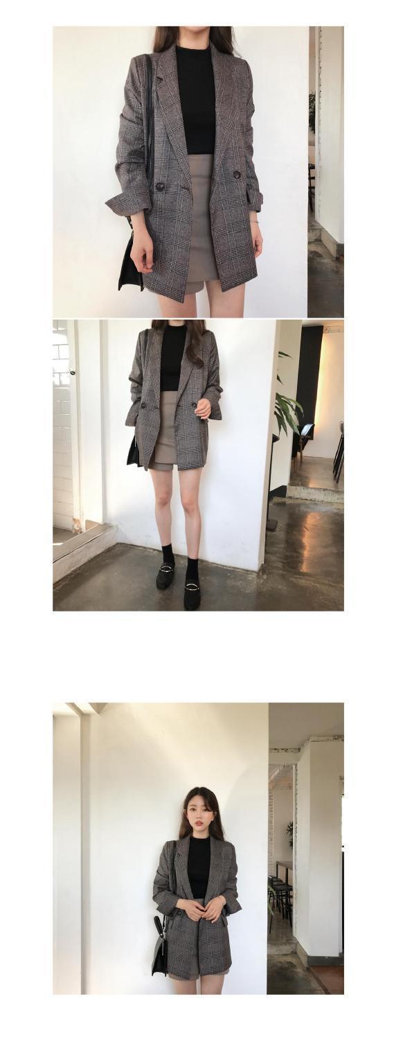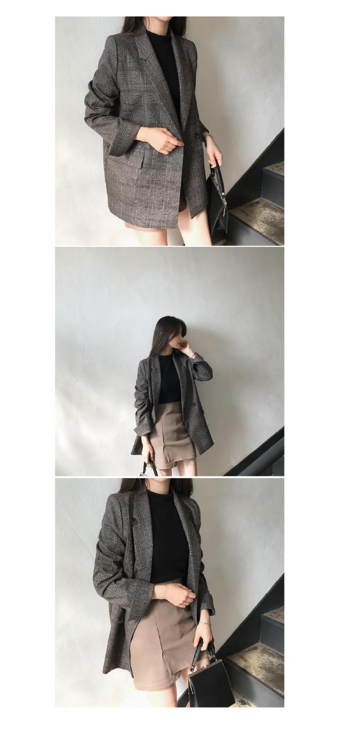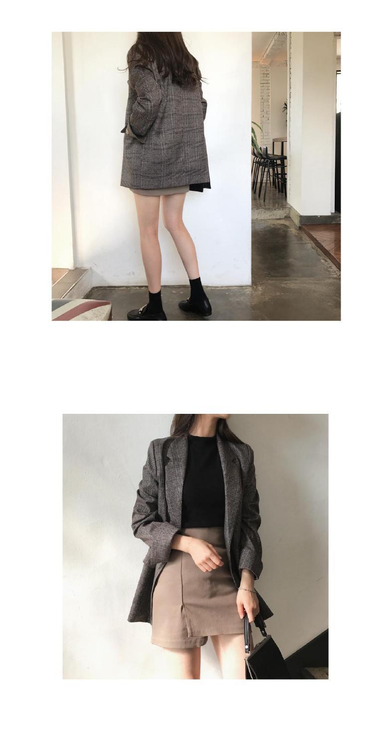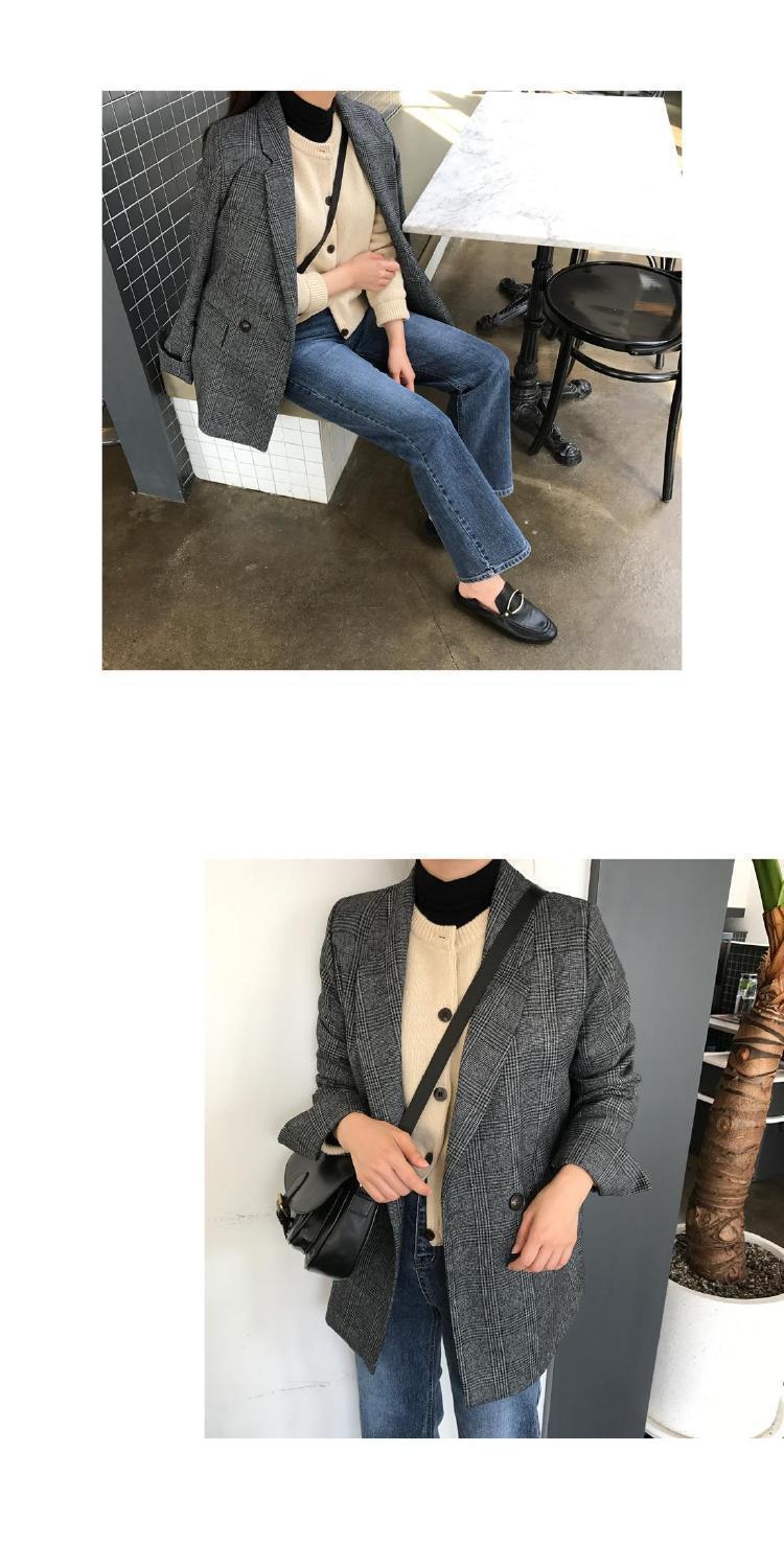 Корейский шикарный осенне-зимний простой клетчатый пиджак в стиле ретро с двумя пряжками, свободный двойной карман, маленький пиджак с длинным рукавом для женщин