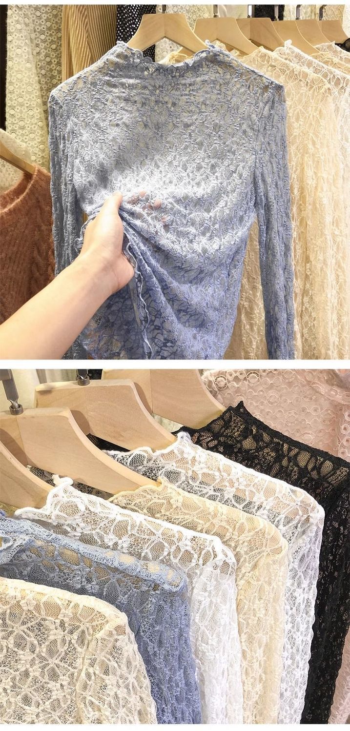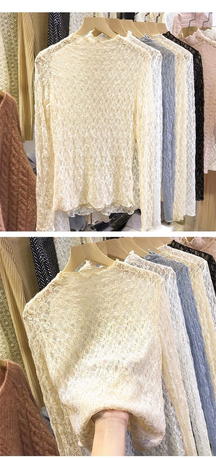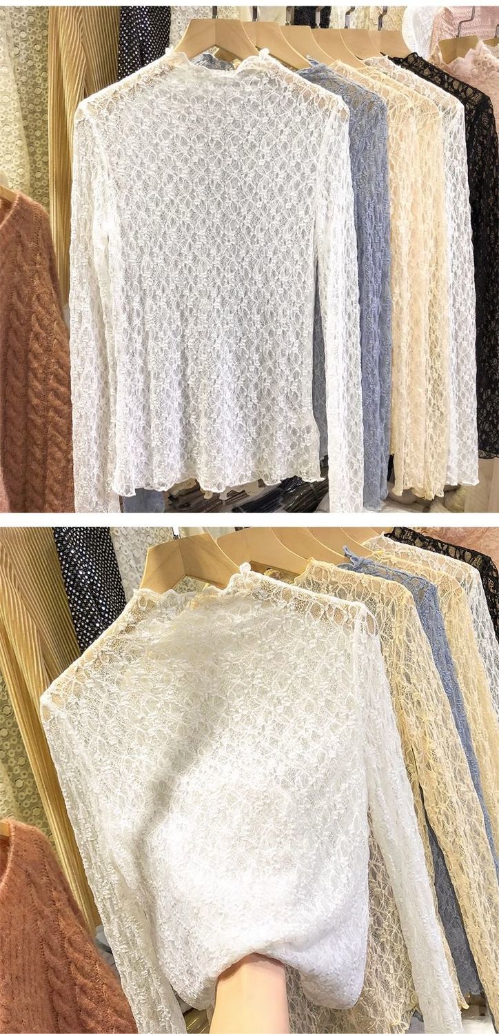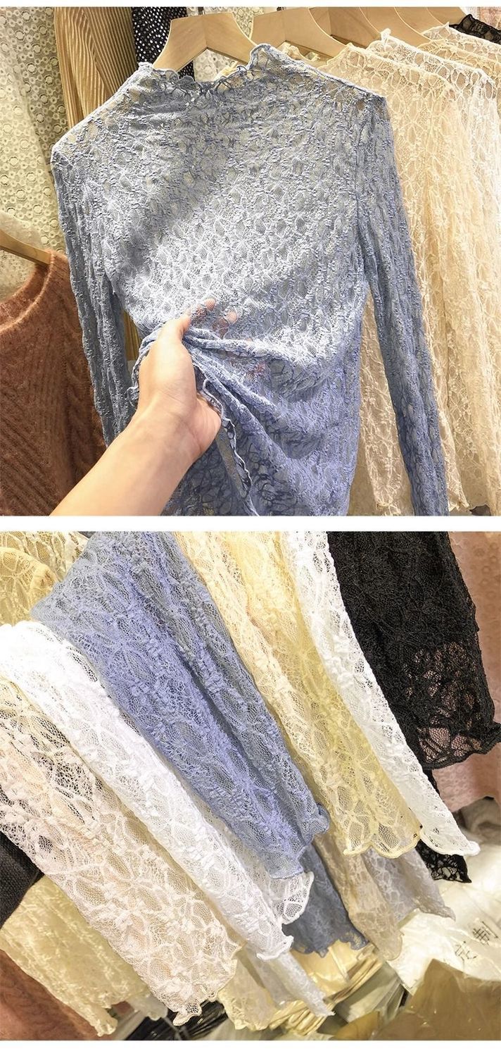 Кружевная Базовая рубашка с высоким воротником, Женская осенне-зимняя Новинка 2023 года, маленькая рубашка-стилист, сетчатый топ с длинными рукавами