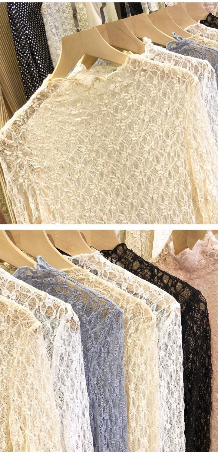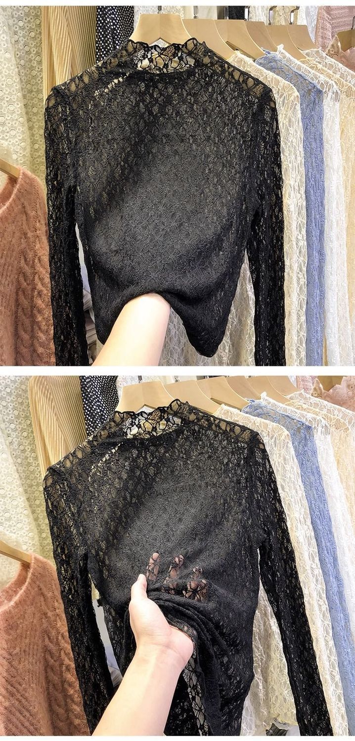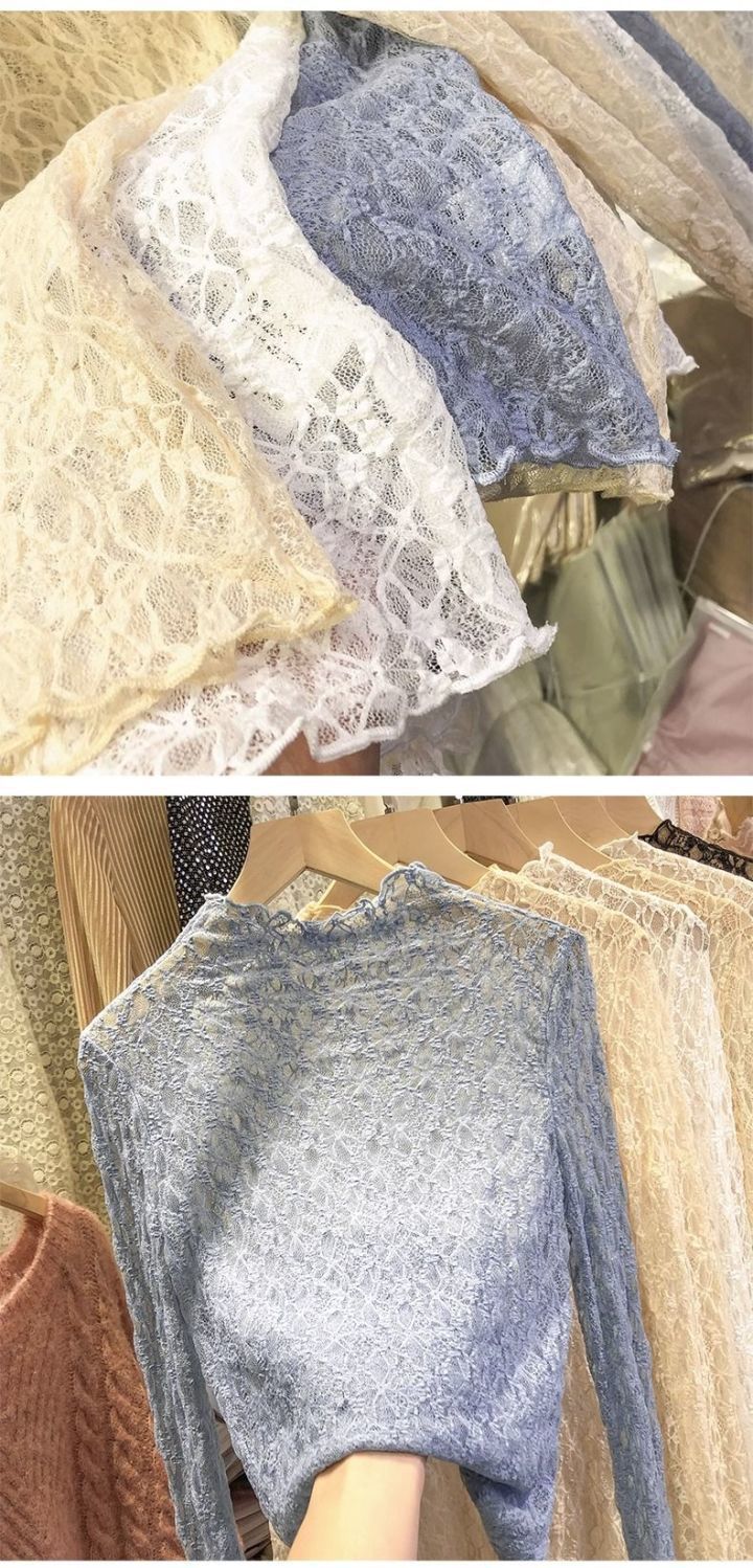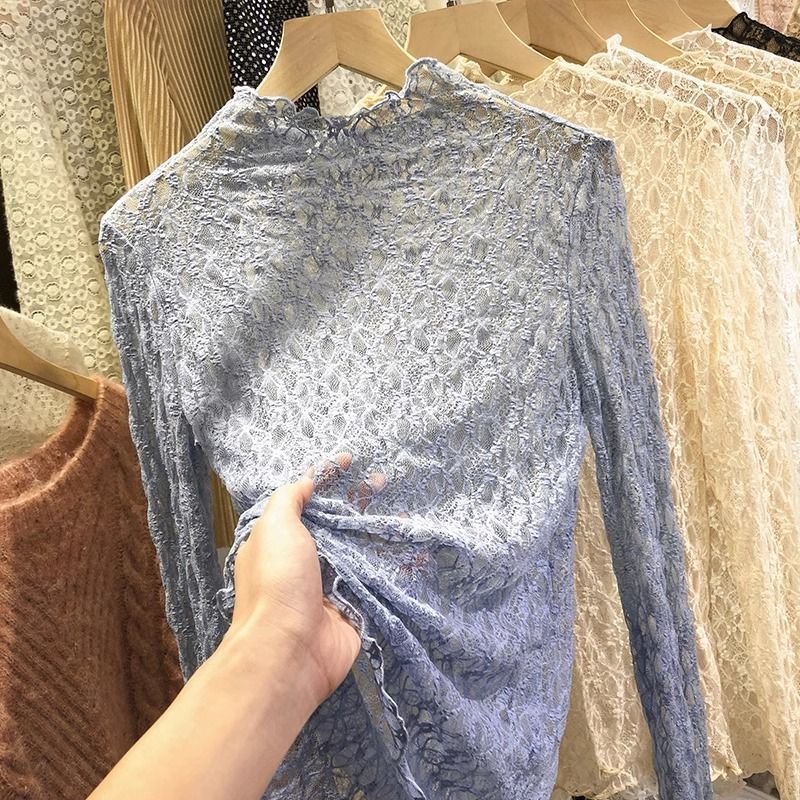 Кружевная Базовая рубашка с высоким воротником, Женская осенне-зимняя Новинка 2023 года, маленькая рубашка-стилист, сетчатый топ с длинными рукавами