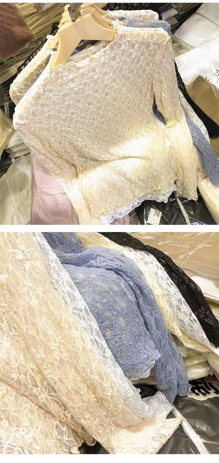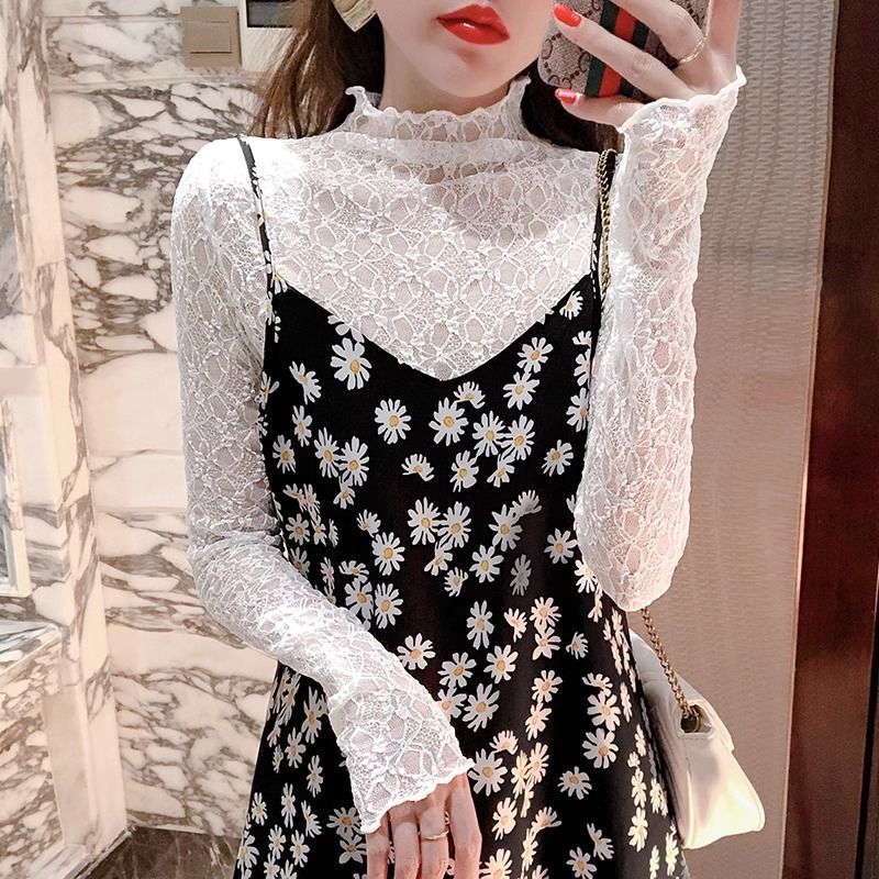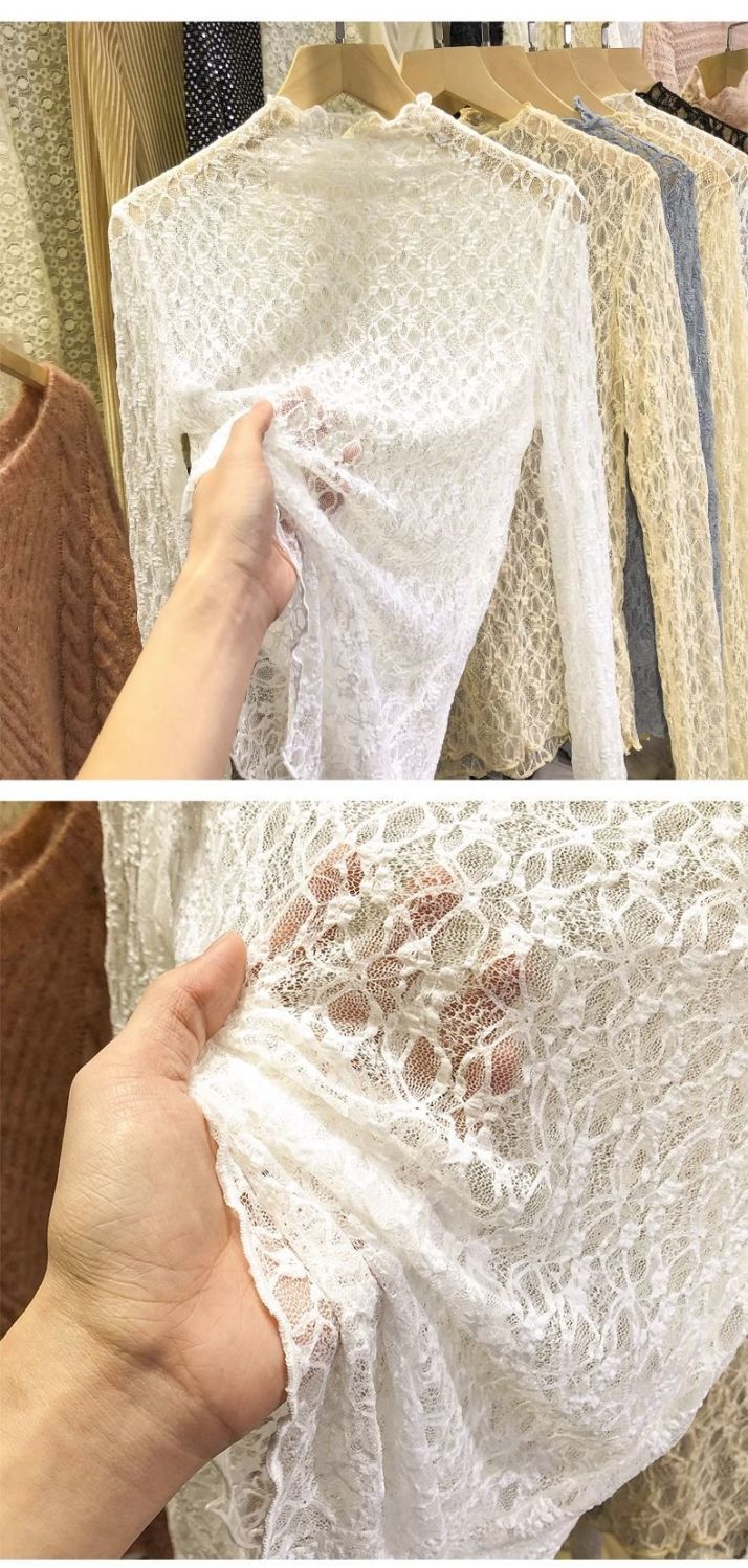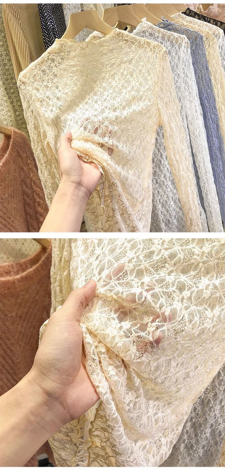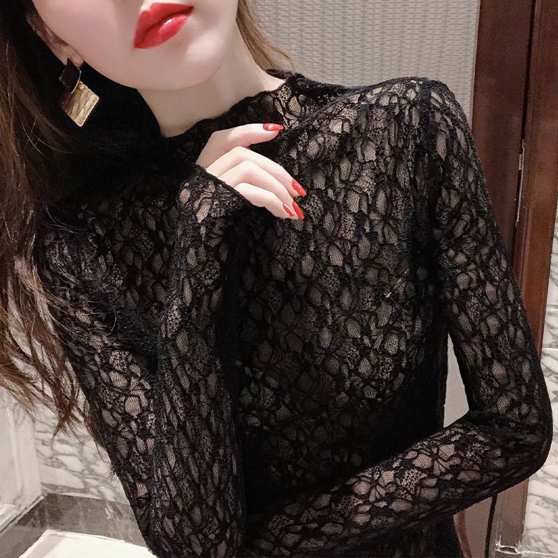 Кружевная Базовая рубашка с высоким воротником, Женская осенне-зимняя Новинка 2023 года, маленькая рубашка-стилист, сетчатый топ с длинными рукавами