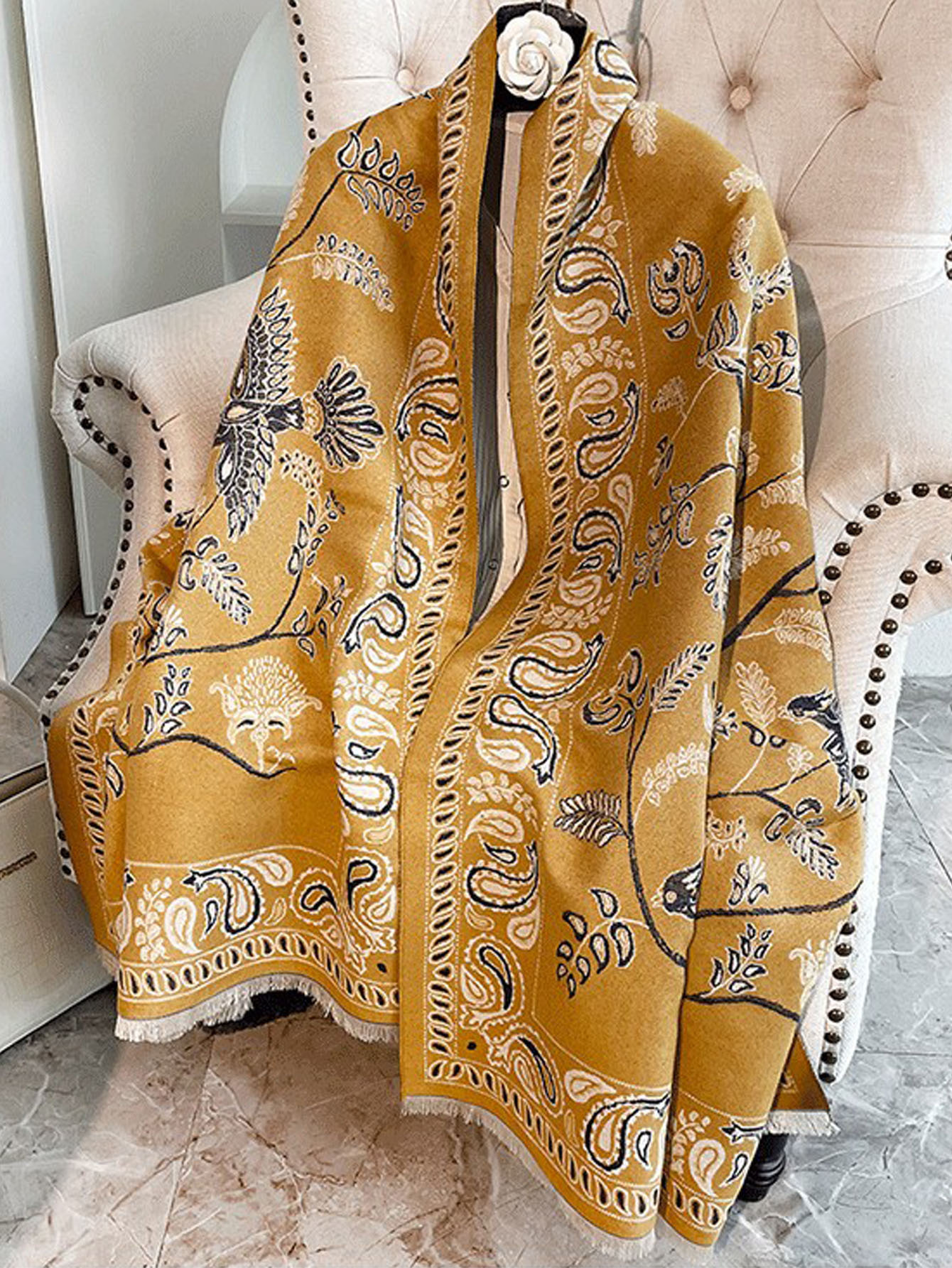 Новый осенне-зимний платок сиеста одеяло кашемировый шарф с принтом кисточка теплый шарф женский оптом