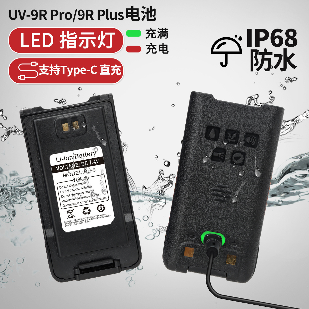 Baofeng UV-9RPRO водонепроницаемые аксессуары для раций поддержка батареи Прямая зарядка Type-C BL-9 оптовая продажа с фабрики