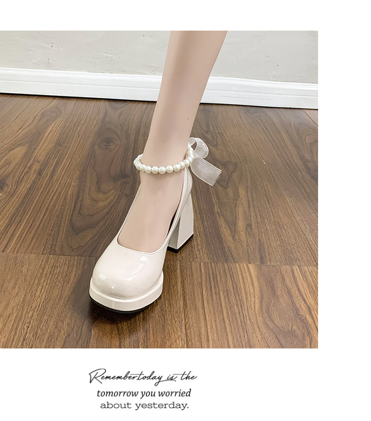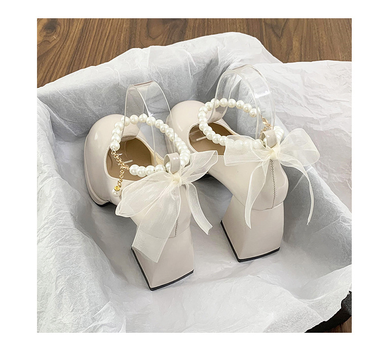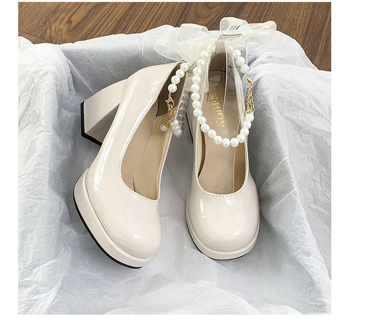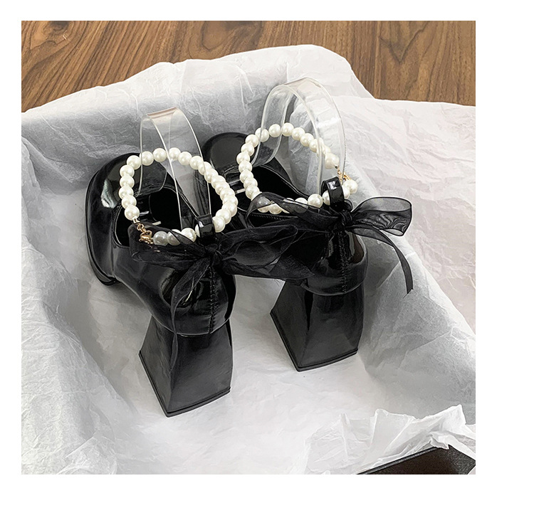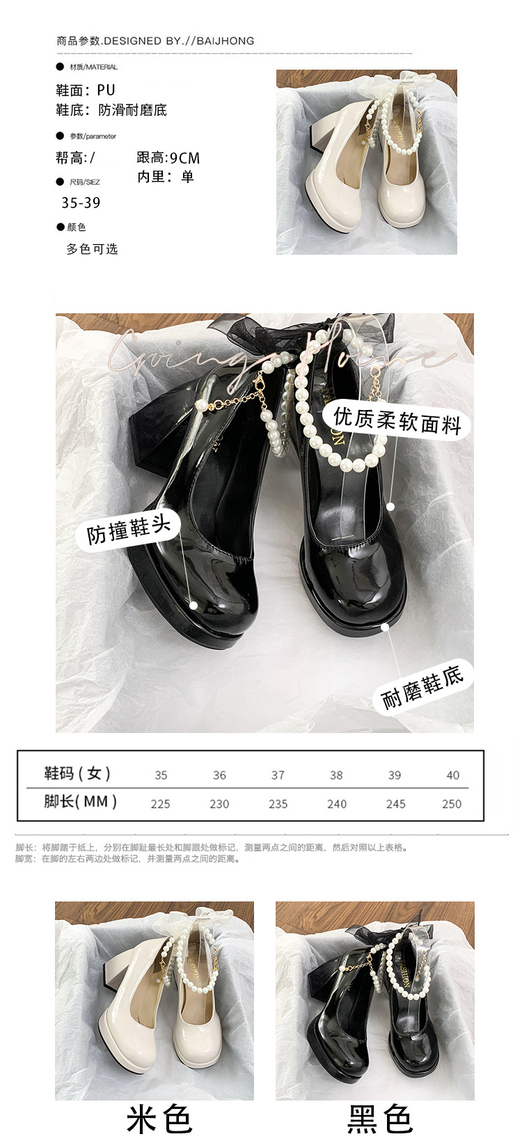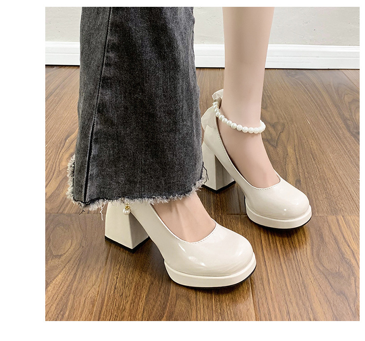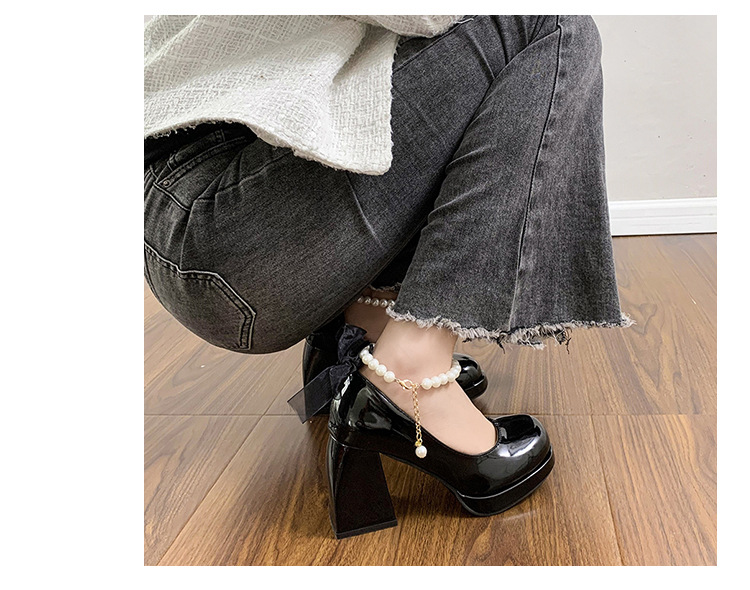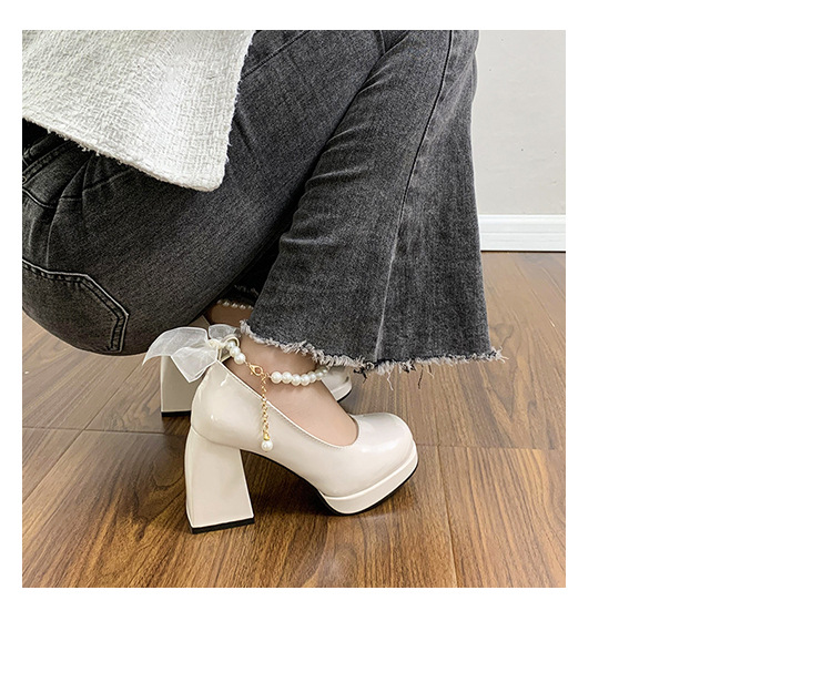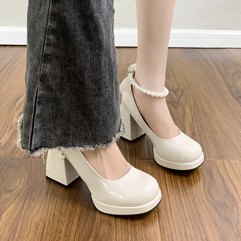 Французские туфли на высоком каблуке для женщин, новинка 2025 года, весна-осень, ретро-стиль с жемчугом, массивный каблук, туфли Мэри Джейн, кожаные туфли в стиле Хепберн, на заказ