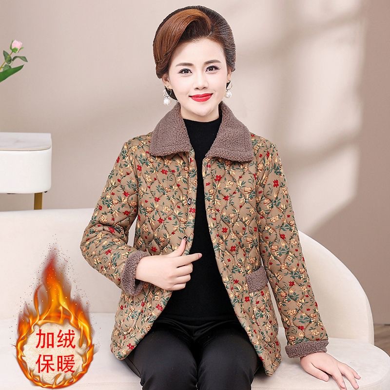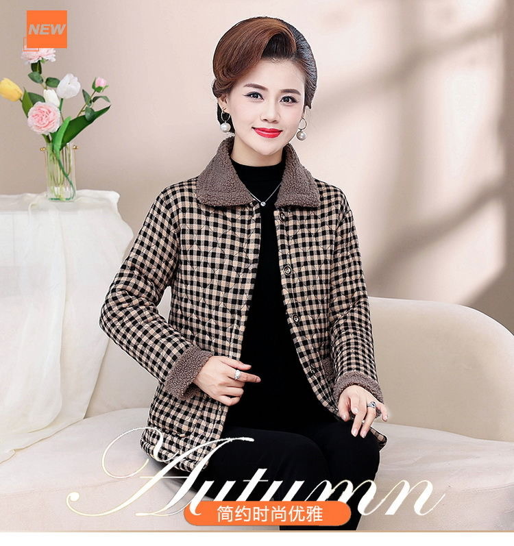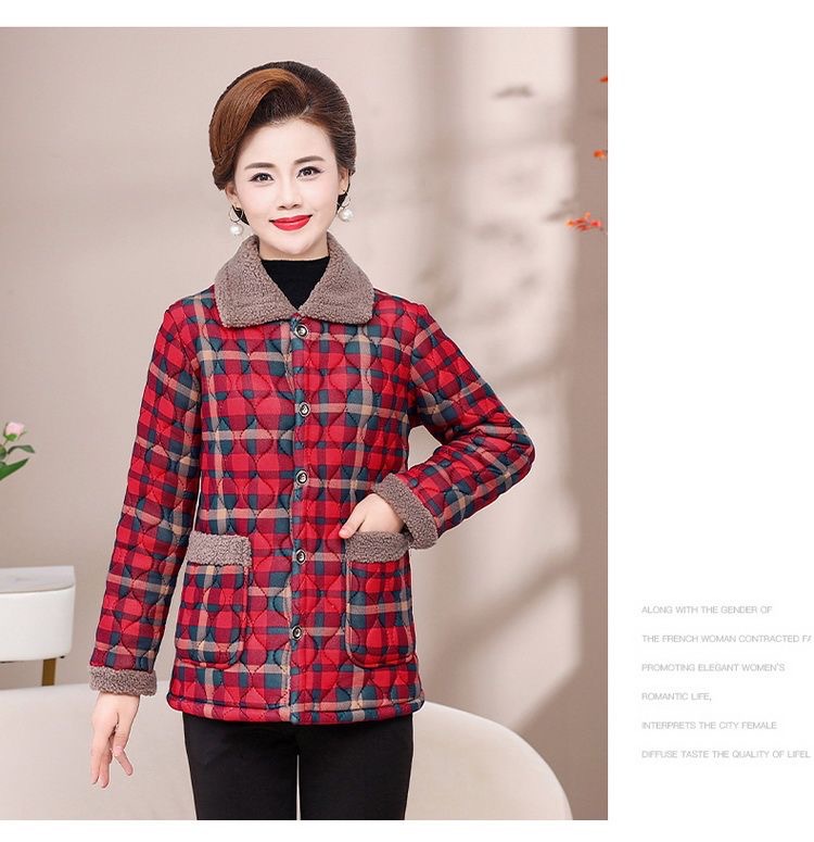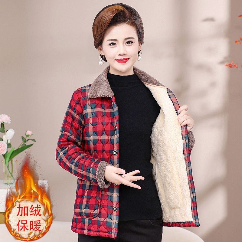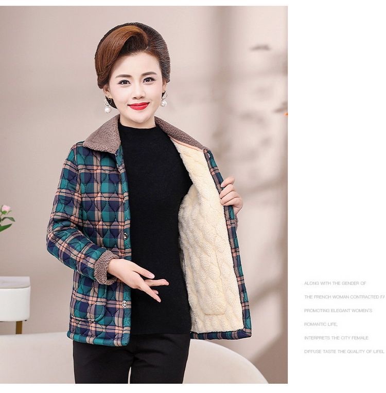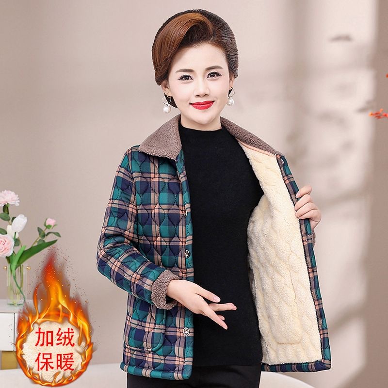 Осенне-зимнее Новое утепленное пальто с хлопковой подкладкой на флисовой подкладке, женское теплое пальто с лацканами, плед для мам среднего и пожилого возраста, легкое шерстяное пальто с хлопковой подкладкой для женщин