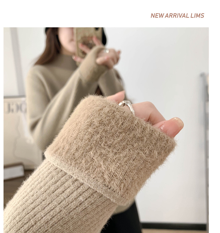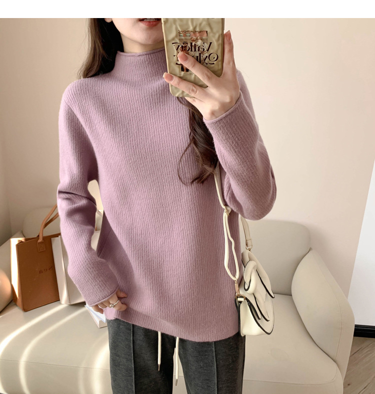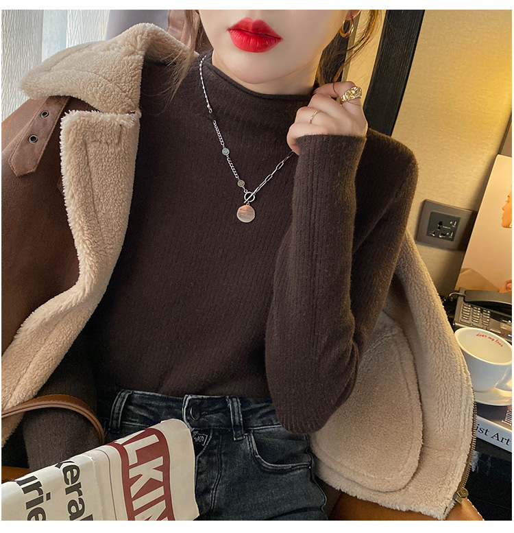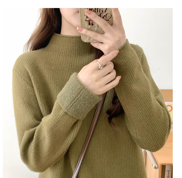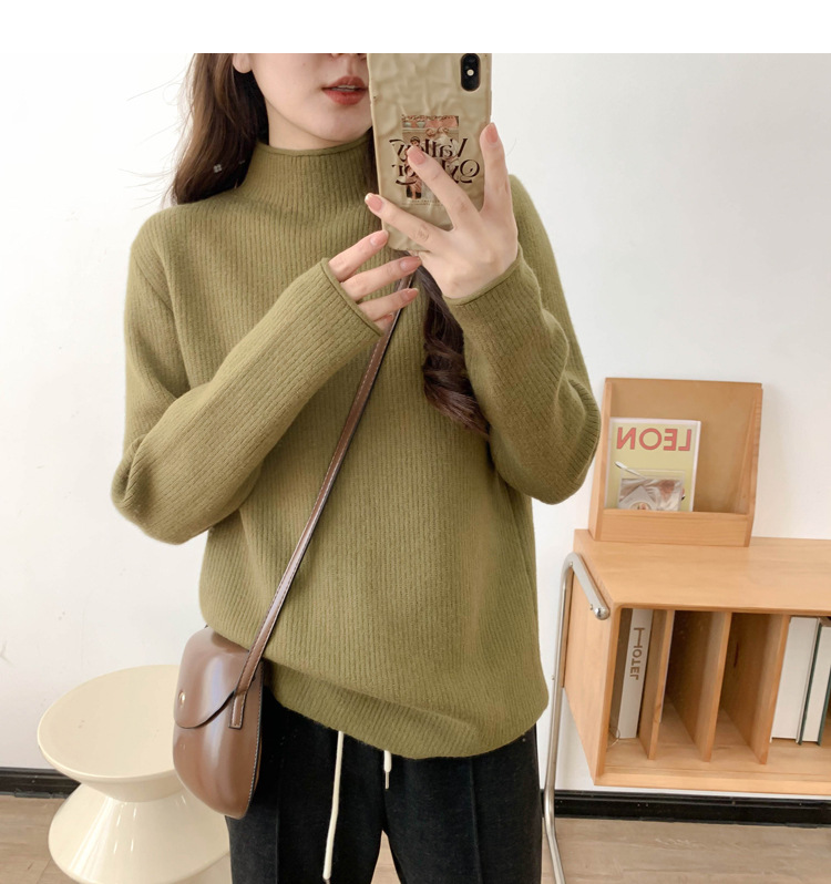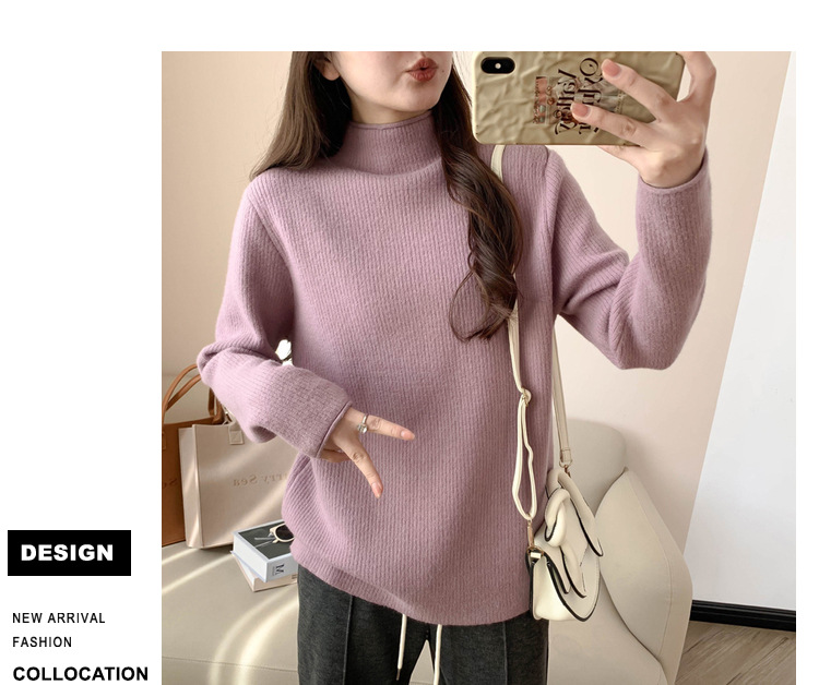Женский теплый свитер больших размеров 200 кг с воротником и флисовой подкладкой, теплый внутренний свитер, осенне-зимний цельный бархатный базовый свитер