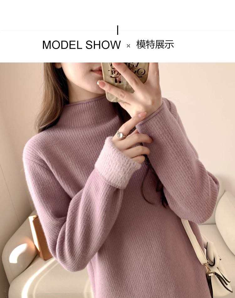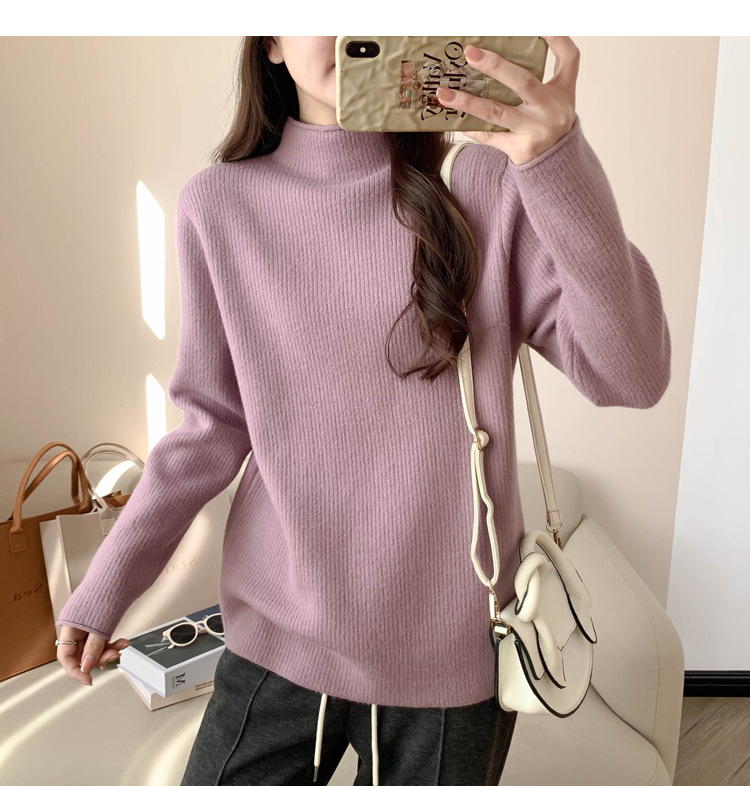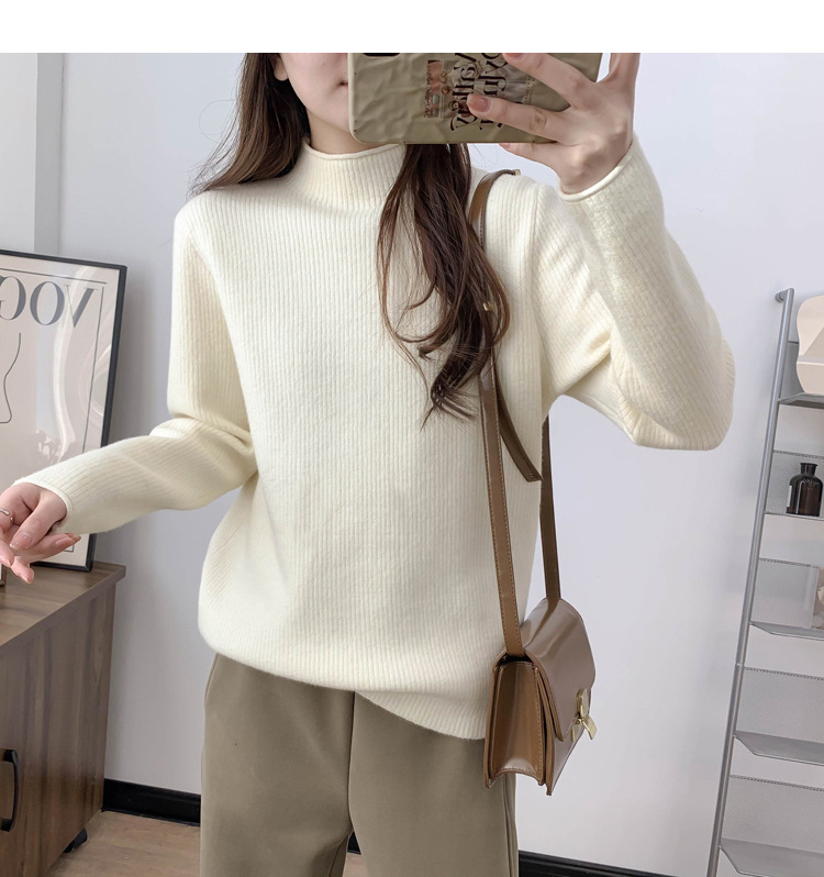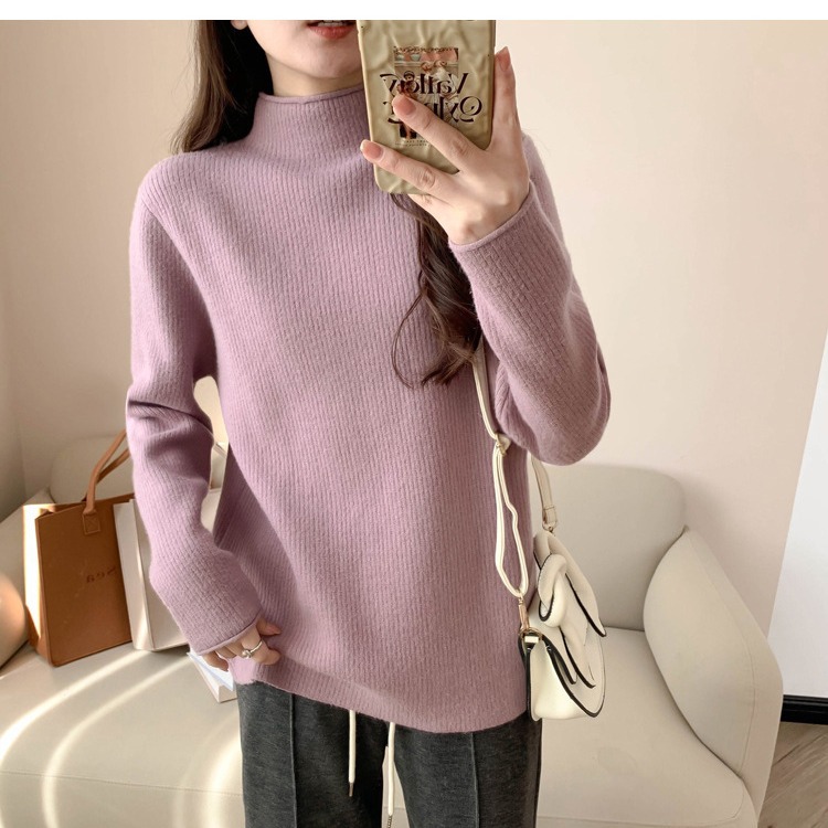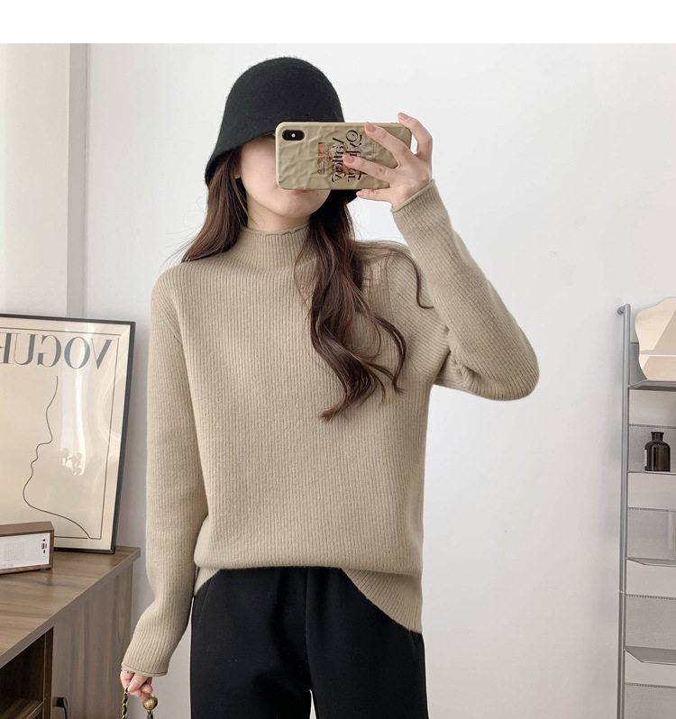 Женский теплый свитер больших размеров 200 кг с воротником и флисовой подкладкой, теплый внутренний свитер, осенне-зимний цельный бархатный базовый свитер