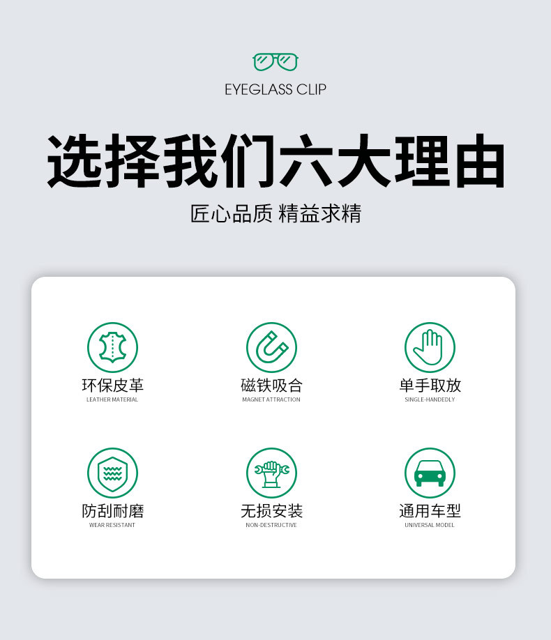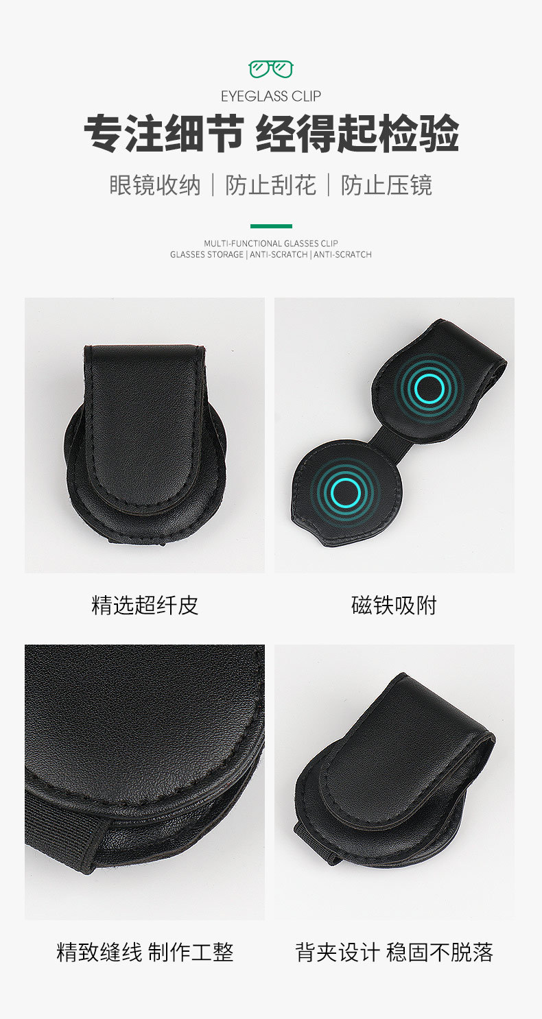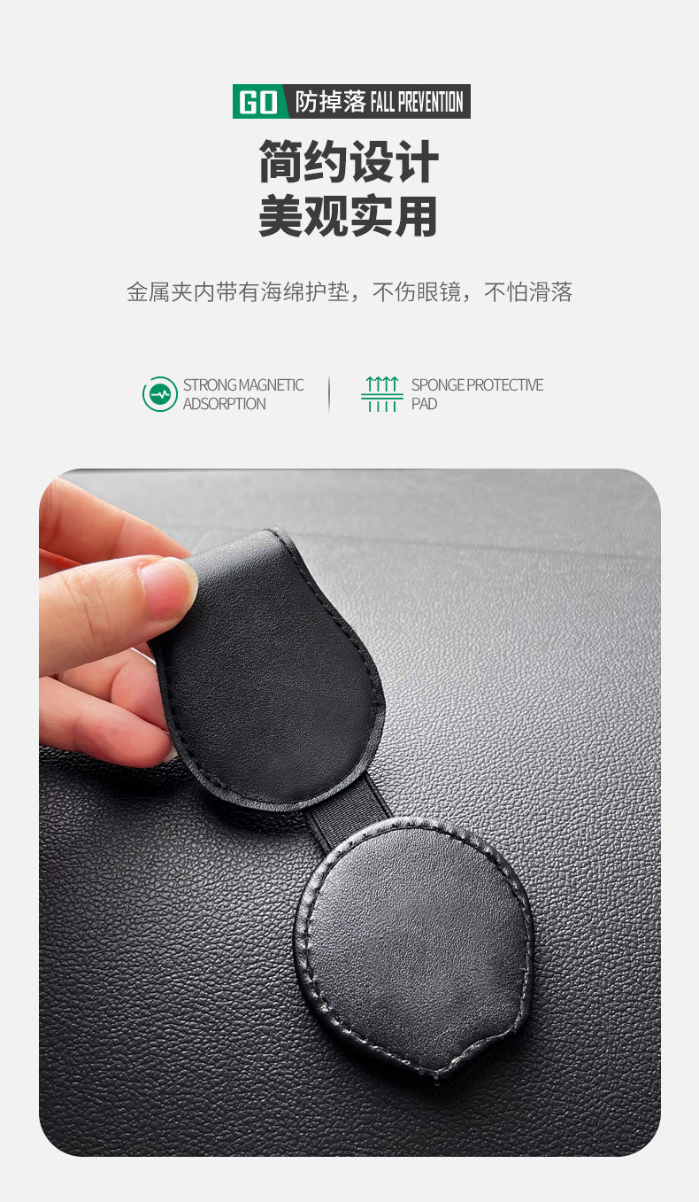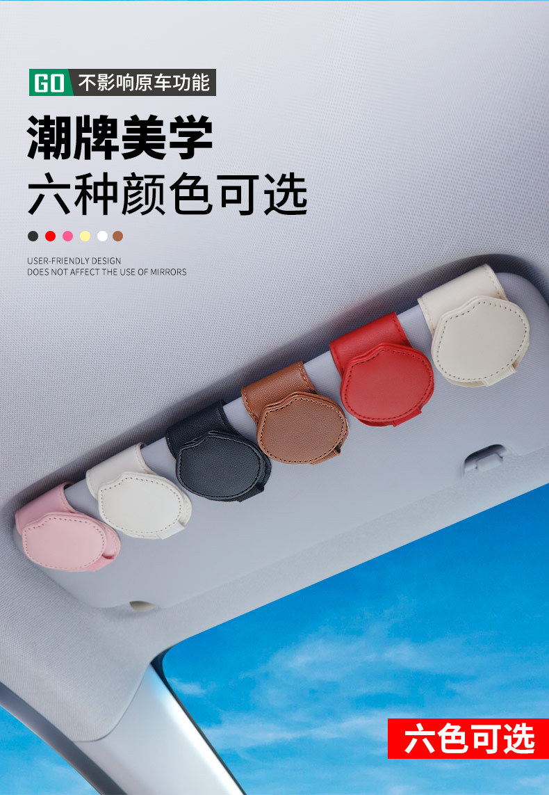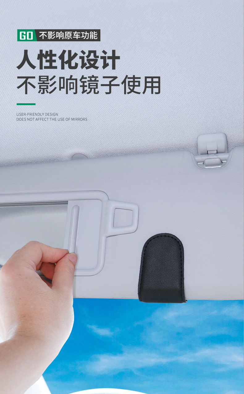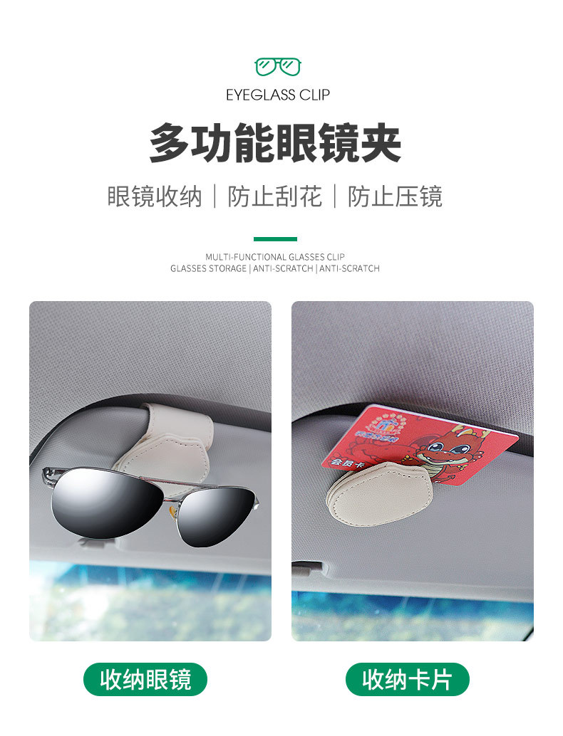 ·产品名称:车载遮阳板眼镜夹 ·产品材质:PU皮革
