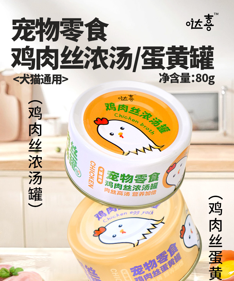 Измельченный куриный суп горшок (общий для собак и кошек); Желток куриный в банке (для собак кошек универсальный)