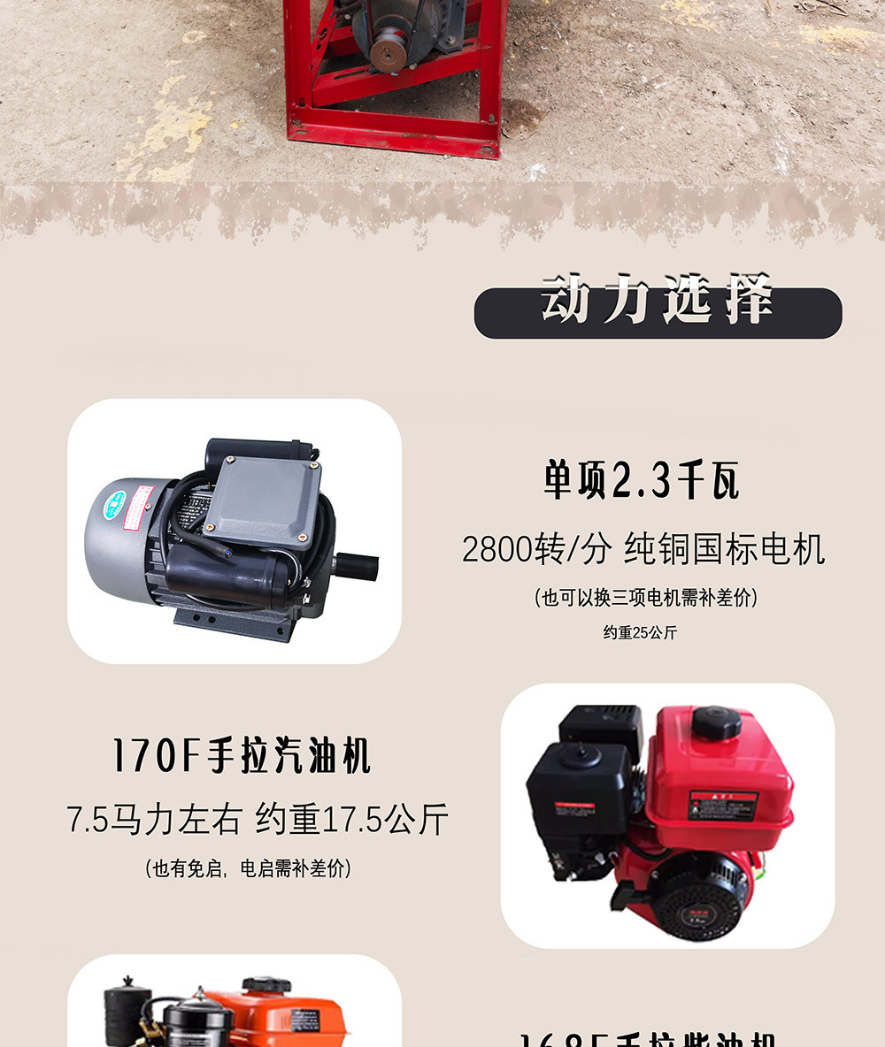 С четырьмя маленькими колесами (всего четыре колеса); С большими колесами (только два больших колеса); Универсальная машина типа 40 [голый металл]; Универсальная машина типа 40 + двигатель мощностью 2,3 кВт (один комплект); Универсальная машина типа 40 + бензиновый двигатель мощностью 7,5 л.с. (один комплект); Универсальная машина типа 50 [голый металл]; Универсальная машина типа 50 + двигатель мощностью 2,3 кВт (один комплект); Универсальная машина типа 50 + бензиновый двигатель мощностью 7,5 л.с. (один комплект); Универсальная машина типа 60 [голый металл]; Универсальная машина типа 60 + двигатель мощностью 2,3 кВт (один комплект); Универсальная машина типа 60 + бензиновый двигатель мощностью 7,5 л.с. (один комплект); Тип 40, голый металл старого образца