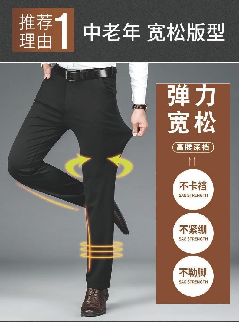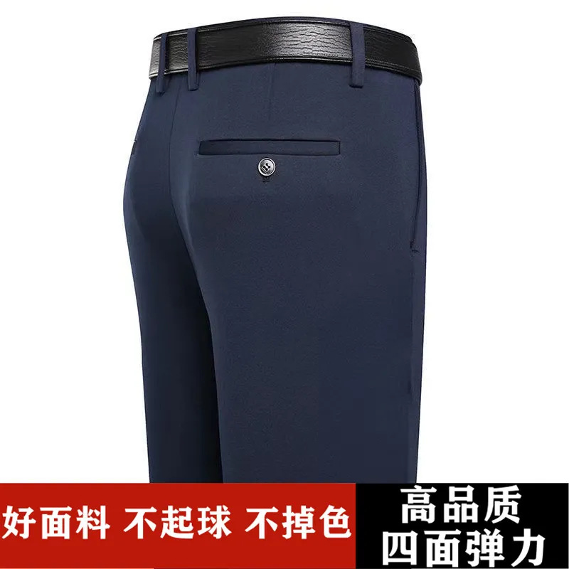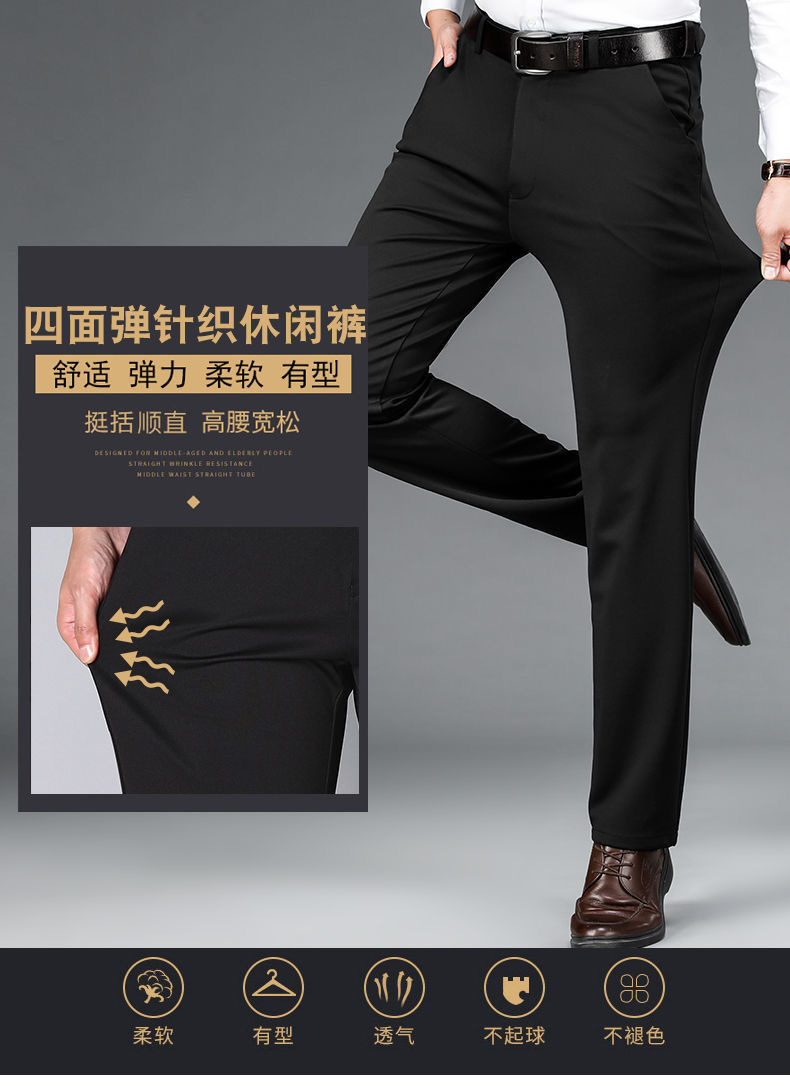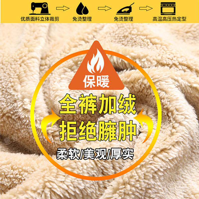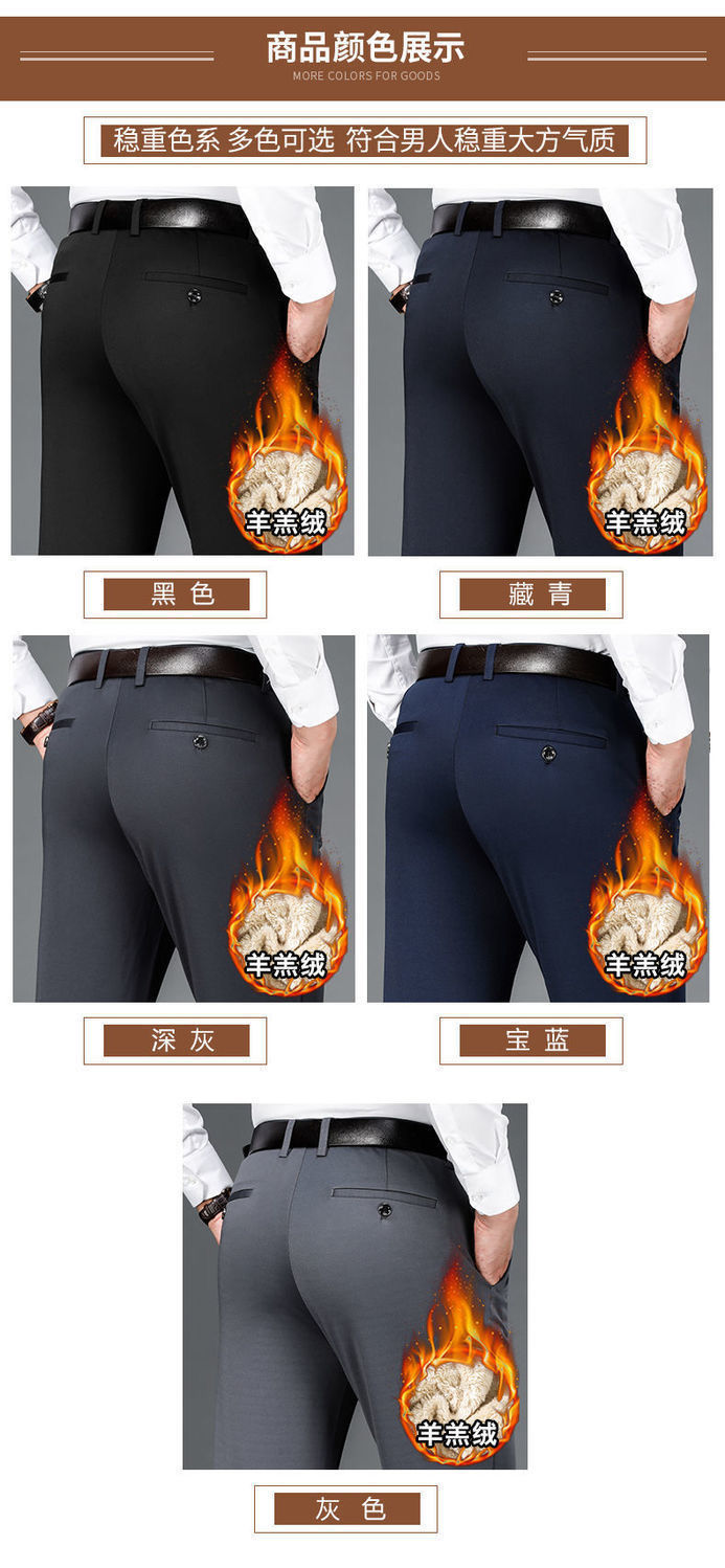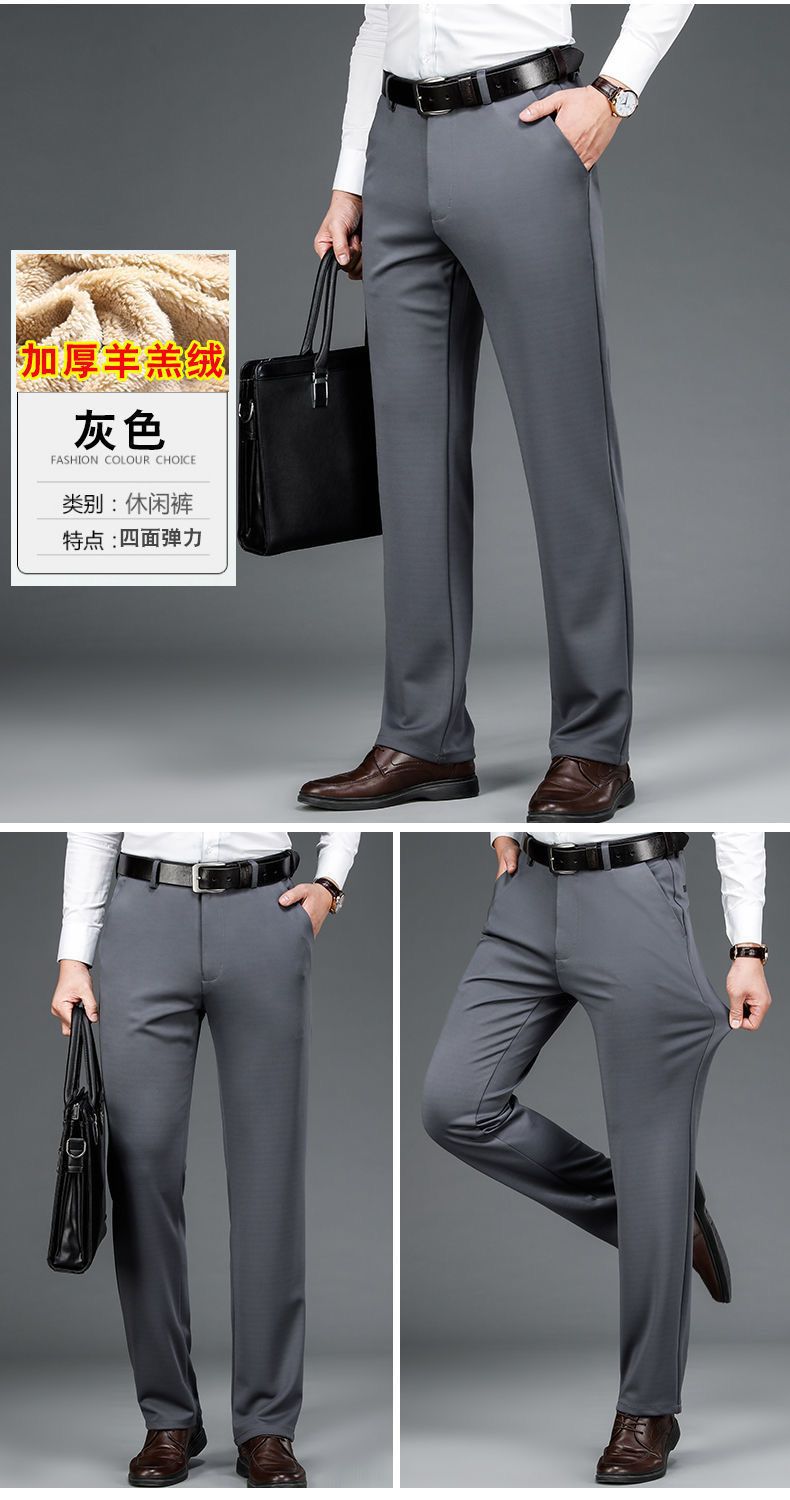 Зимние утолщенные мужские брюки из флиса из ягненка с высокой эластичной флисовой подкладкой, прямые брюки без глажки для папы, повседневные брюки среднего возраста