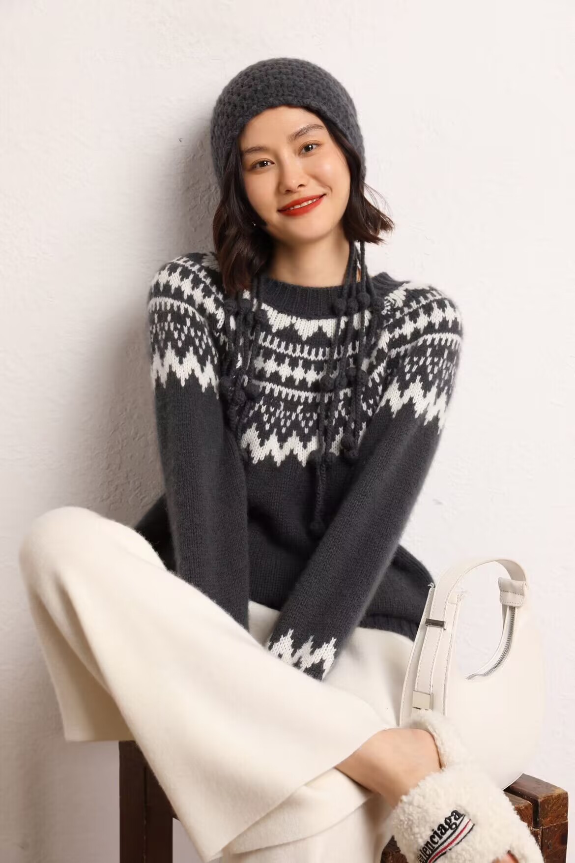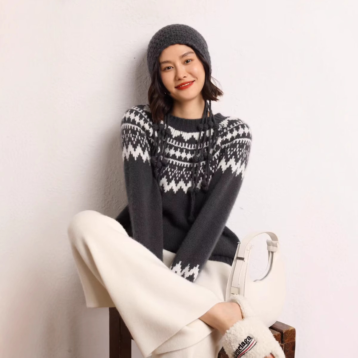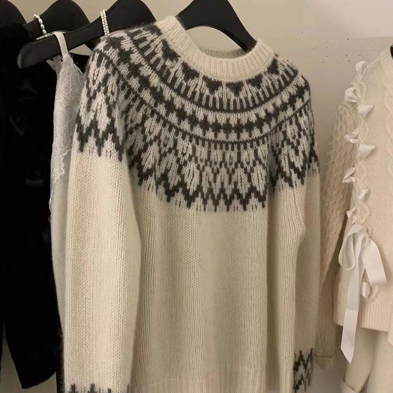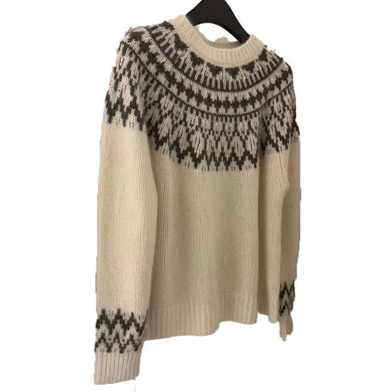 В этническом стиле Осень-зима Новый 100 шерстяной утолщенный винтажный жаккардовый свитер с круглым вырезом Женский вязаный свитер Топ