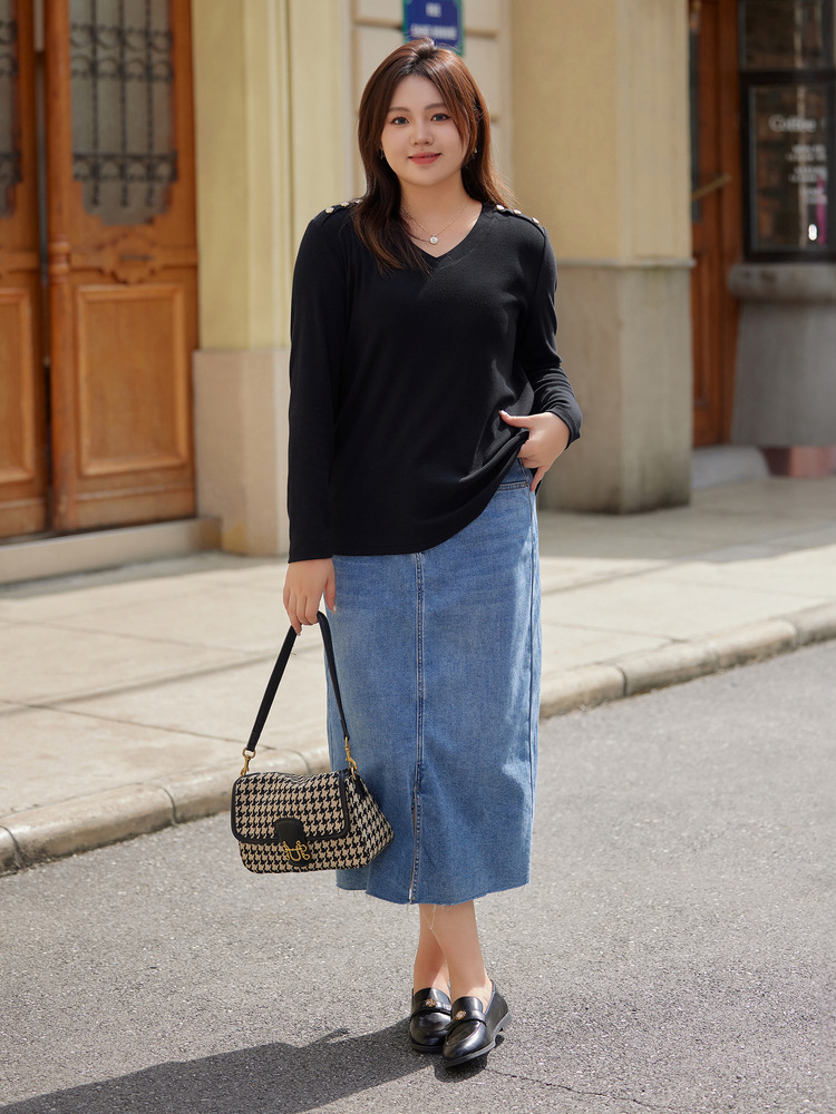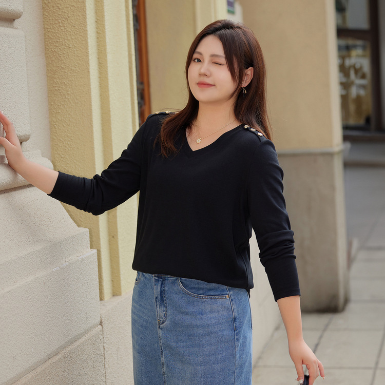 Slim show 2023 Осень Новая женская одежда больших размеров, пухлые девушки, простой эластичный удобный Свободный дышащий свитер с V-образным вырезом