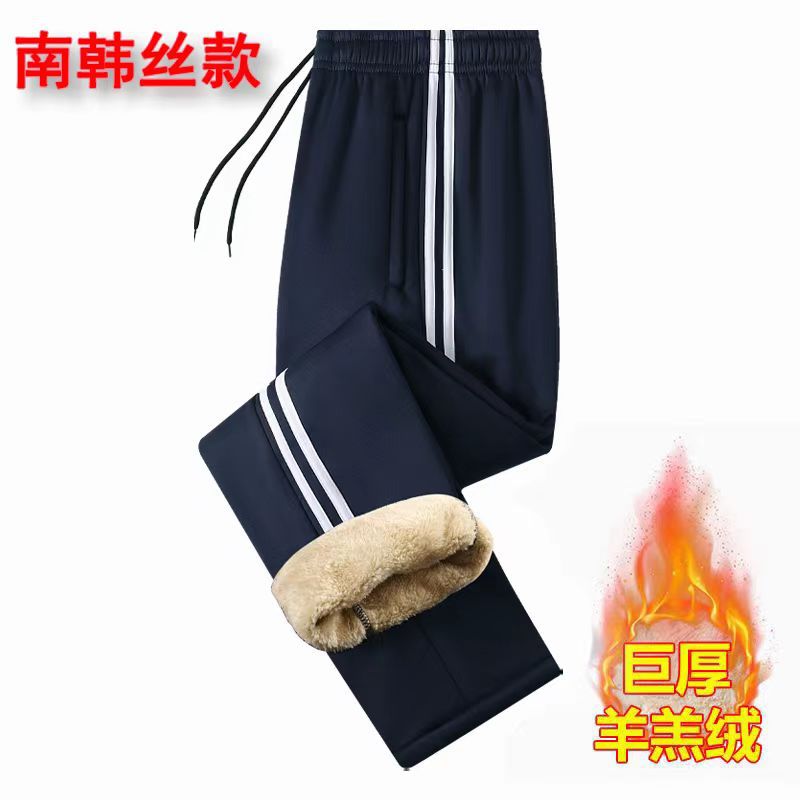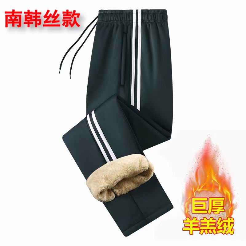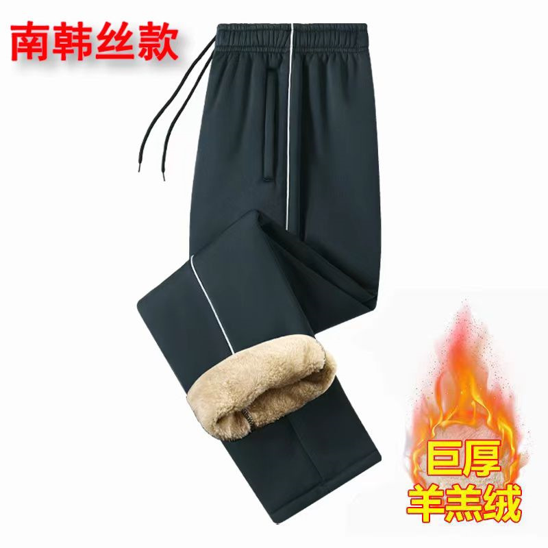 Южнокорейские брюки из шелковой овечьей шерсти осенне-зимние теплые спортивные повседневные брюки на флисовой подкладке Зимняя школьная форма брюки для младших классов средней школы ученики начальной школы