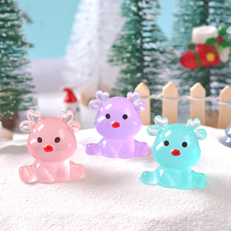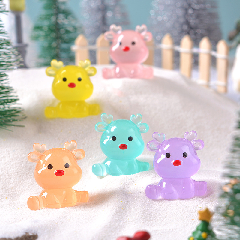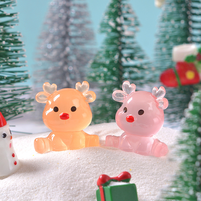Рождественский кросс-бордерный милый светящийся сидящий лось микропейзаж снежная сцена маленькие украшения мультяшные DIY смоляные мелкие аксессуары