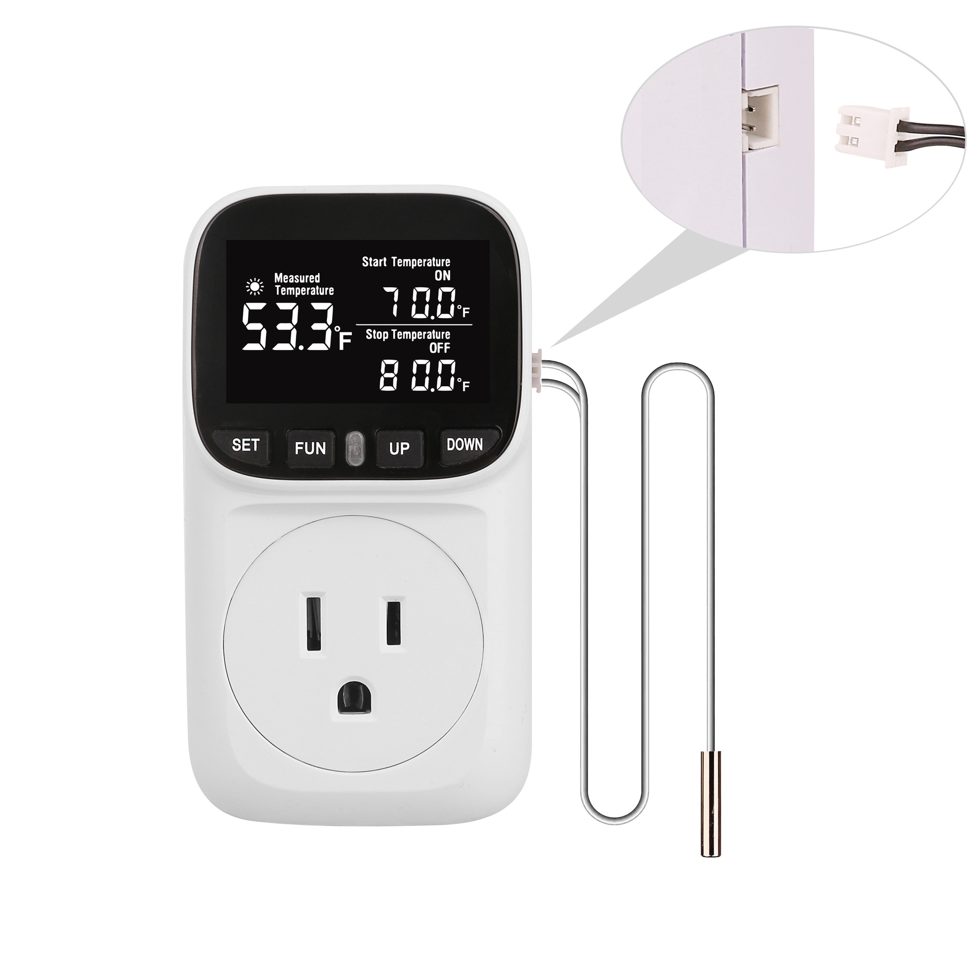 温度控制插座适用于冰箱、孵化器、家养爬行动物、禽舍、玻璃容器、水产养殖、温室、家庭等有温湿度要求的领域,PC阻燃材质,VA屏显示,精准的温度跟计时控制,自动化你的生活