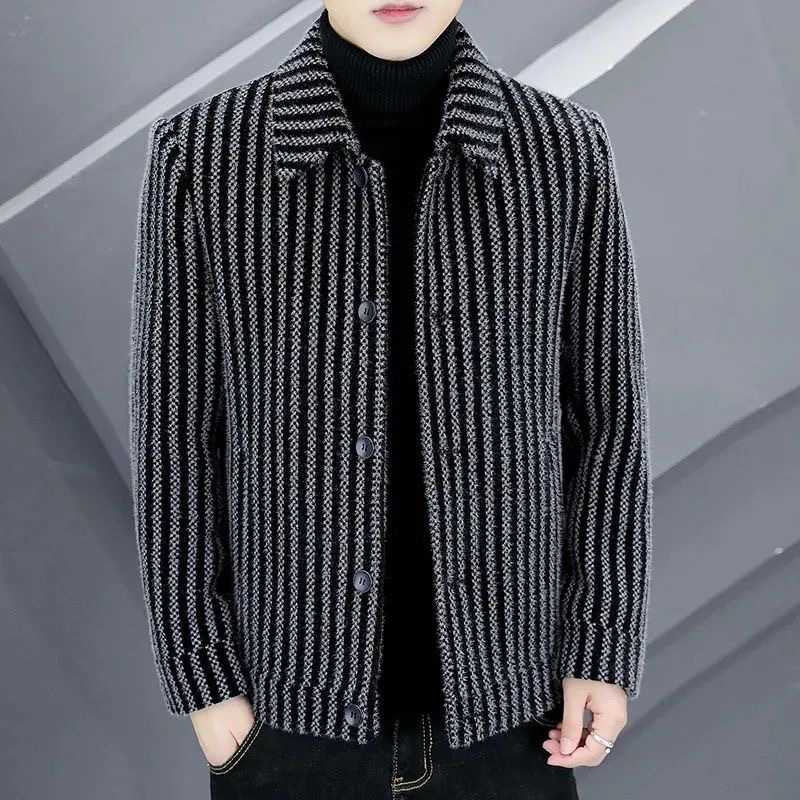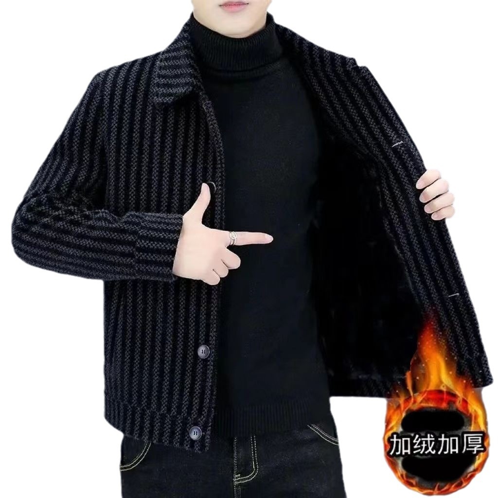 Осенне-зимнее Новое мужское пальто, Высококачественное универсальное шерстяное пальто в толстую полоску на флисовой подкладке, повседневная куртка с лацканами, теплая