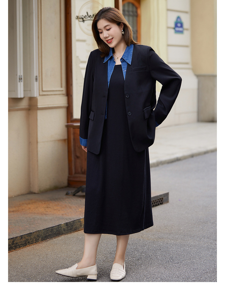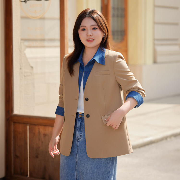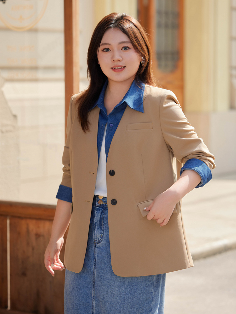 Тонкое шоу 2023 Осень Новая женская одежда больших размеров, пухлая девушка, модный уменьшающий возраст пригородный костюм из двух частей в западном стиле с вышивкой