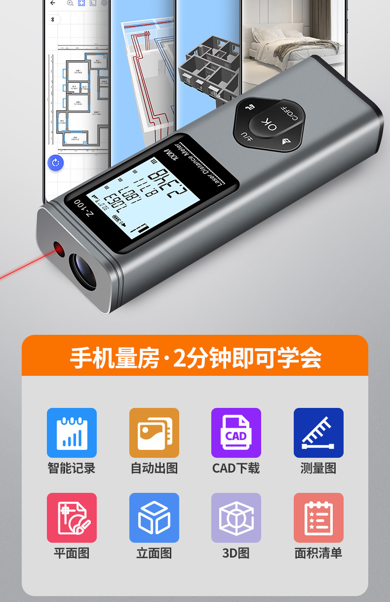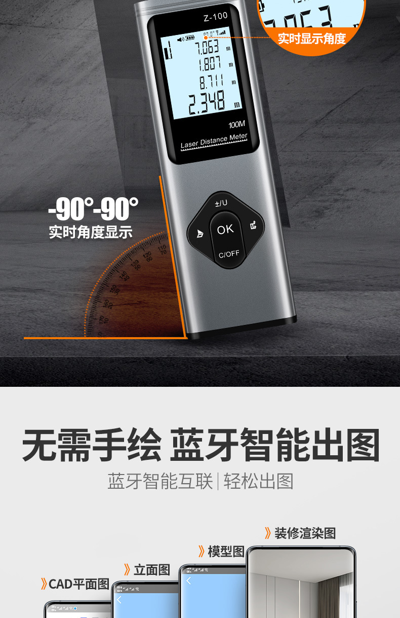 Оптовая продажа Zhenbing инфракрасный дальномер Bluetooth CAD номер измерительный прибор три в одном лазерная линейка цифровая линейка настройка бренда