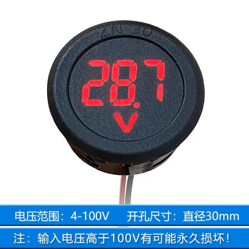 Светодиодный цифровой дисплей Круглый двухпроводный вольтметр DC 4-100V DC цифровой вольтовой головки монитор обратной защиты