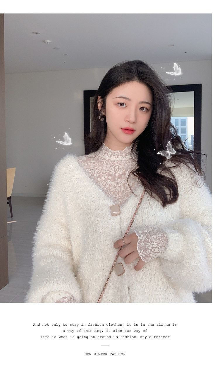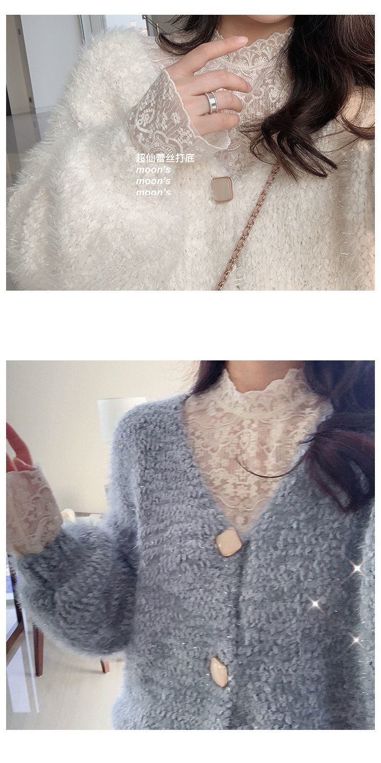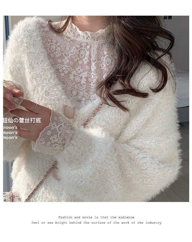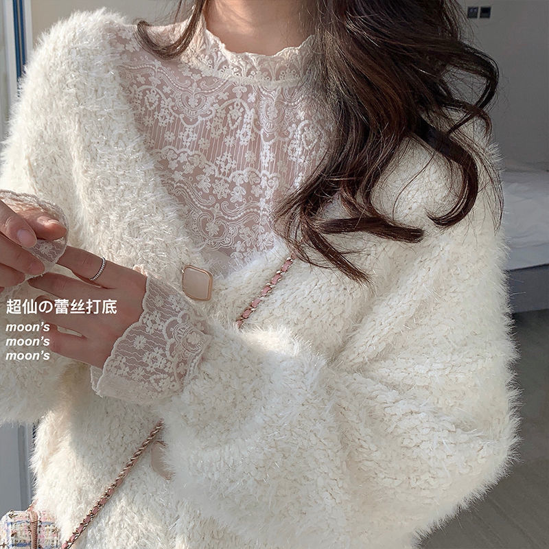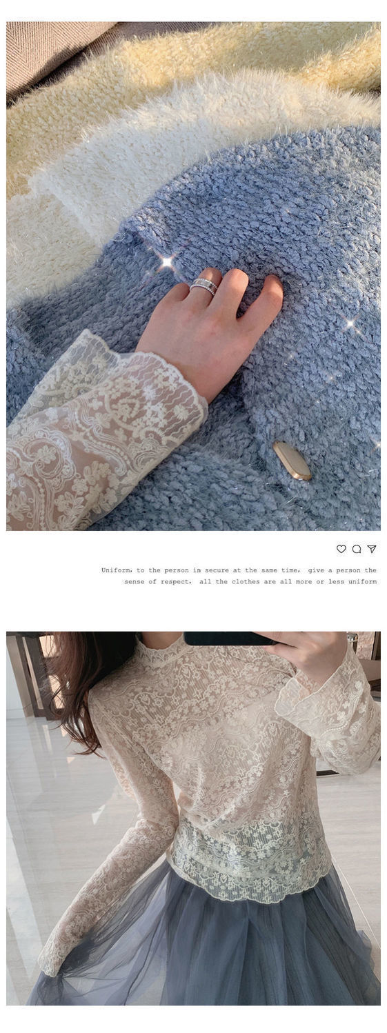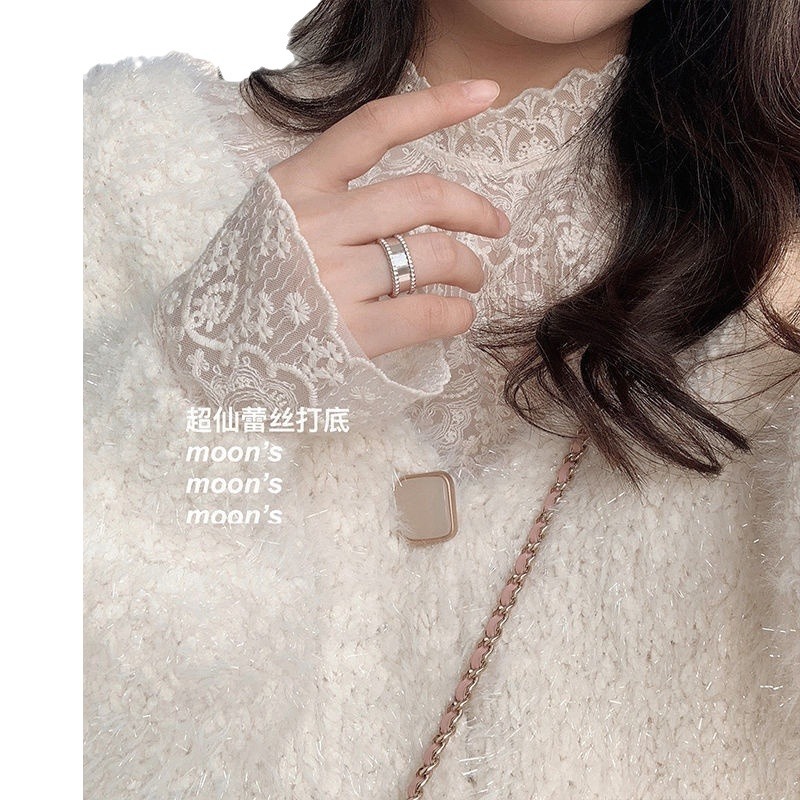 Супер Фея кружевная рубашка для женщин 2023 весна и осень новая Универсальная Водолазка с длинным рукавом и сетчатым низом Топ