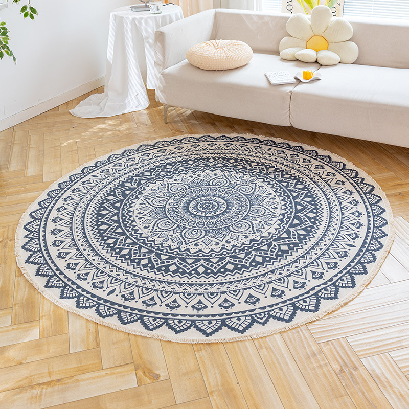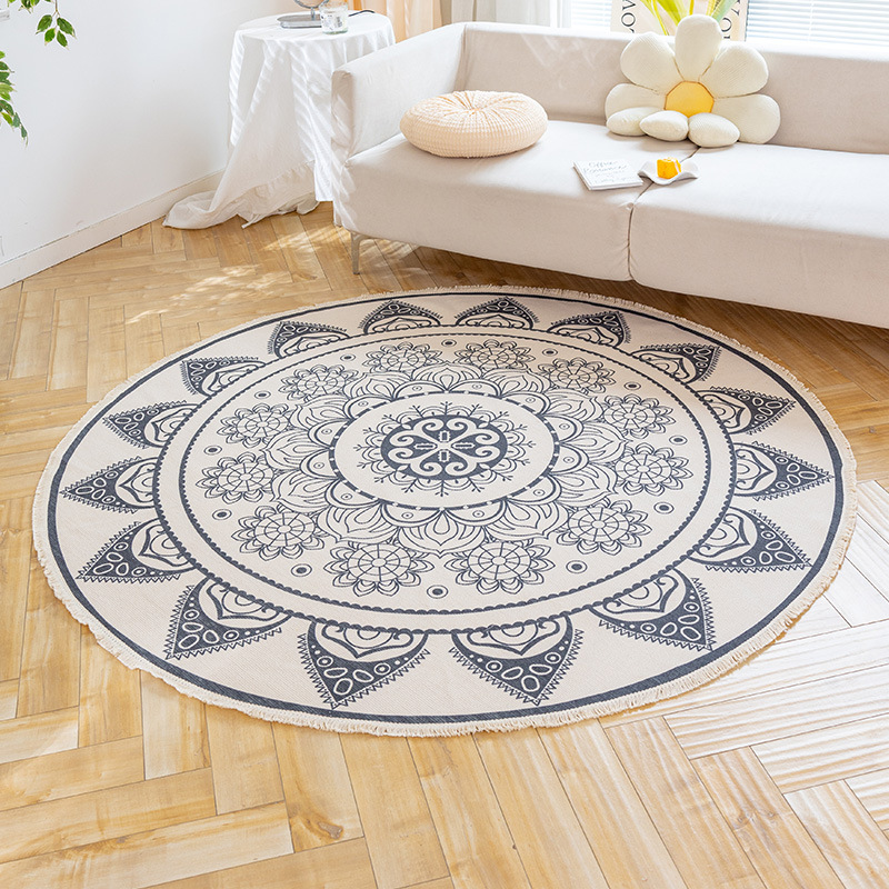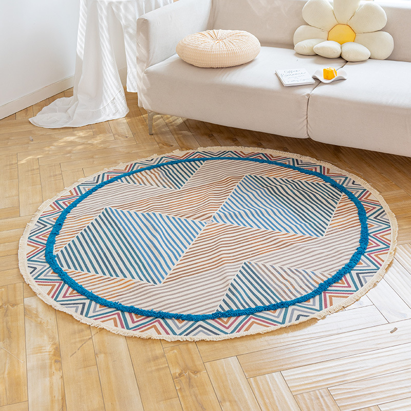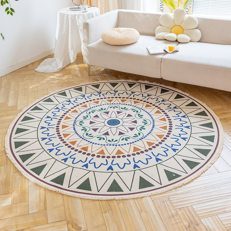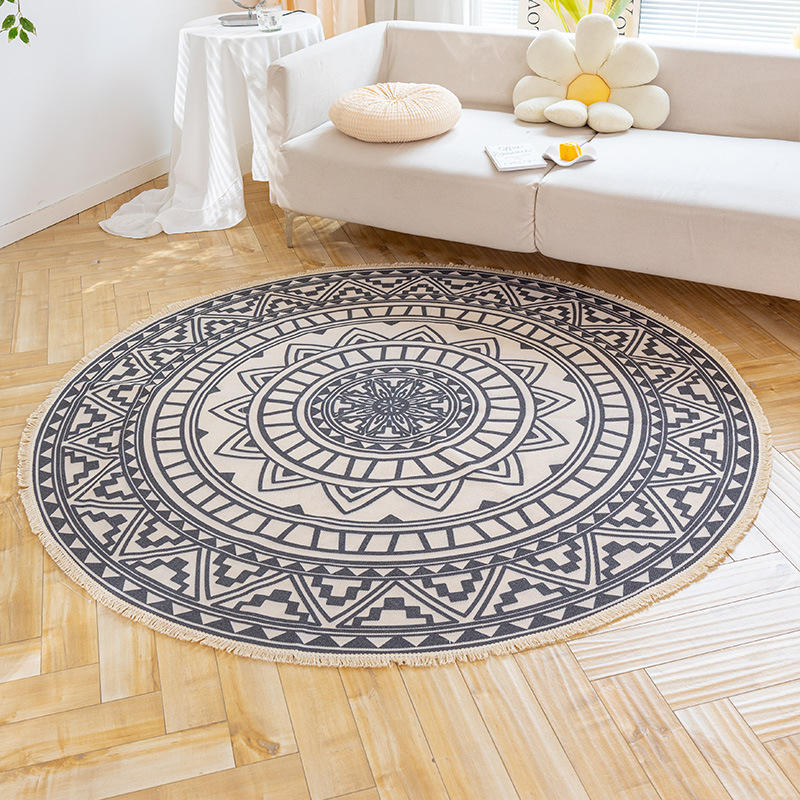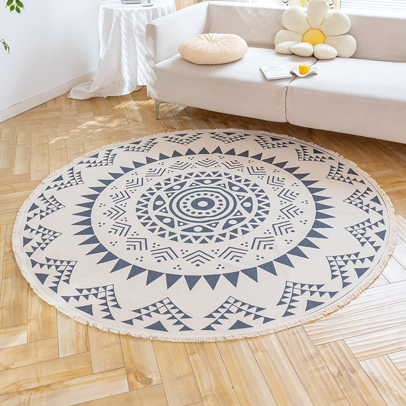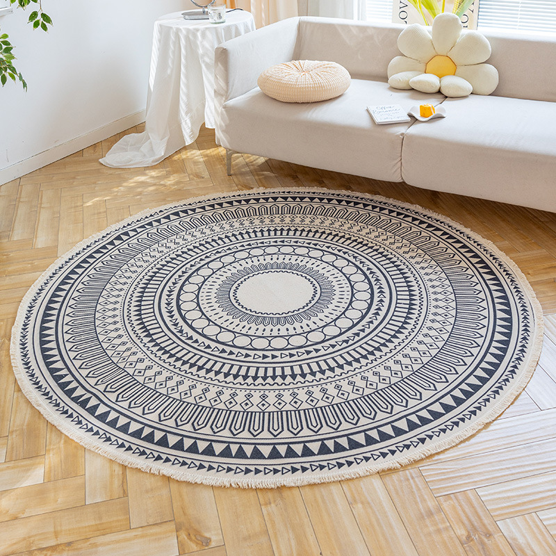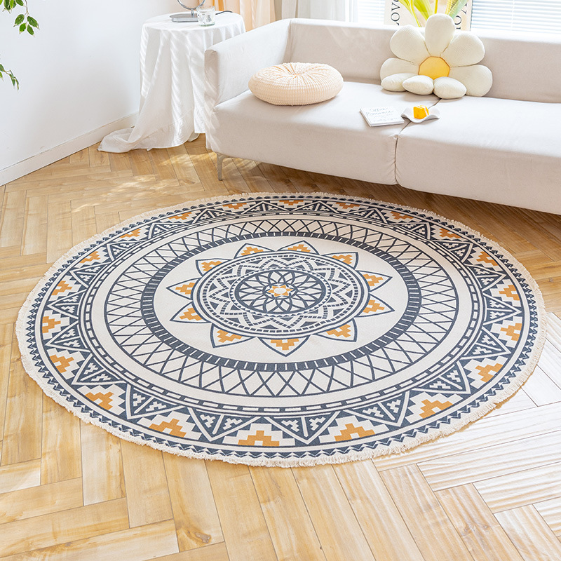 Коврик из хлопка и льна в скандинавском этническом стиле, легкий роскошный напольный коврик в стиле ретро простой гобелен ручной работы, круглое прикроватное одеяло для спальни