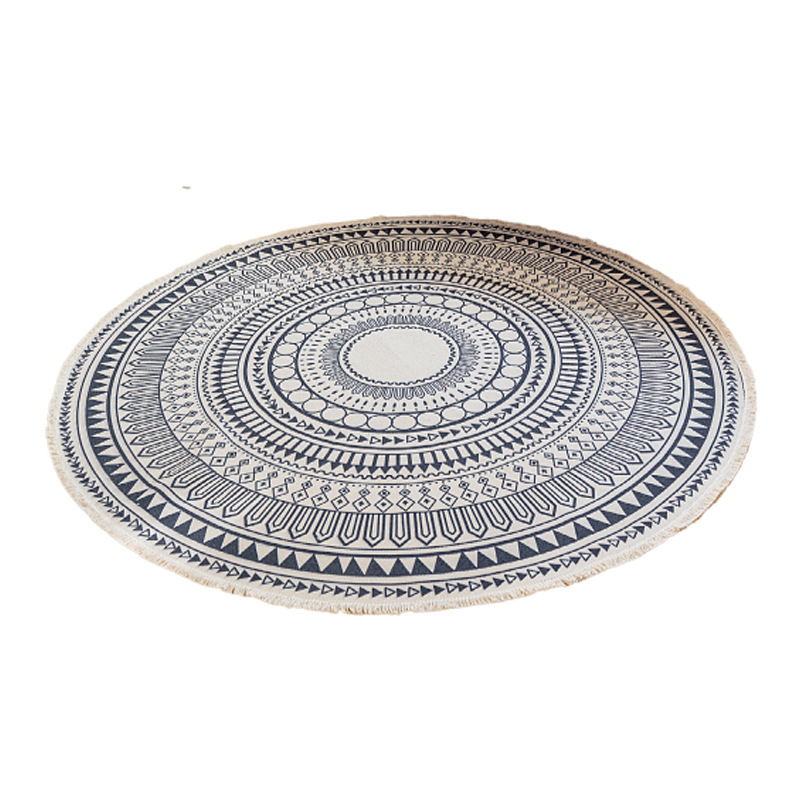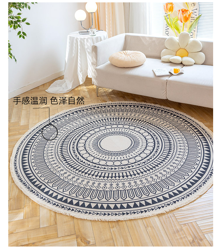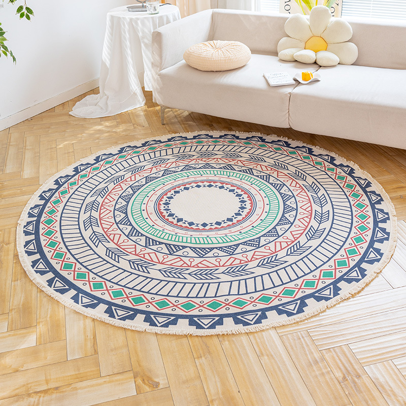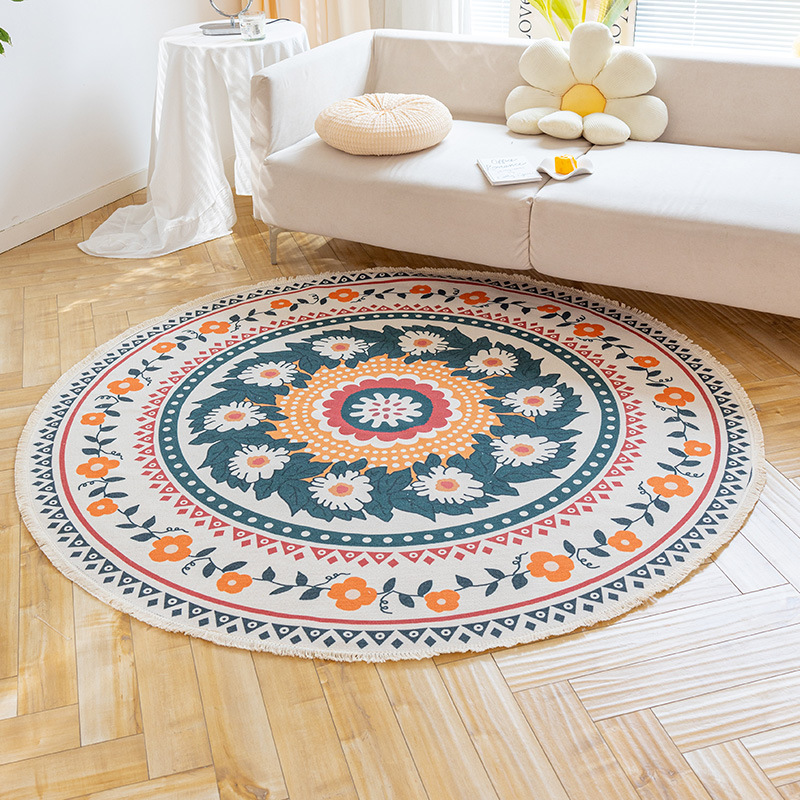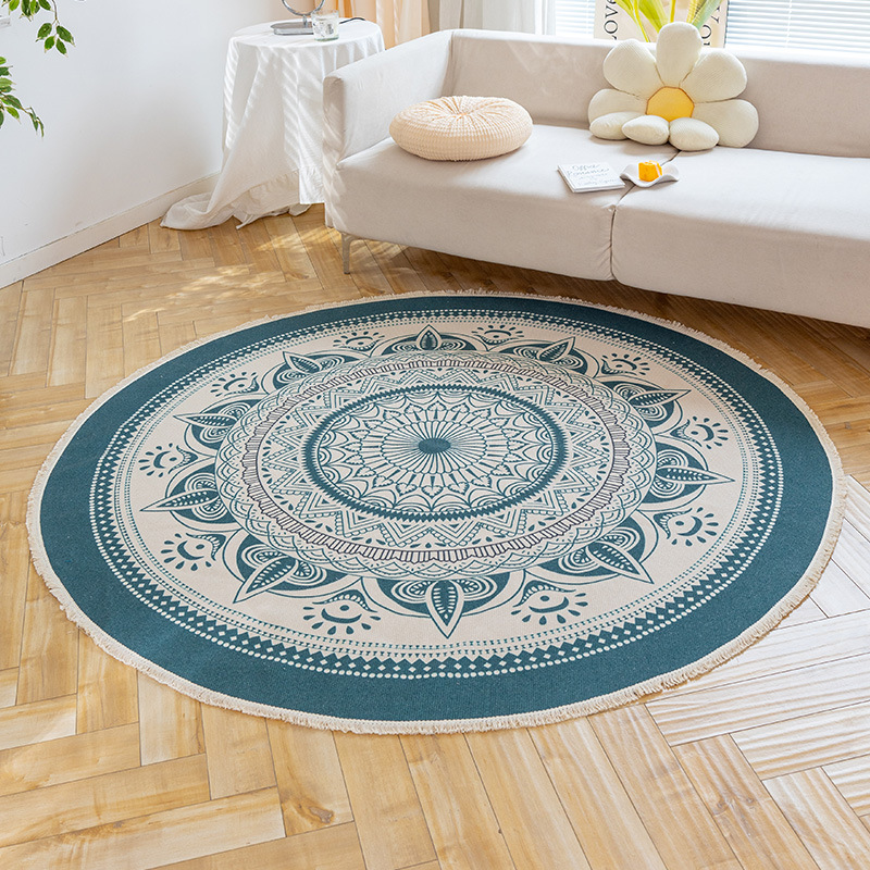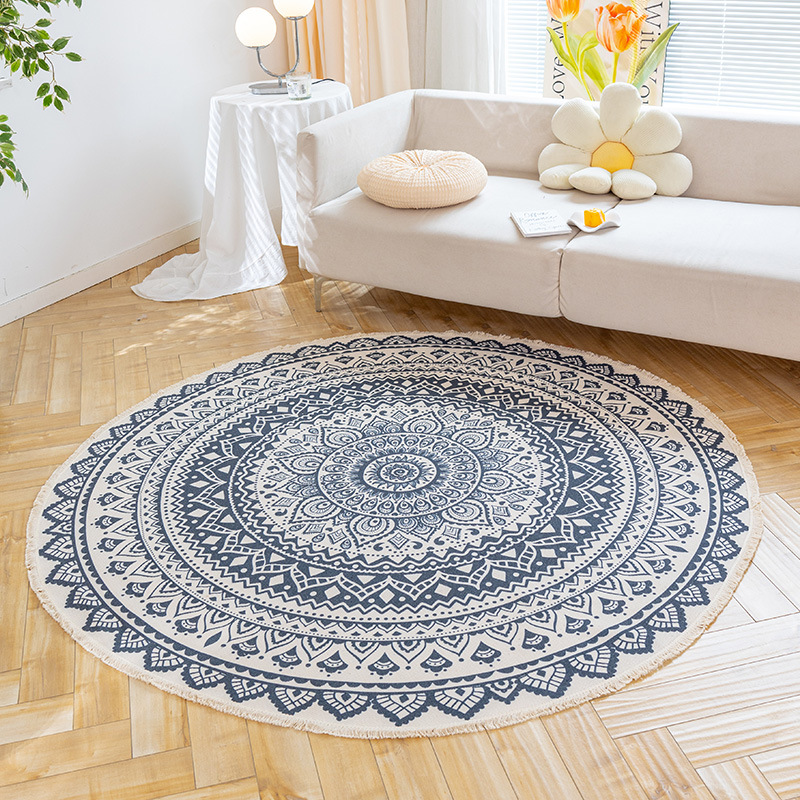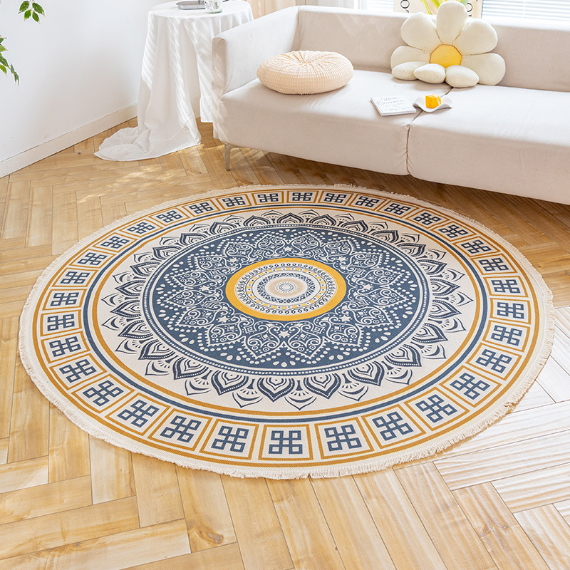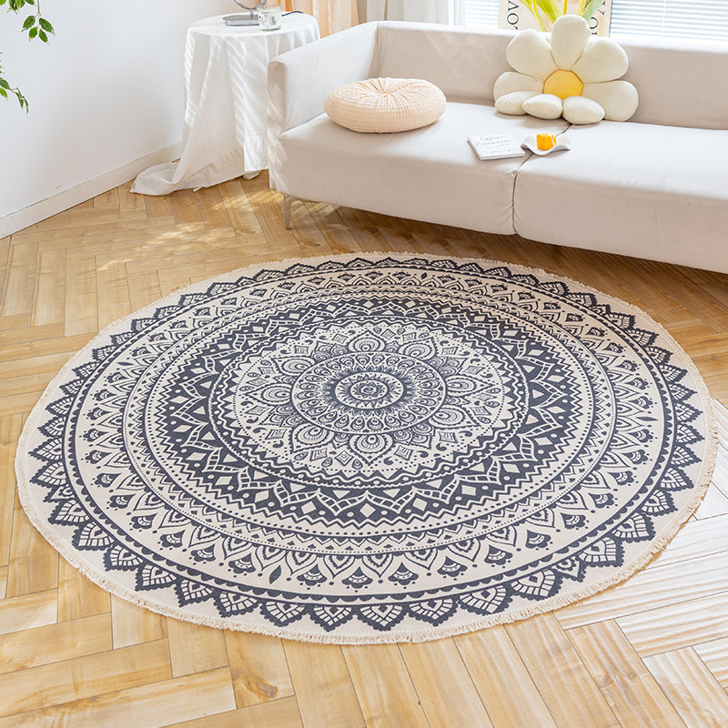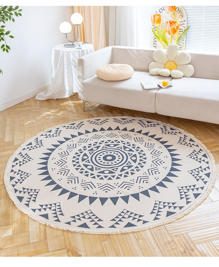Коврик из хлопка и льна в скандинавском этническом стиле, легкий роскошный напольный коврик в стиле ретро простой гобелен ручной работы, круглое прикроватное одеяло для спальни