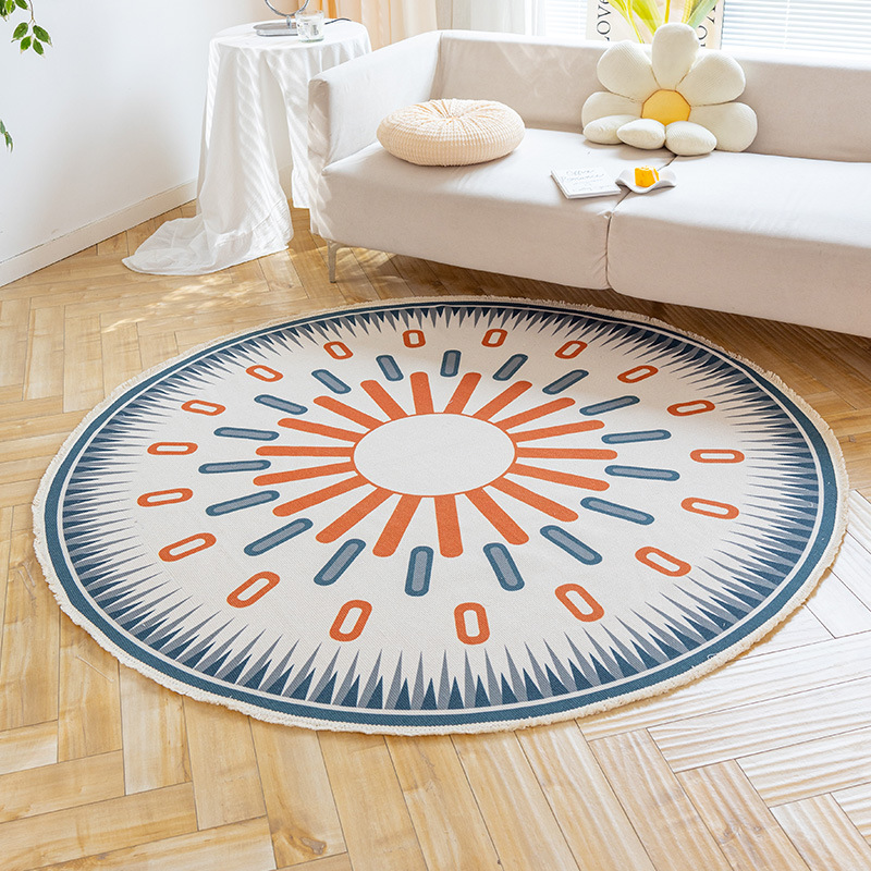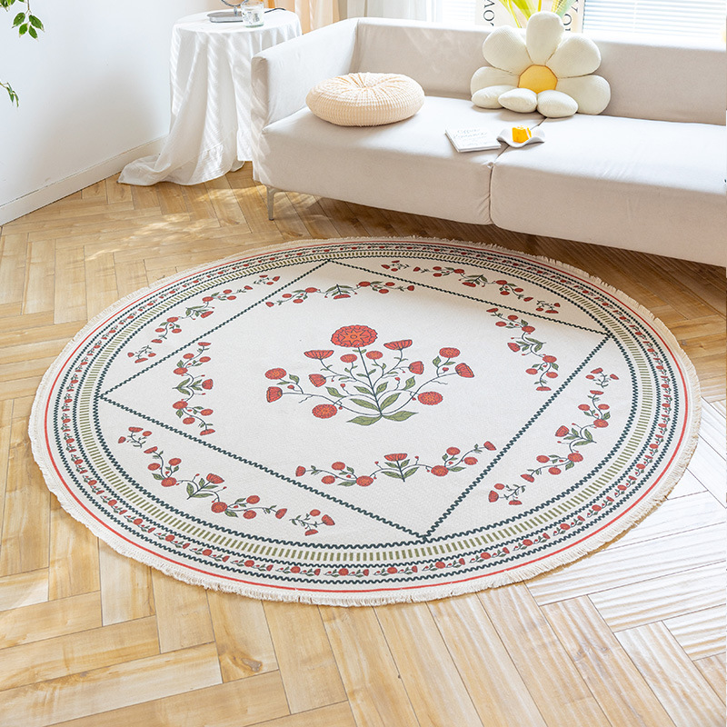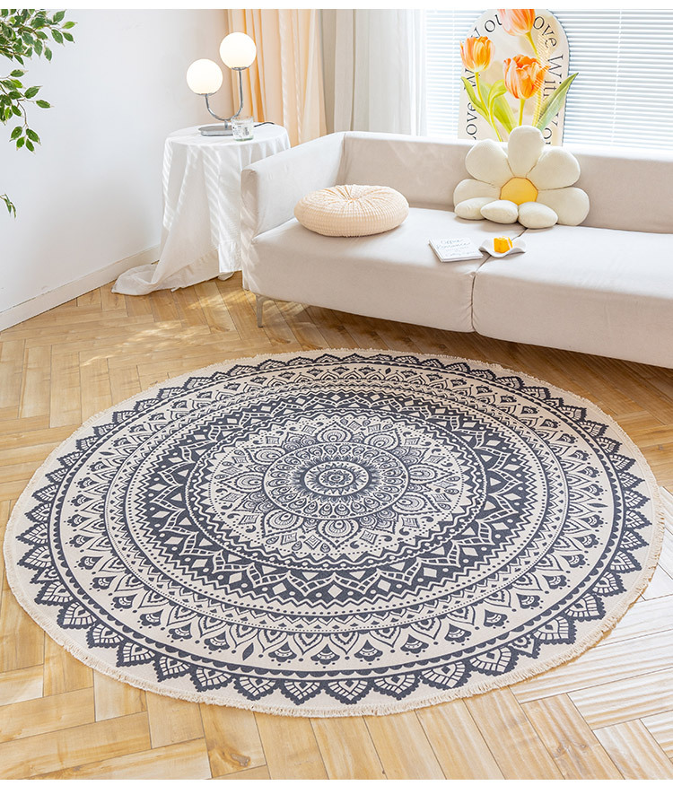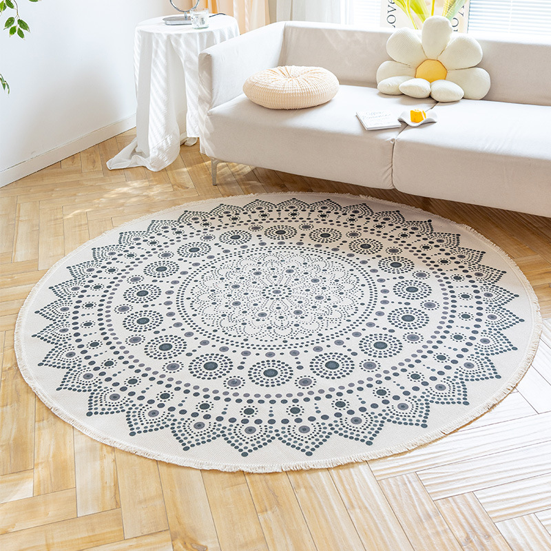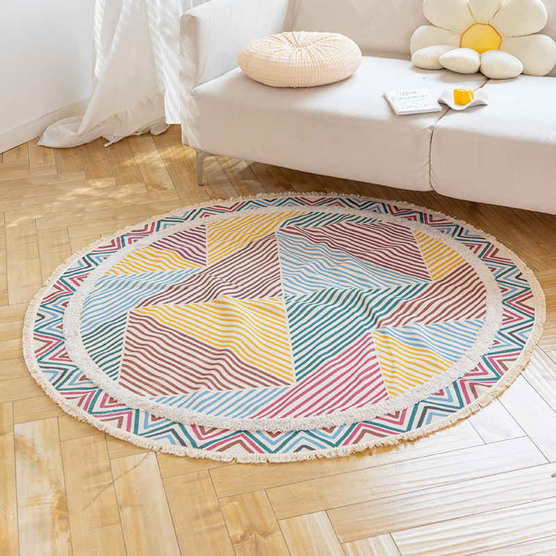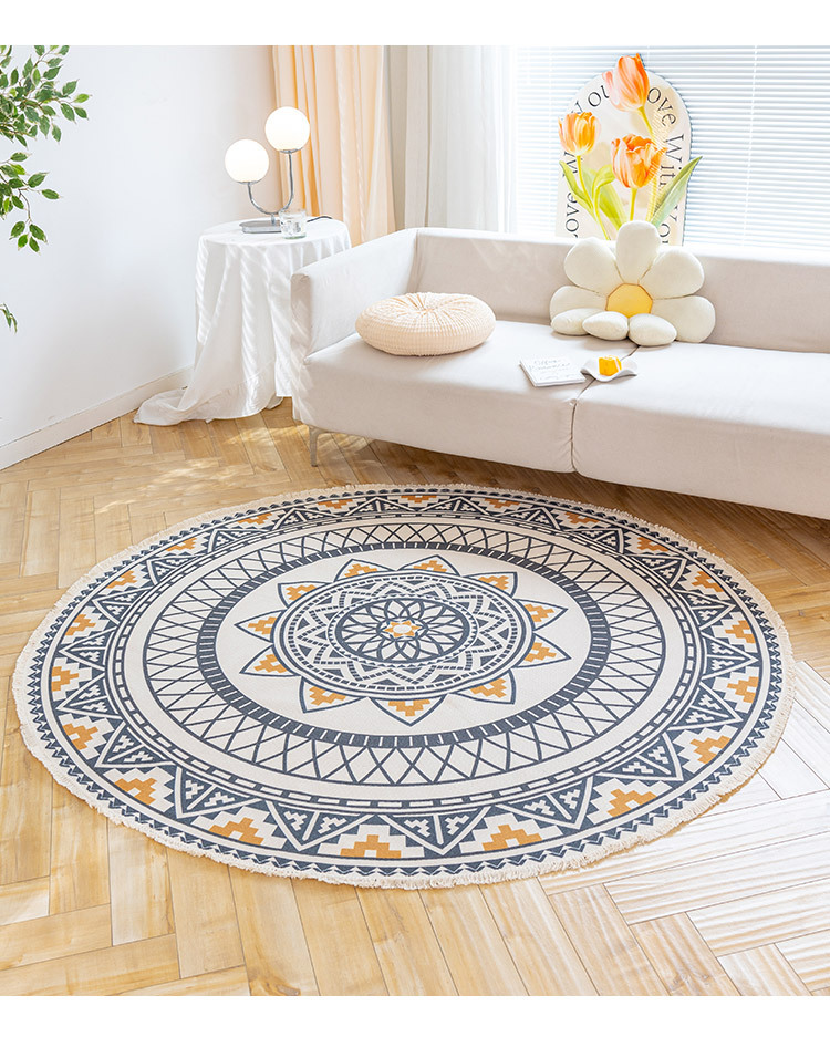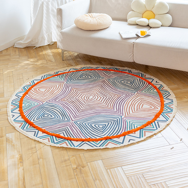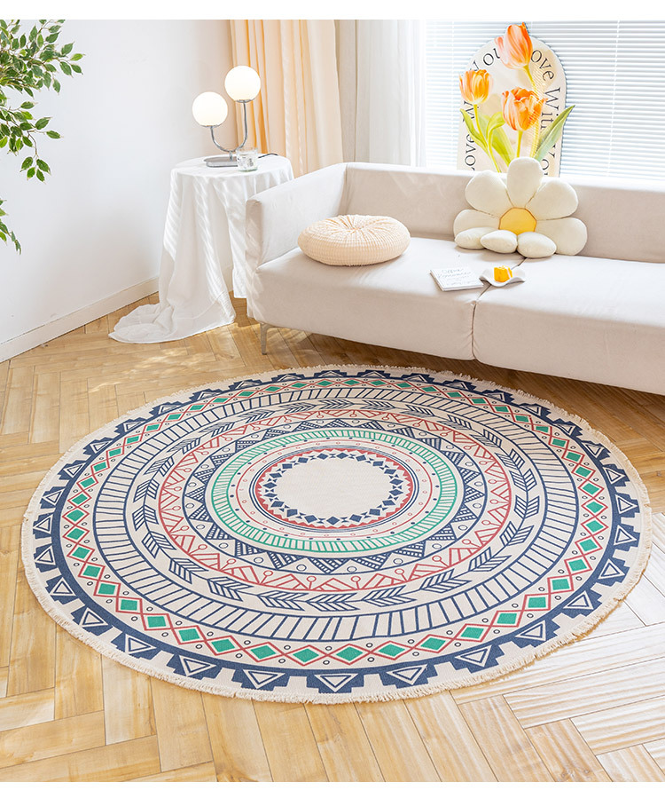 Коврик из хлопка и льна в скандинавском этническом стиле, легкий роскошный напольный коврик в стиле ретро простой гобелен ручной работы, круглое прикроватное одеяло для спальни