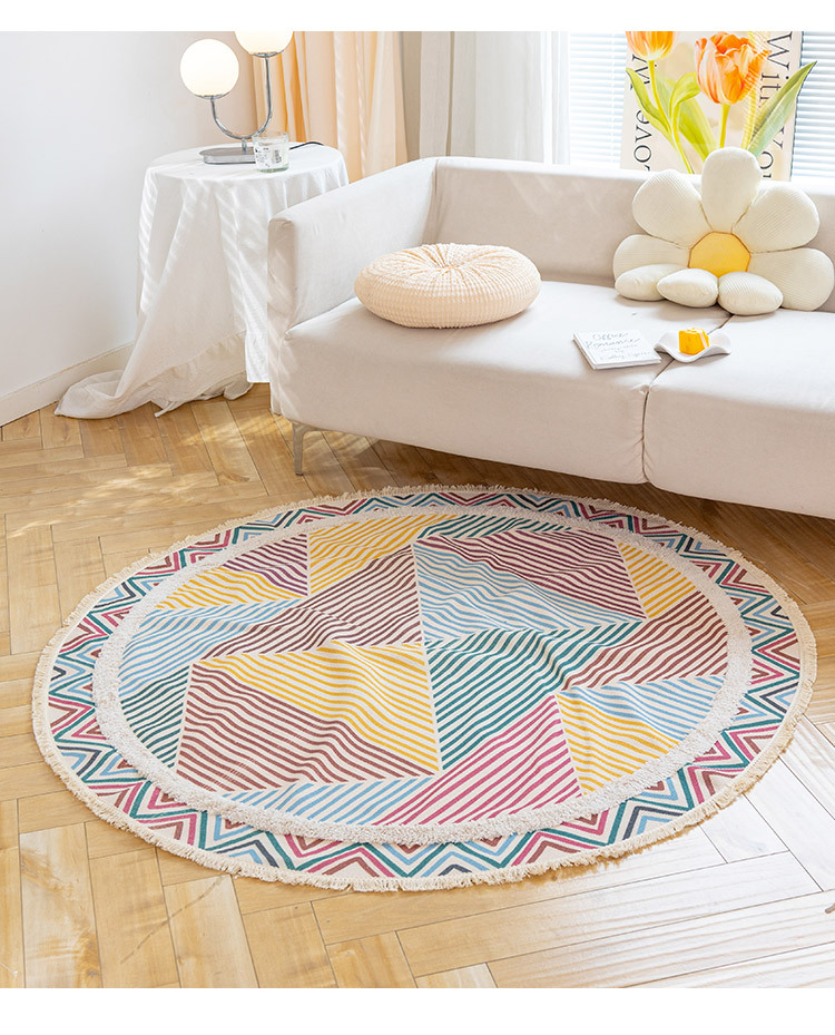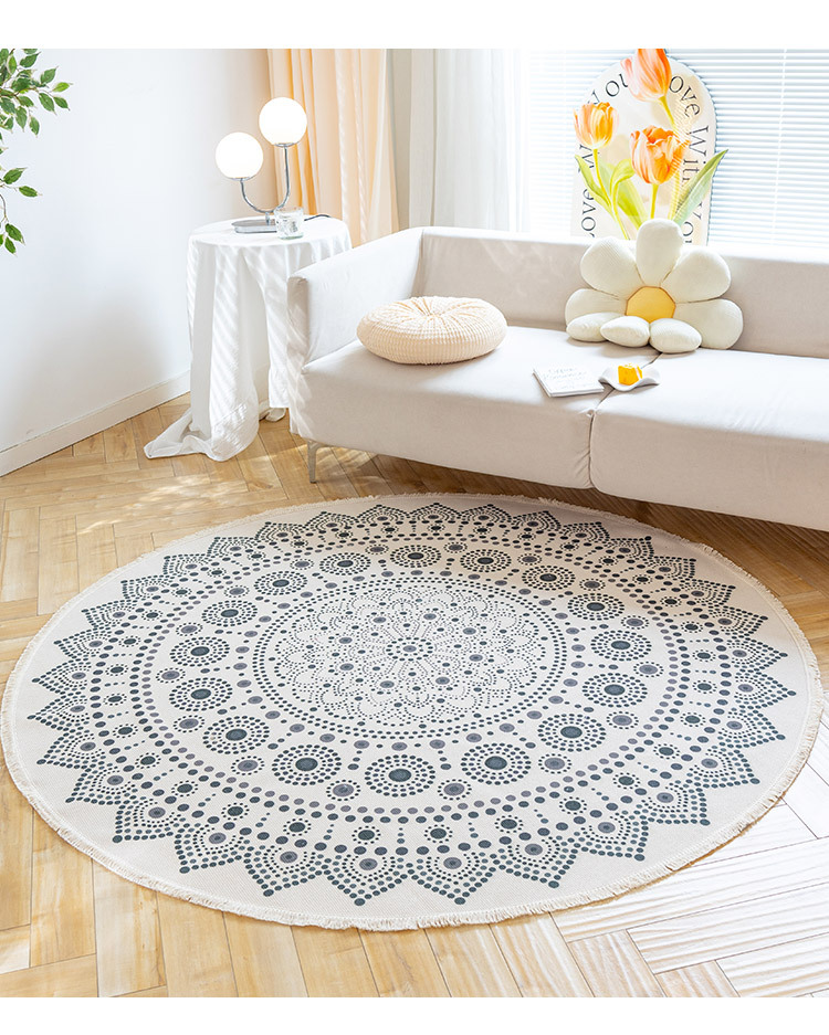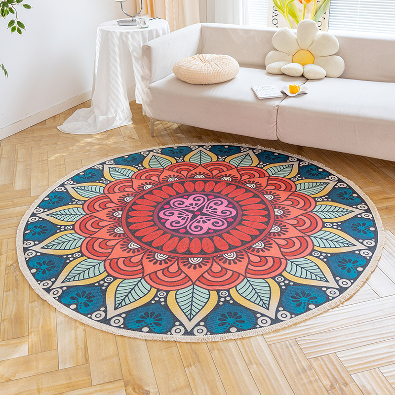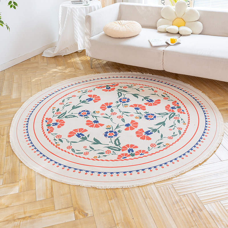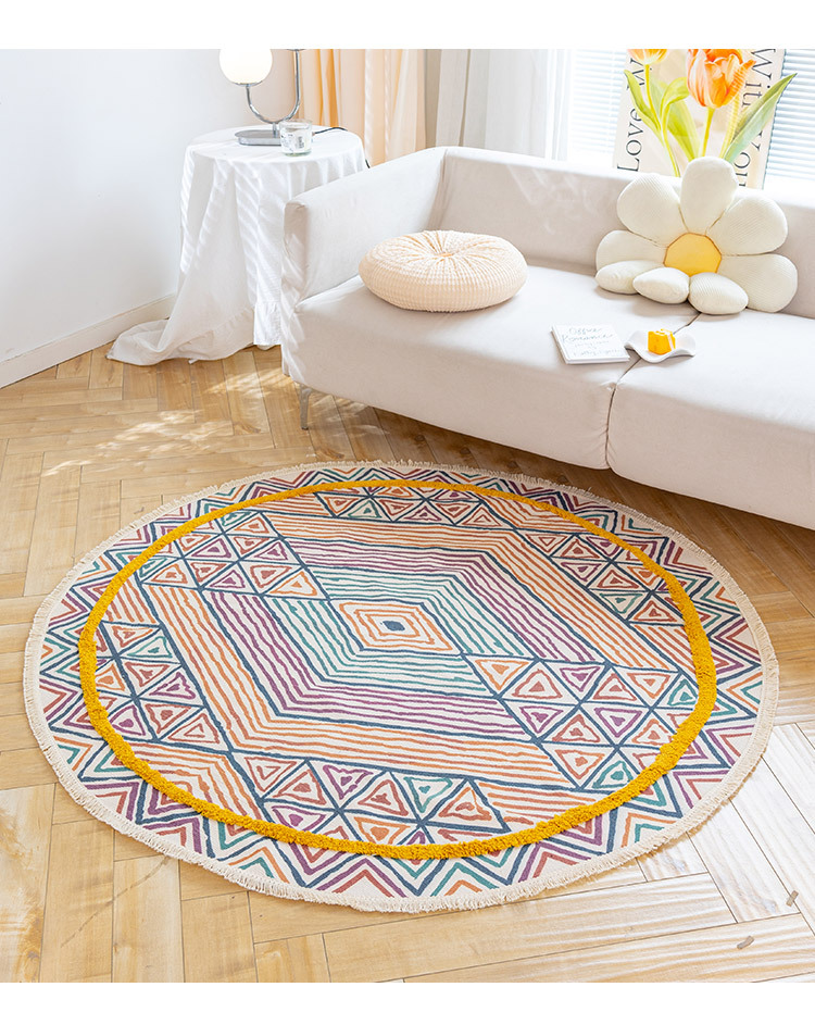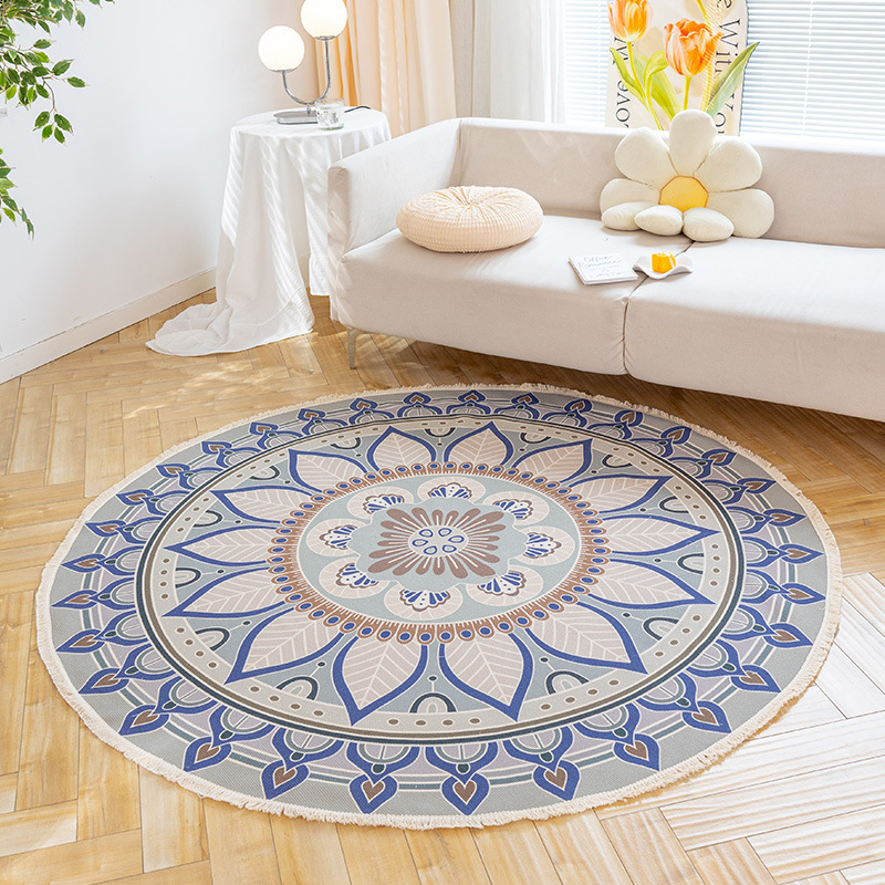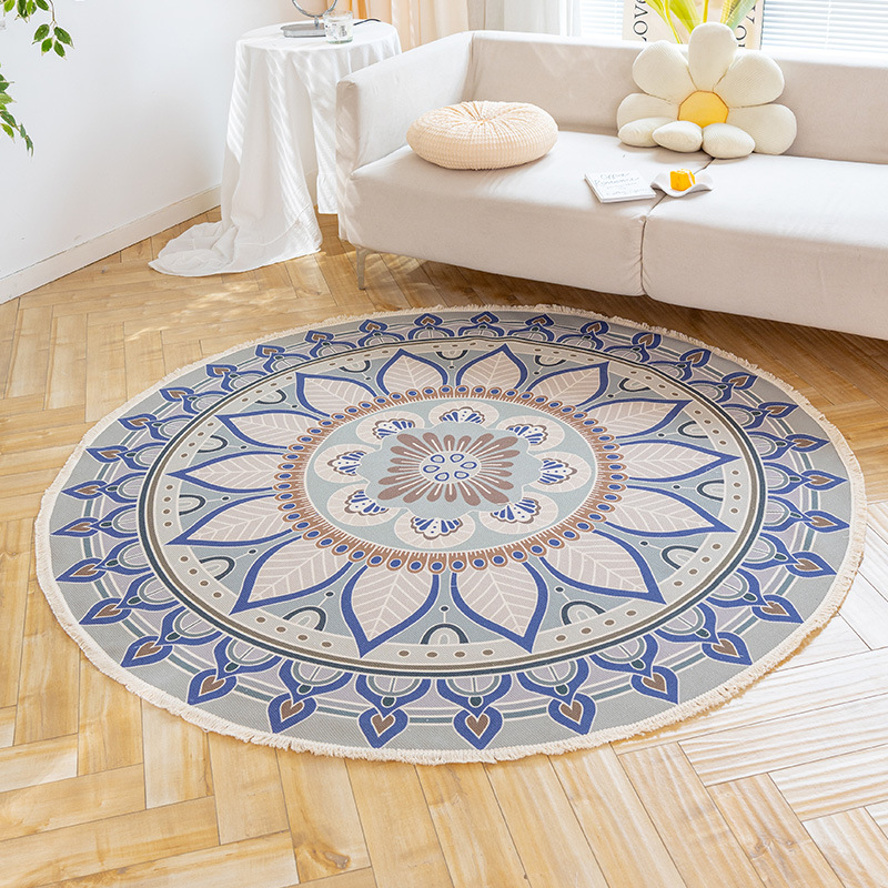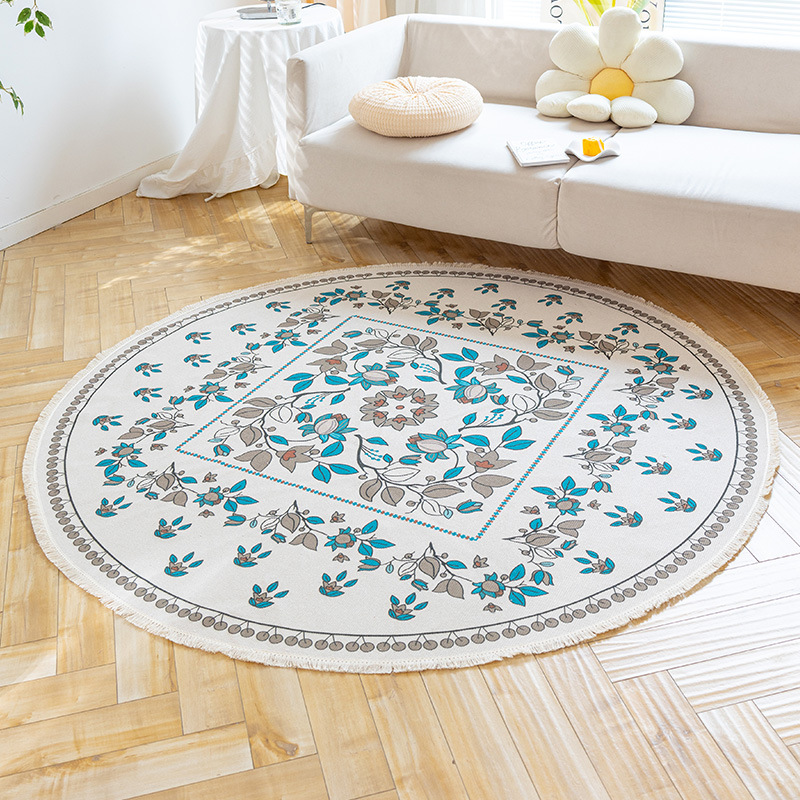 Коврик из хлопка и льна в скандинавском этническом стиле, легкий роскошный напольный коврик в стиле ретро простой гобелен ручной работы, круглое прикроватное одеяло для спальни