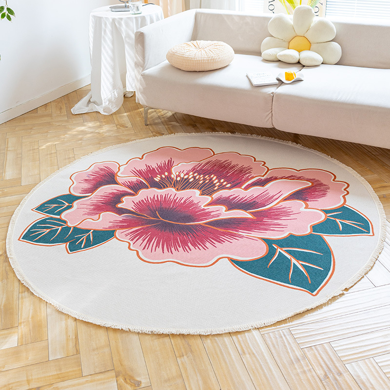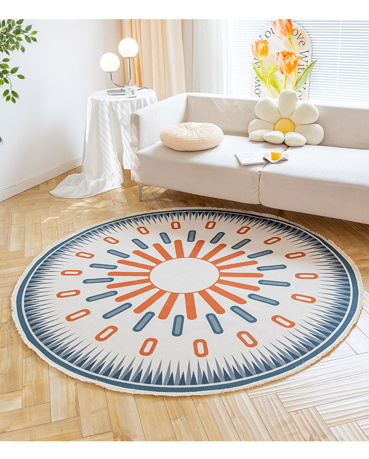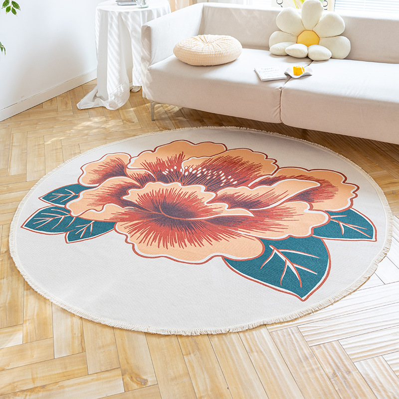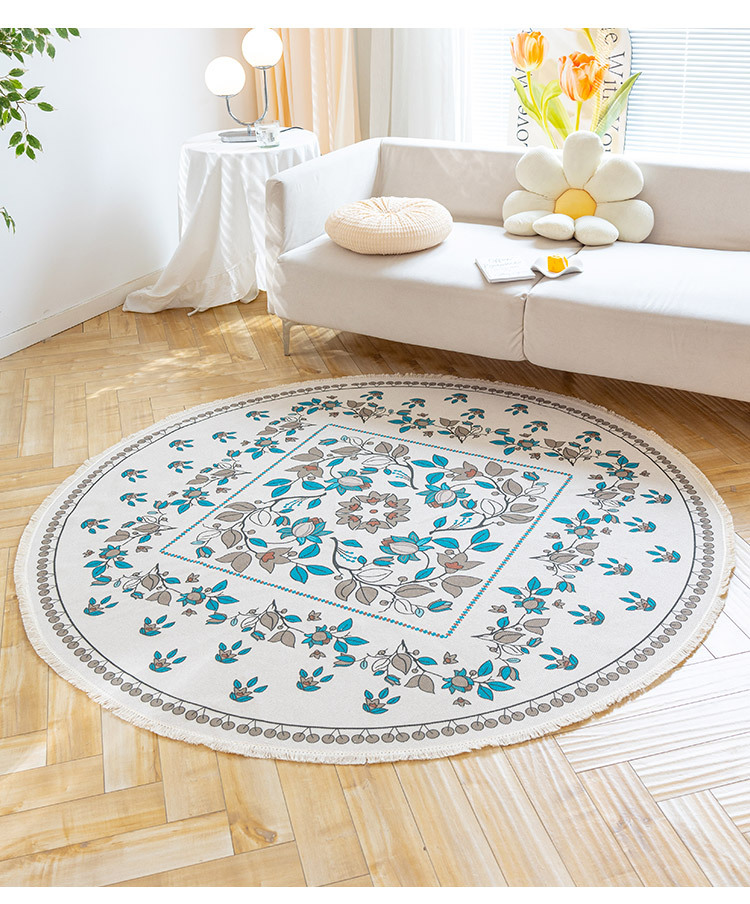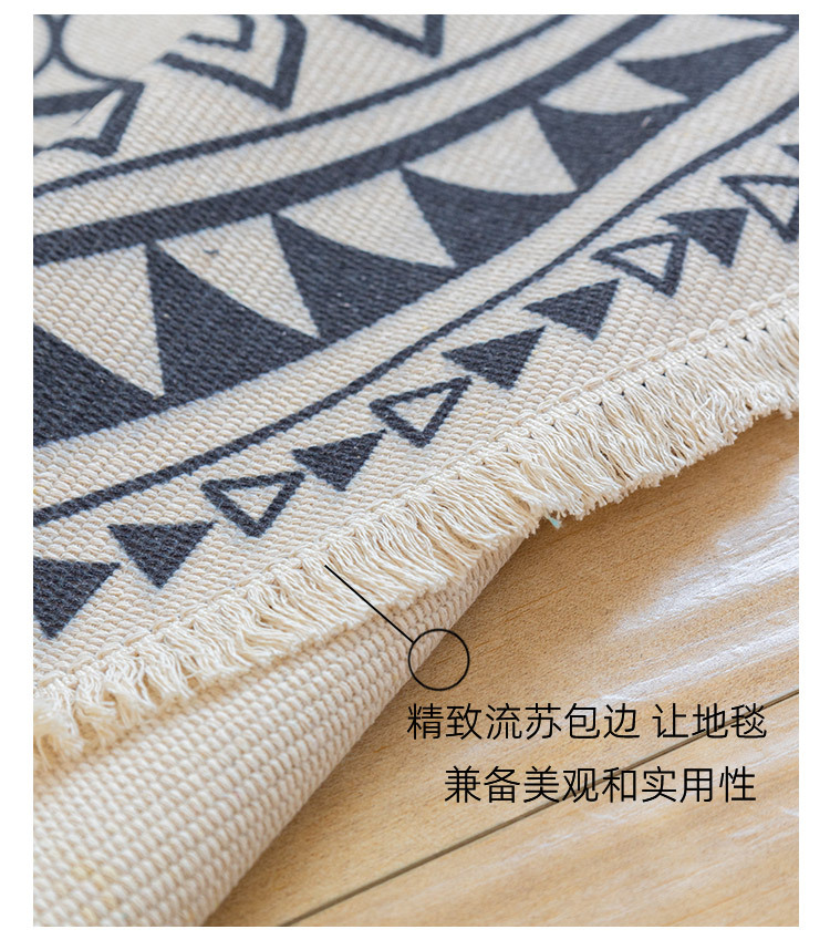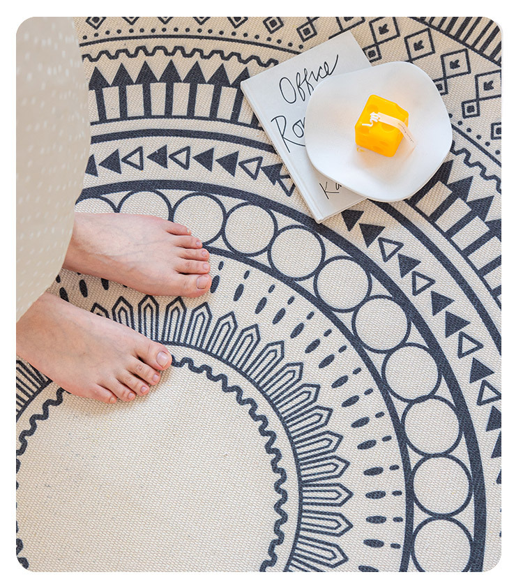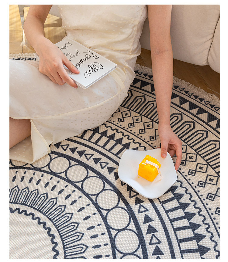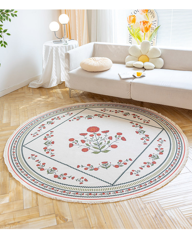 Коврик из хлопка и льна в скандинавском этническом стиле, легкий роскошный напольный коврик в стиле ретро простой гобелен ручной работы, круглое прикроватное одеяло для спальни