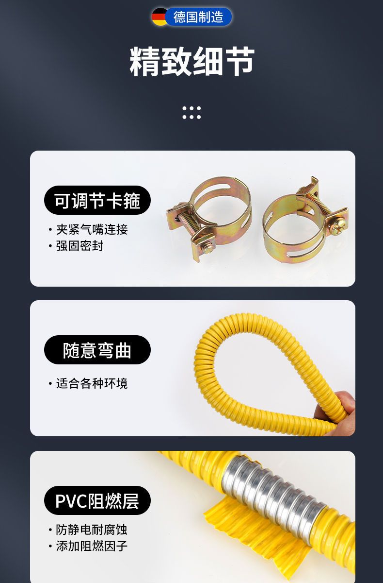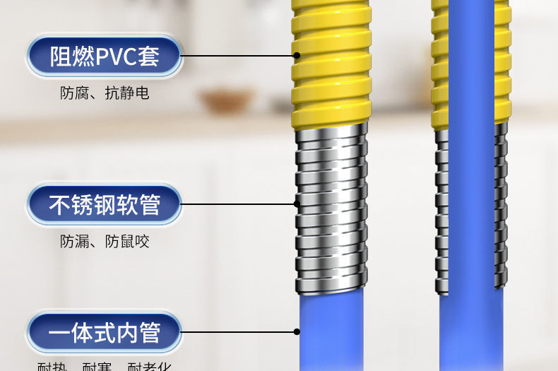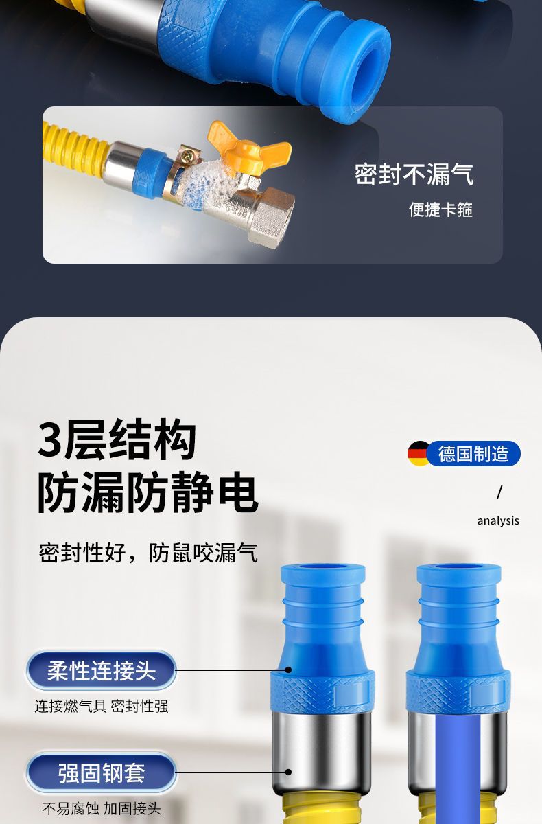 Бытовая бронированная газовая труба, утолщенная взрывозащищенная труба, труба для природного газа, труба для сжиженного газа, металлический шланг для плиты