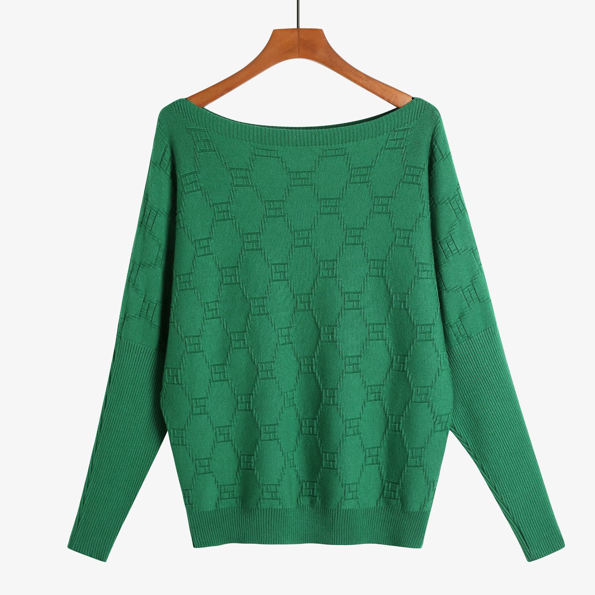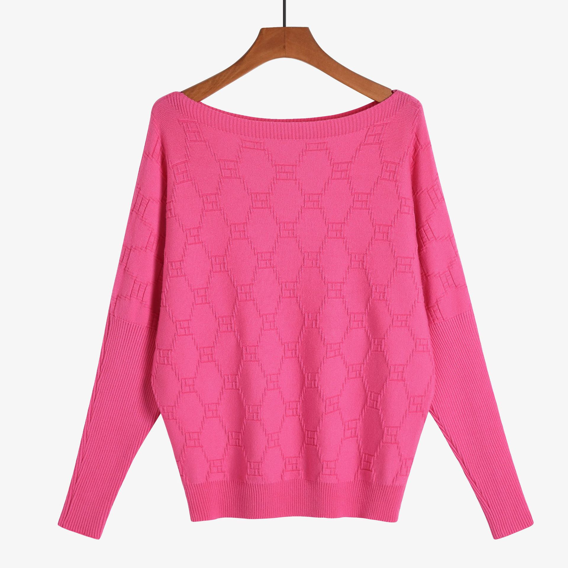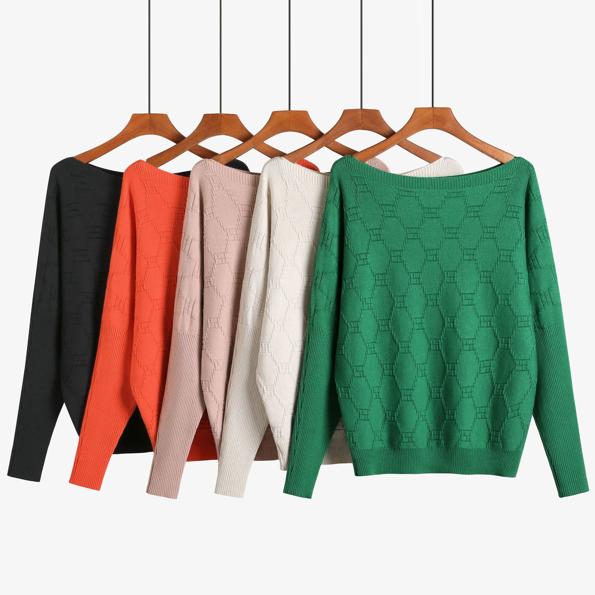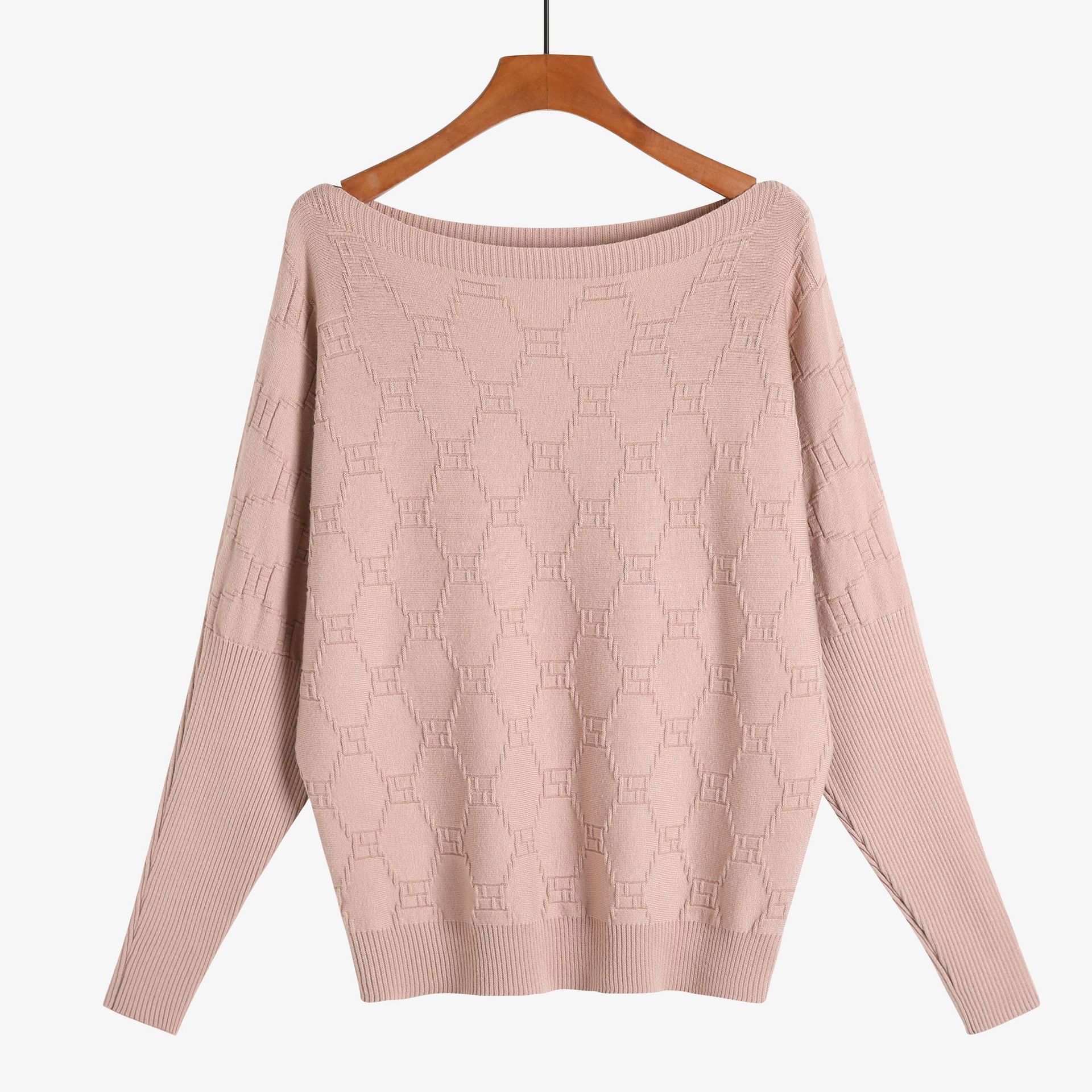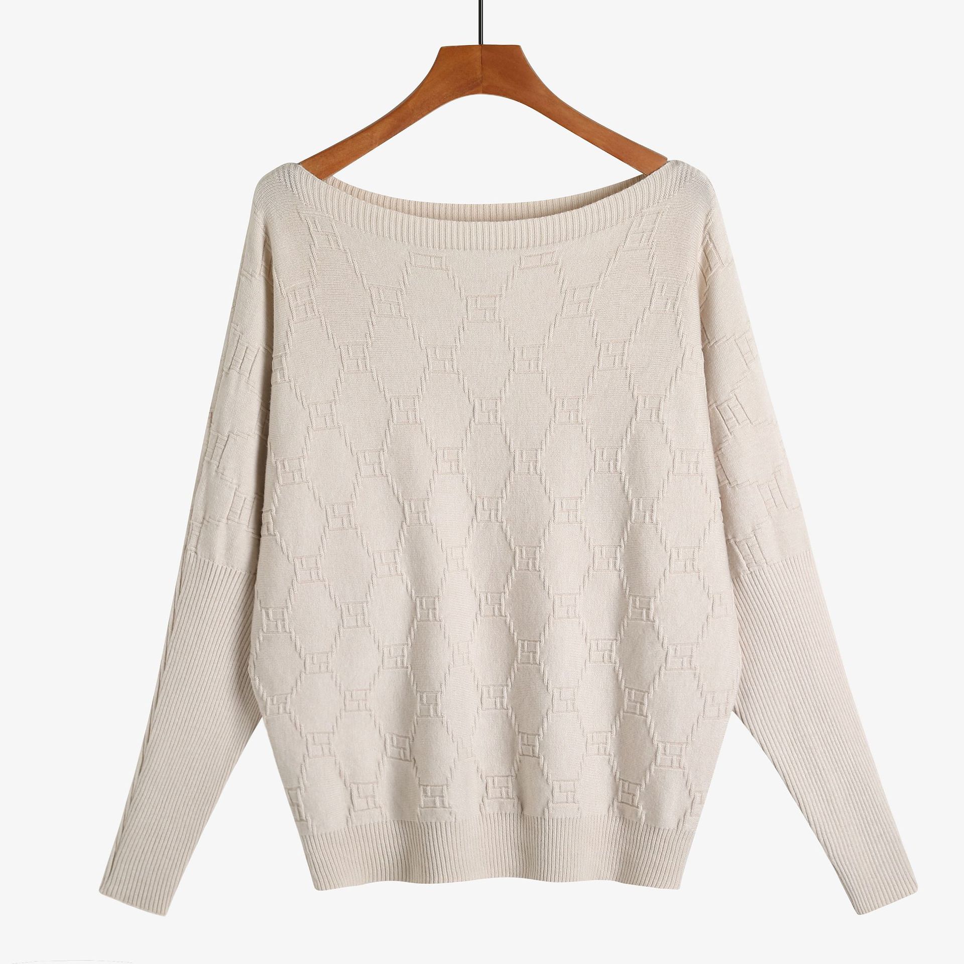 2023 Осенне-зимний жаккардовый свитер асимметричного вязания с рукавами «летучая мышь» без шеи, пуловер, эксклюзивный трансграничный