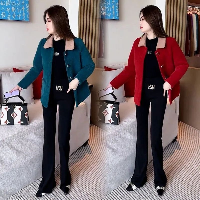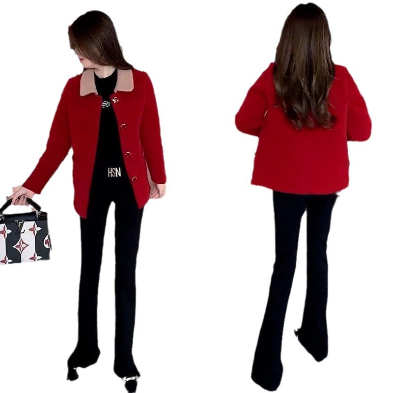 Утолщенное Женское пальто на флисовой подкладке для мамы и осени, Элитный короткий свитер от знаменитостей в Интернете, теплый топ для средних лет, для 40 лет, для осени и зимы, 50 лет