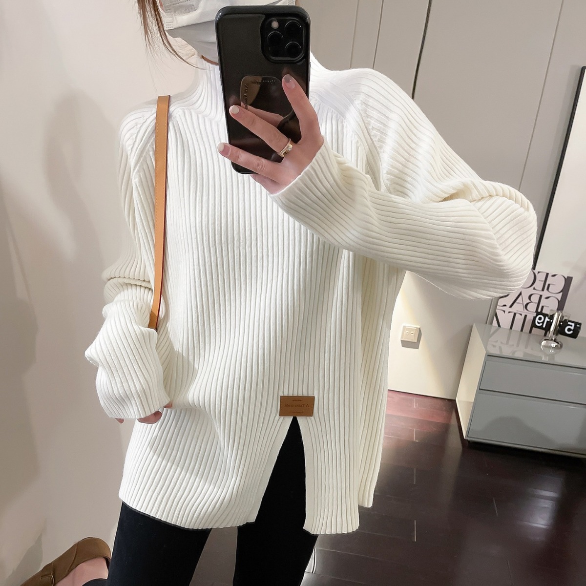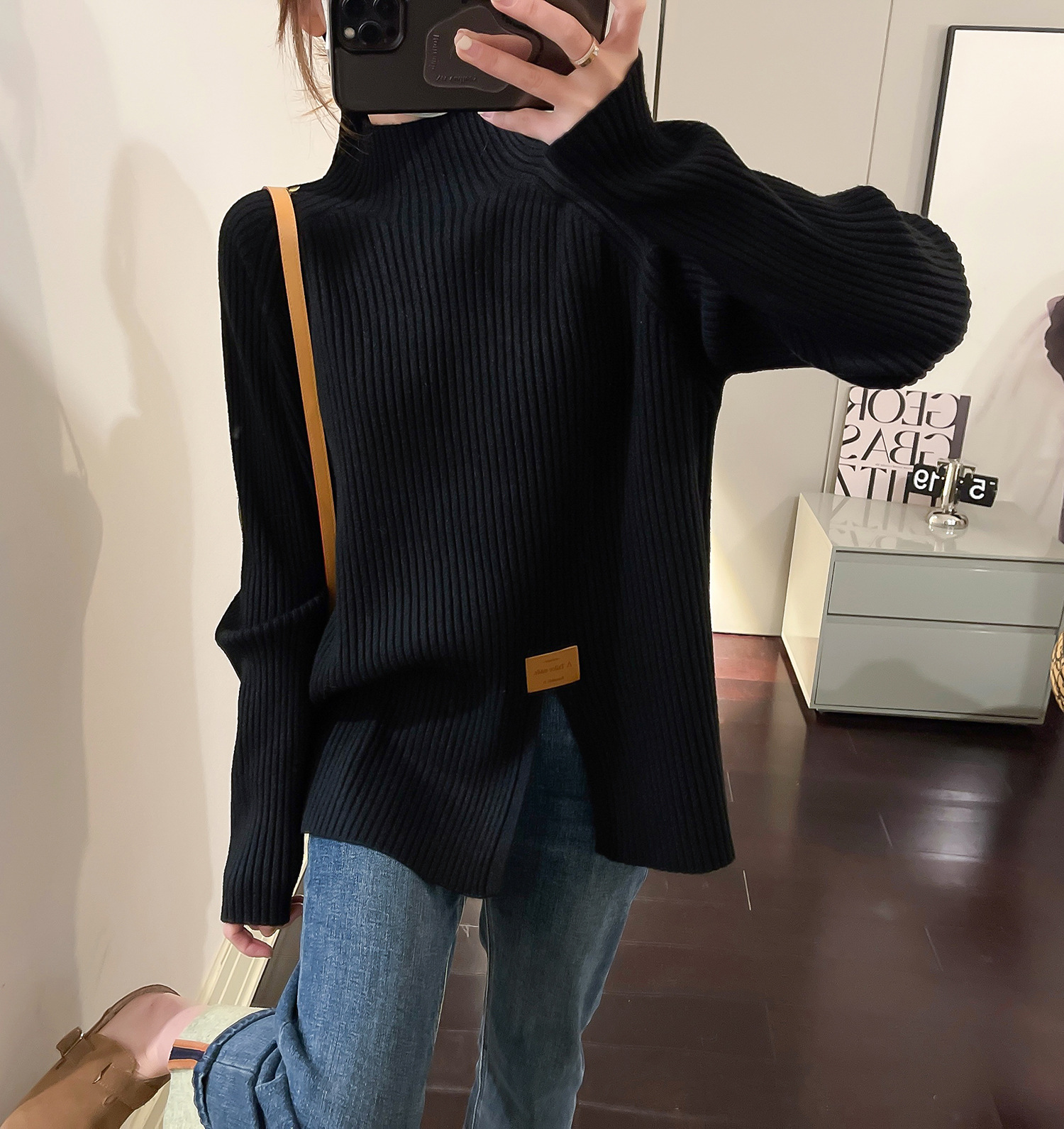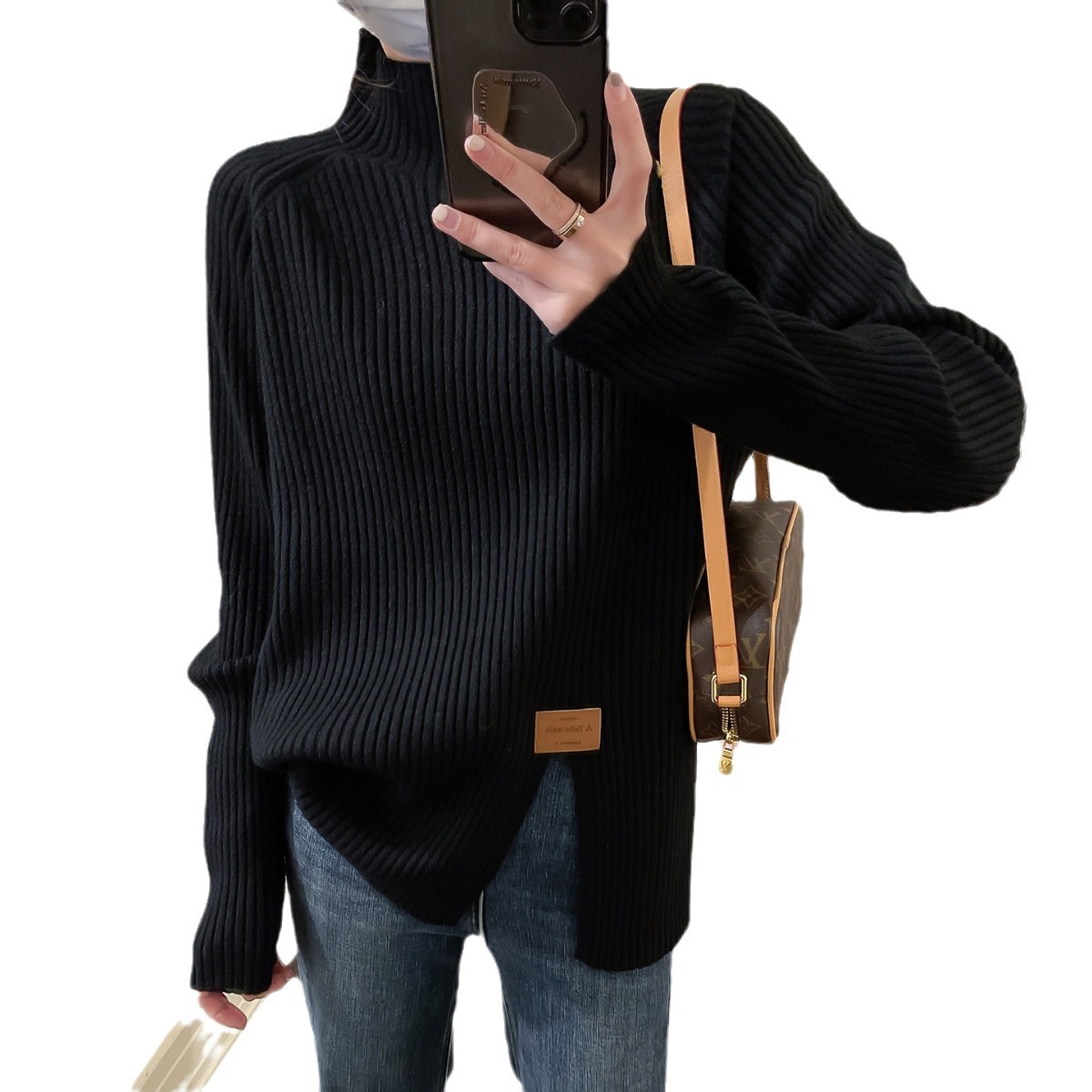 2024 осень и зима, мягкий восковой свитер с полугольфом, женский новый дизайн, универсальная трикотажная рубашка с разрезом, топ для верхней одежды