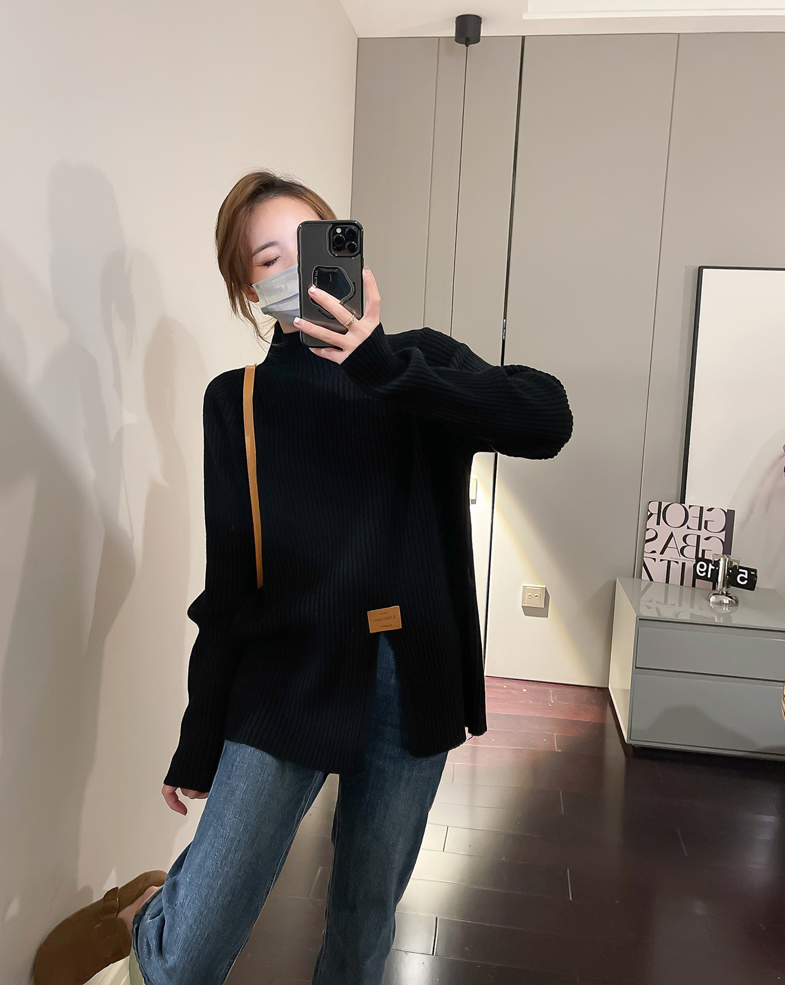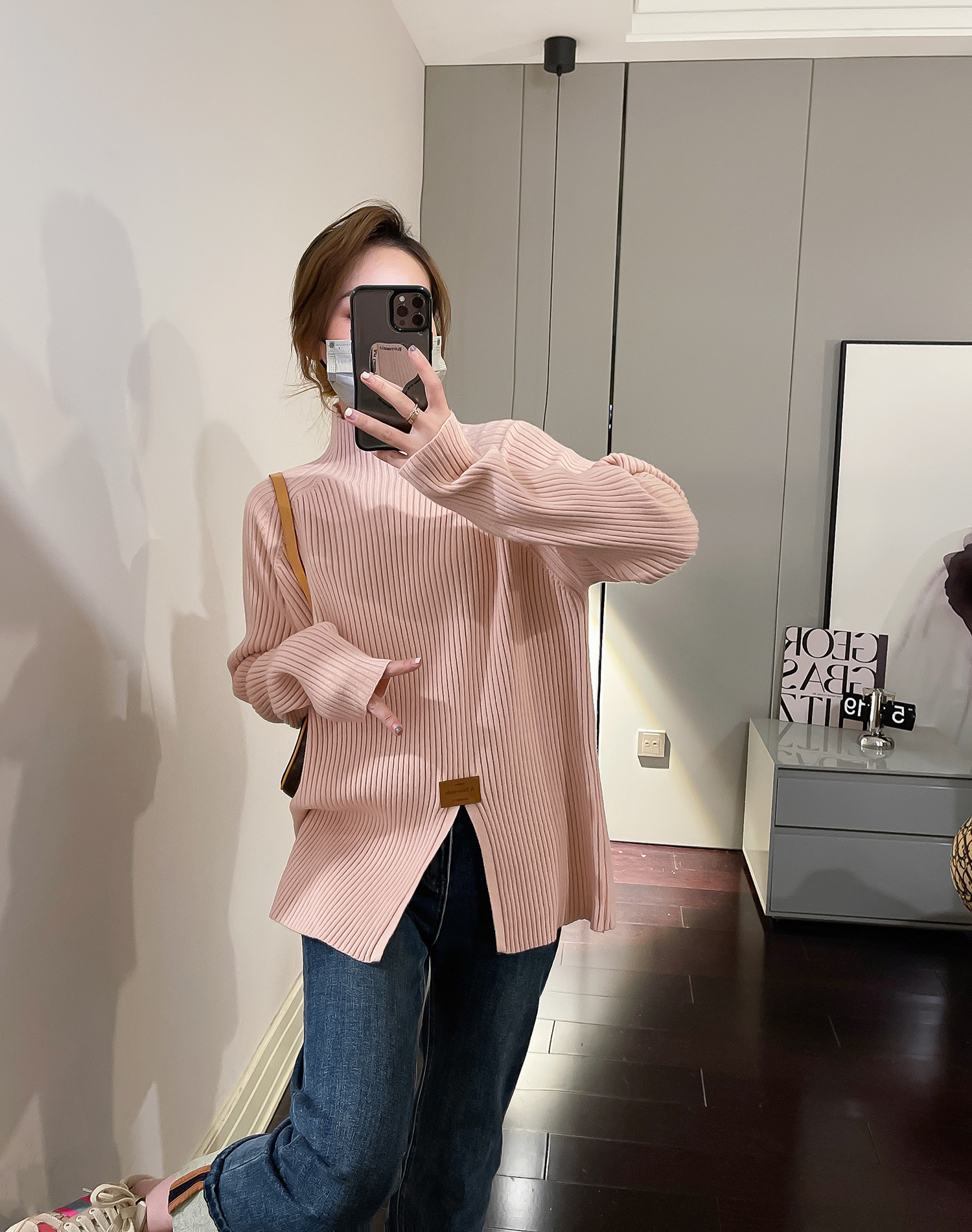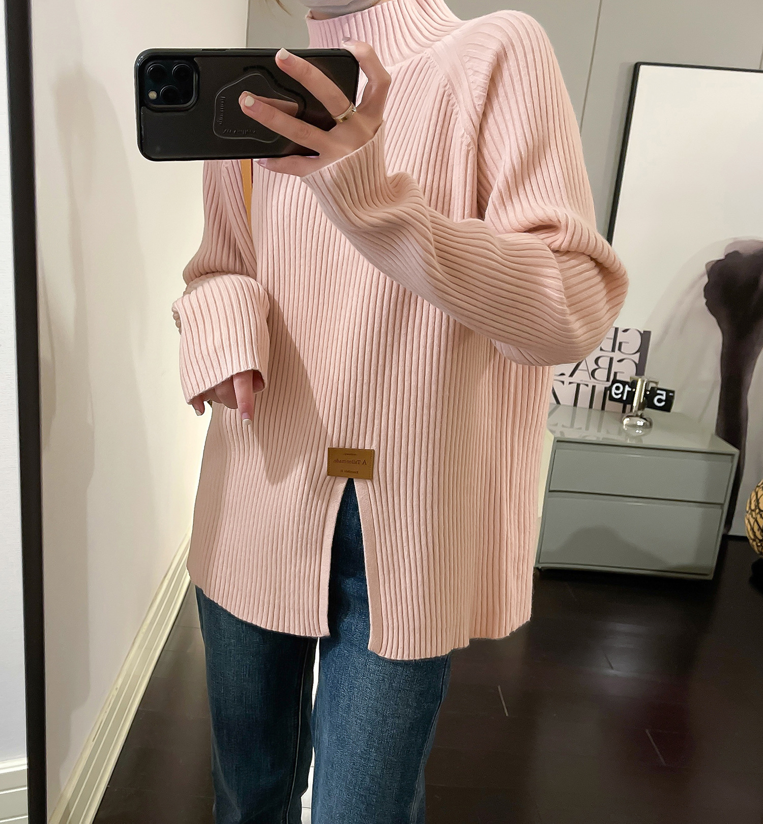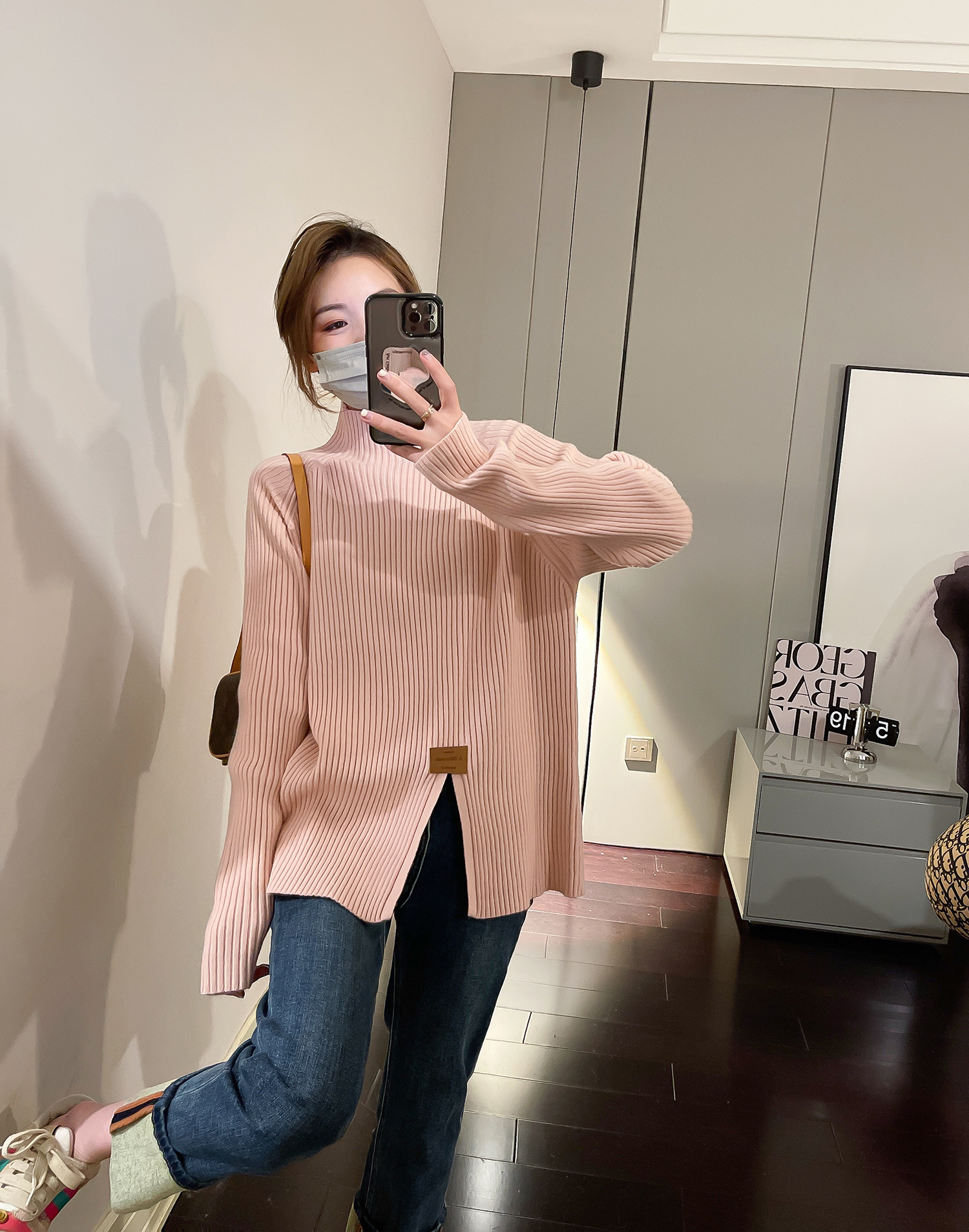 2024 осень и зима, мягкий восковой свитер с полугольфом, женский новый дизайн, универсальная трикотажная рубашка с разрезом, топ для верхней одежды