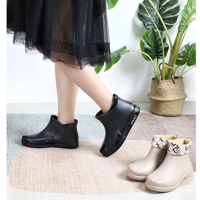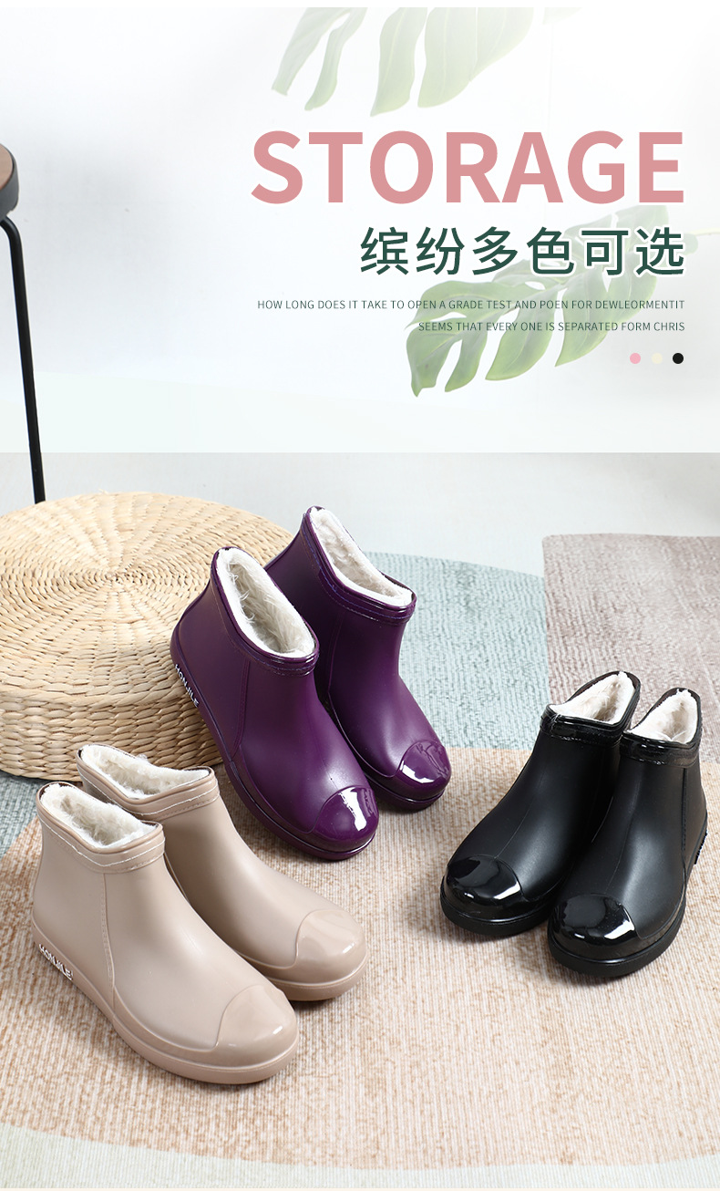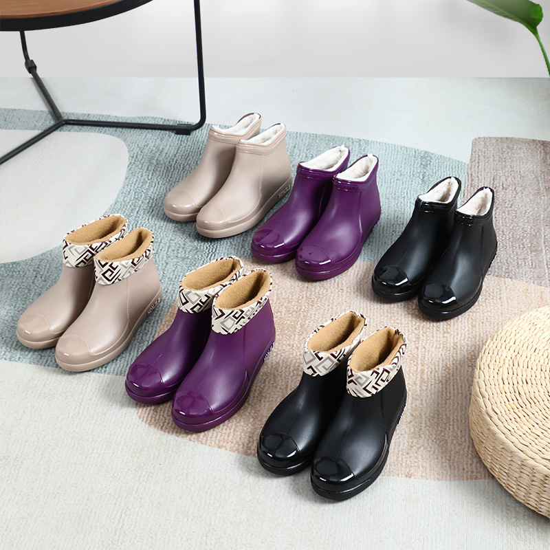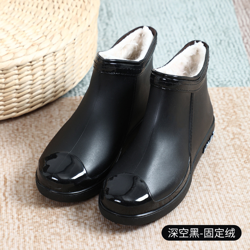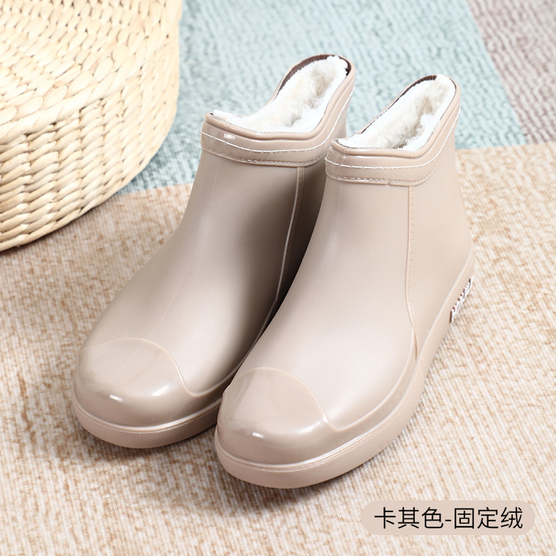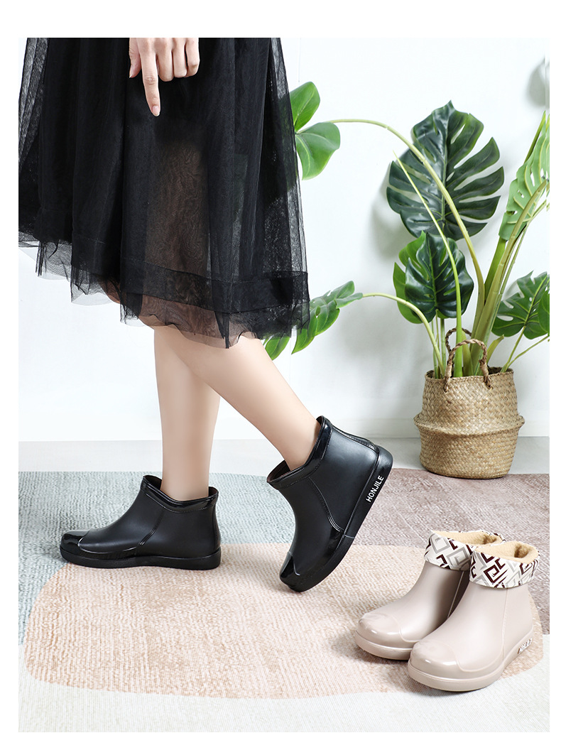 Новые модные короткие резиновые сапоги с низким верхом, непромокаемые резиновые сапоги, нескользящая Водная обувь, непромокаемая женская теплая резиновая обувь на флисовой подкладке, прямые продажи с фабрики