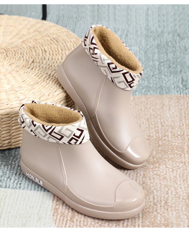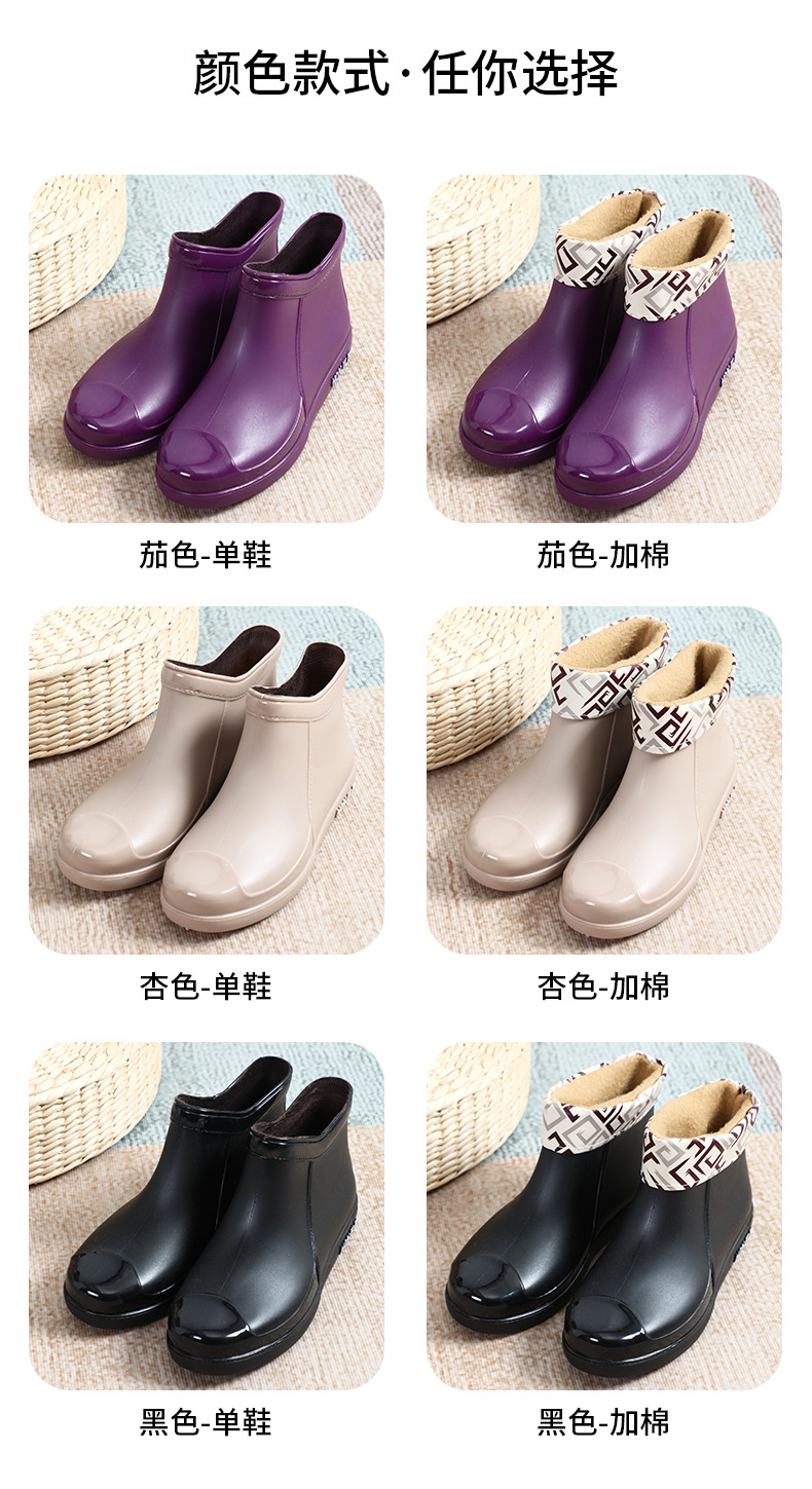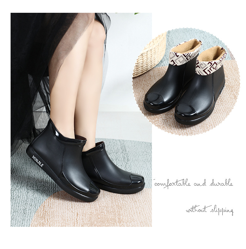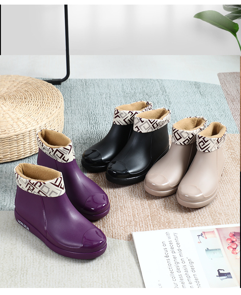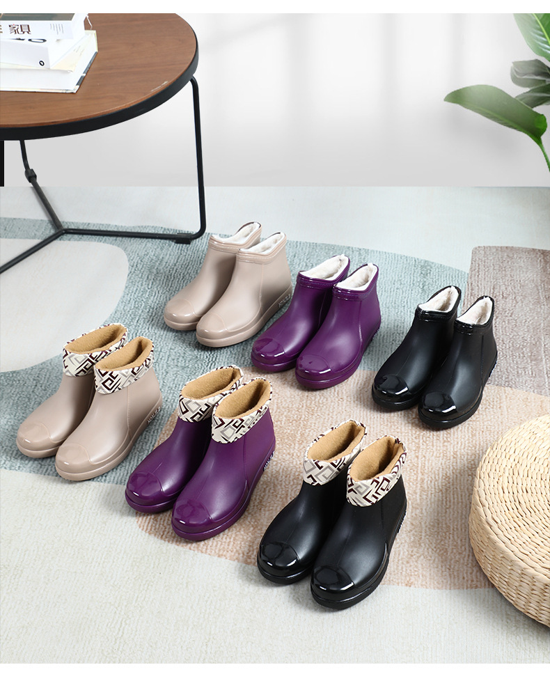 Новые модные короткие резиновые сапоги с низким верхом, непромокаемые резиновые сапоги, нескользящая Водная обувь, непромокаемая женская теплая резиновая обувь на флисовой подкладке, прямые продажи с фабрики