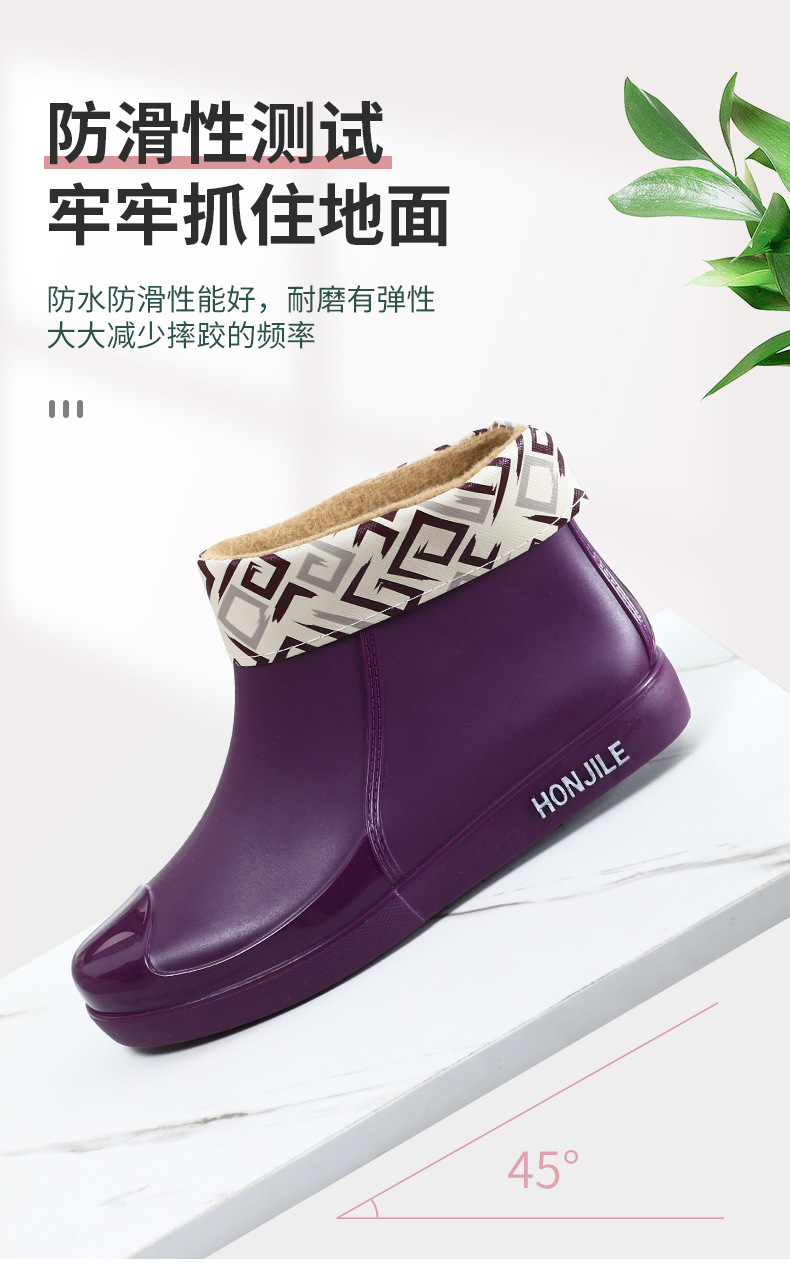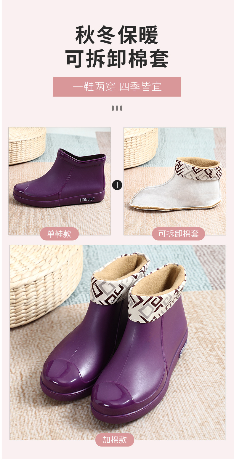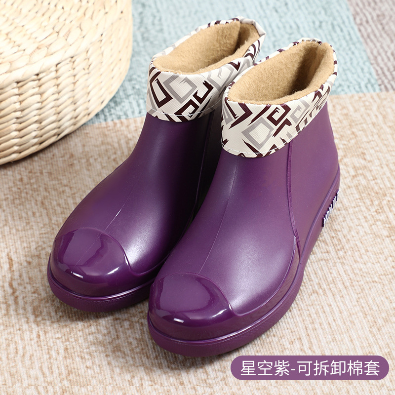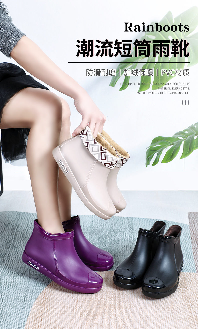 Новые модные короткие резиновые сапоги с низким верхом, непромокаемые резиновые сапоги, нескользящая Водная обувь, непромокаемая женская теплая резиновая обувь на флисовой подкладке, прямые продажи с фабрики