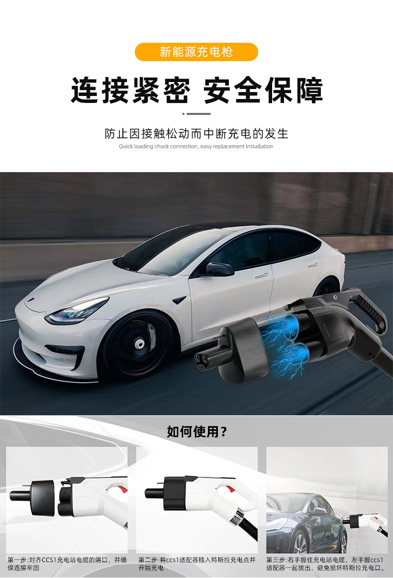 Новый энергетический автомобиль CCS1 к адаптеру зарядного пистолета Tesla Американский стандарт Tesla 300A супер зарядный адаптер